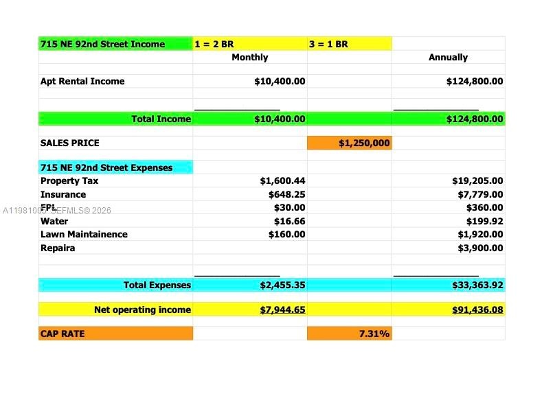 INVESTORS & HOUSE HACKERS: ARE YOU LOOKING FOR APPRECIATION OR CASH FLOW? WHY NOT HAVE BOTH!! 100% LEGAL FOURPLEX ALMOST 8% CAP = Exceptional 4-unit multifamily investment opportunity in Miami Shores, ideally located directly on Biscayne Blvd and just minutes from the Bay, top restaurants, shopping, golf courses, and a short drive to the beach. This well-maintained property features one 2BD/2BA unit and three 1BD/1BA units, offering a strong mix of rental options. Currently generating income from both long-term tenants and short-term Airbnb rentals. Each unit includes private patios, laminated wood floors, updated electrical systems, modern appliances, and updated A/C units. Tenants enjoy reserved parking spaces, in-unit washer and dryer, and pay their own utilities, helping maximize owner returns. Situated in a high-demand rental area, this property offers investors flexibility with short-term and long-term rental strategies while benefiting from Miami Shores’ central location and proximity to waterfront attractions. A turnkey income-producing asset in one of Miami’s most desirable rental corridors. Easy access (20-30 mins) to Aventura Mall, ocean, beach, MIA & FLL Airports, Brickell, Midtown & Design District.