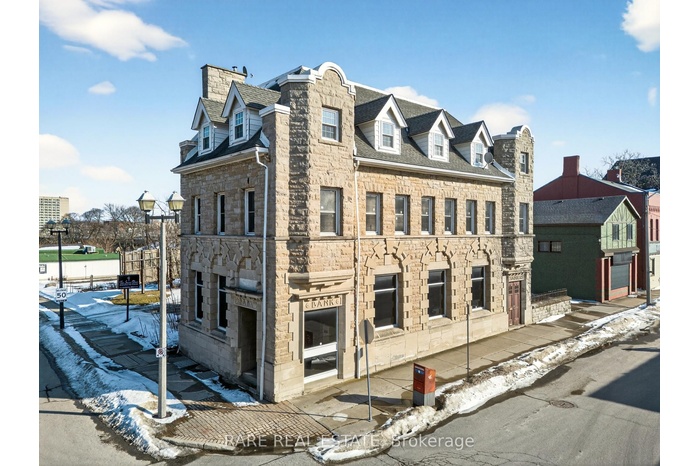 Originally constructed in 1906, this distinguished limestone building showcases a striking blend of Romanesque Revival andFrench Renaissance architectural design, highlighted by its detailed stone façade and timeless presence.Zoned CB (Central Business) under the City of Niagara Falls Zoning By-law, the property permits a wide range of commercial,hospitality, office, restaurant and mixed-use opportunities. Located within the Protected Major Transit Station Area (GO Hub), thesite benefits from exemption from on-site parking requirements, further enhancing its redevelopment flexibility.Comprising approximately 5,400 square feet above grade, this vacant landmark offers exceptional adaptive reuse potential in oneof Niagara Falls' most recognized downtown corridors.Buyer to verify permitted uses and heritage requirements.