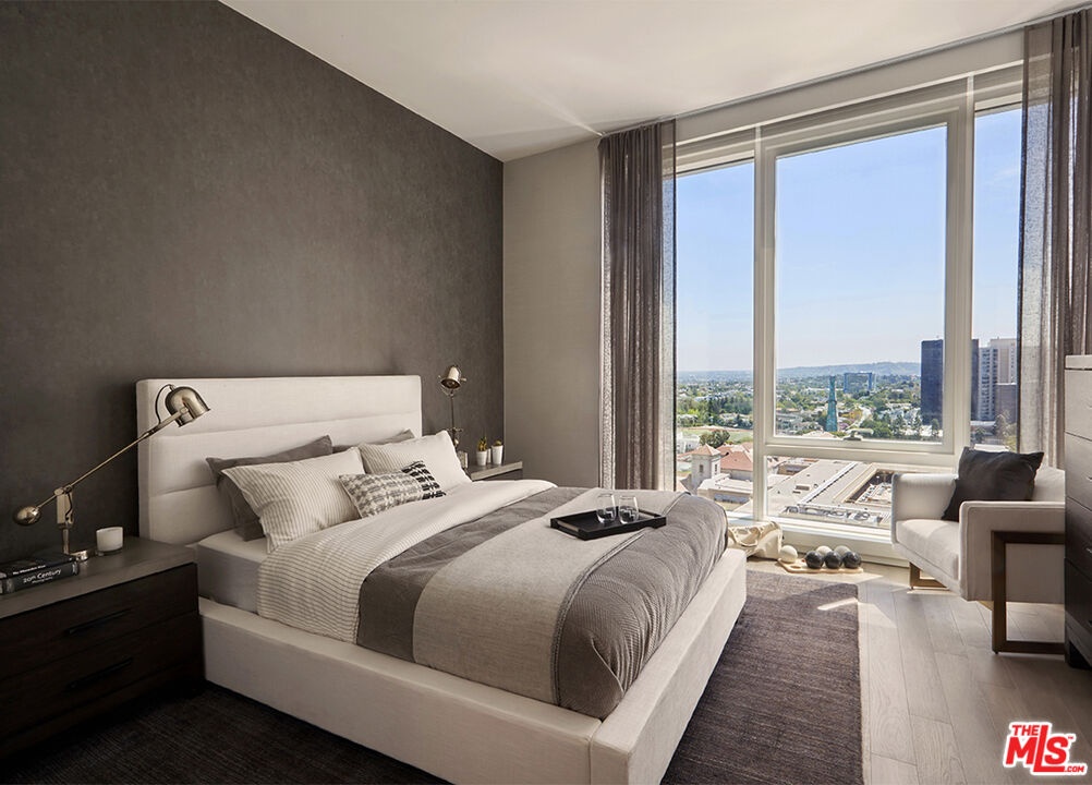 Combining advanced, leading-edge technology with timeless white-glove service provided by a house staff of 80, Ten Thousand offers the perfect home or piede-a-terre. Conveniently located at edge of Beverly Hills and Century City. The unit offers an en-suite bathroom and guest restroom, private balconies accessible via double sliding glass doors-Hardwood six-inch-wide plank floors. The kitchen offers custom Italian cabinetry, quartz countertops and mirrored backsplashes and are equipped with Bosch appliances and a Thermador refrigerator with an integrated cabinet front, and a front-loading Asko washer and dryer. Designed and constructed to condominium-caliber standards, Ten Thousand offers residents the freedoms and conveniences of leasing within a thoughtfully programmed living environment amidst 75,000 SF of amenities including indoor and outdoor pools, a 1-acre park, full bar, complimentary daily breakfast.
