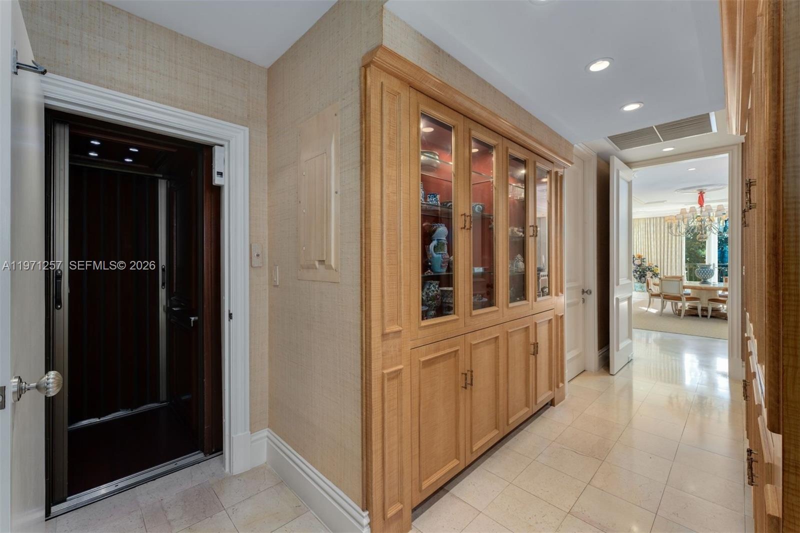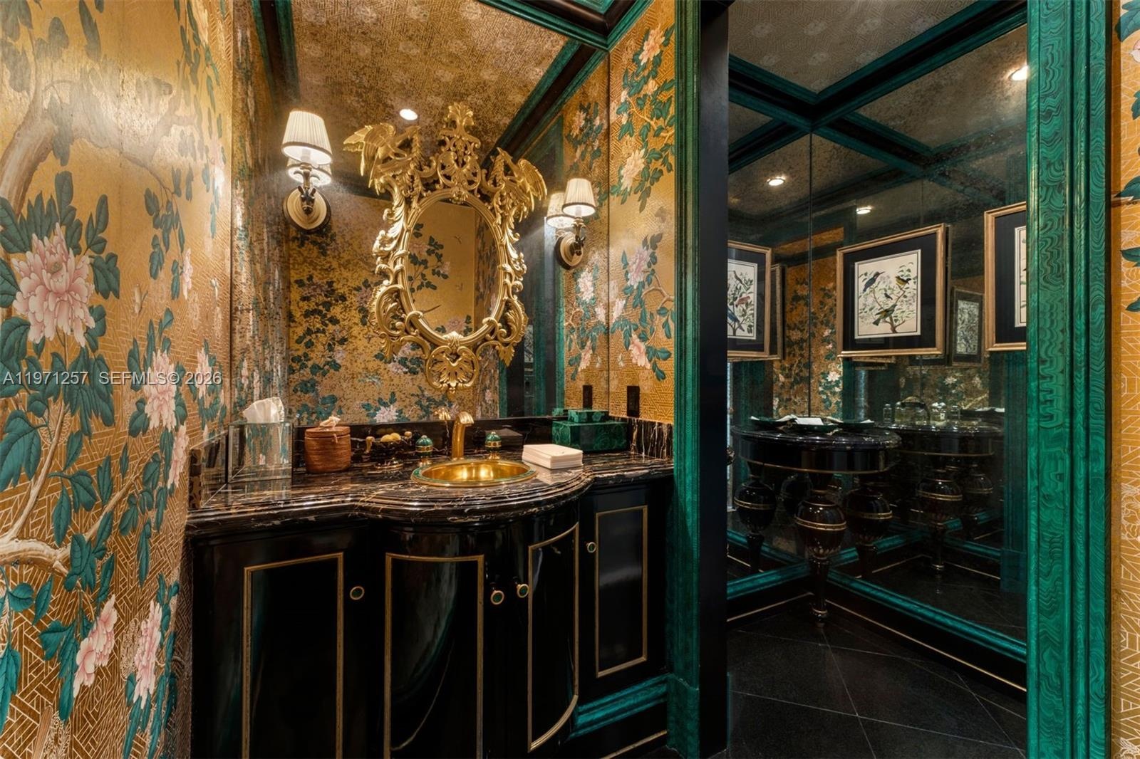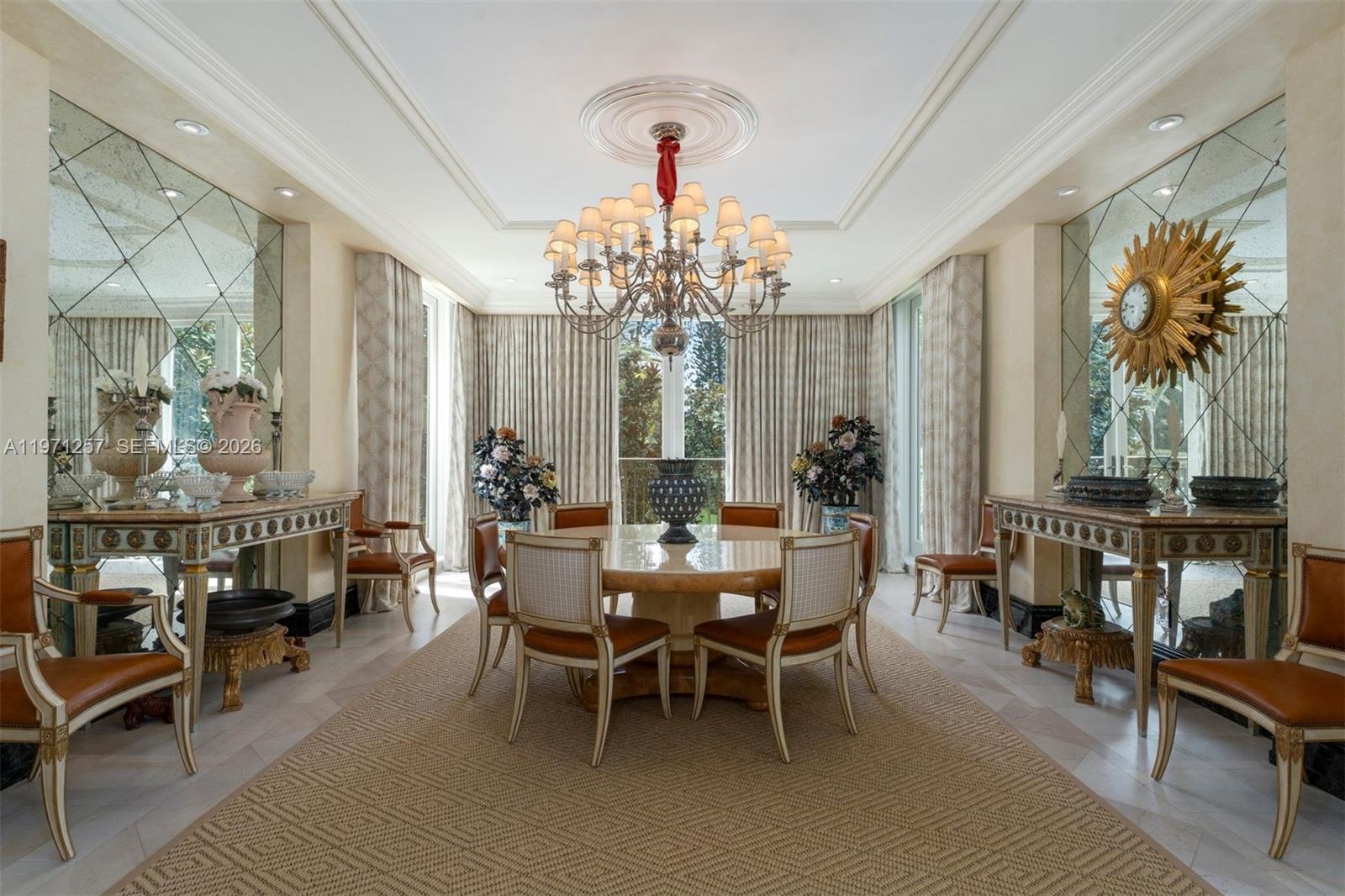A remarkably beautiful bayfront estate on the exclusive private island of Tahiti Beach within the guard-gated community of Cocoplum in Coral Gables. One of only 27 residences in this ultra-private enclave, the property offers dual access from Tahiti Beach Island Road and a quiet cul-de-sac. Residents enjoy tennis and pickleball courts, a private bayfront beach, and the Islands of Cocoplum’s renovated clubhouse and amenities. Positioned directly on the bay, the estate captures sweeping unobstructed views of Miami Beach, Key Biscayne, and the Atlantic Ocean with direct boating access to the open sea and beyond. Set on a 41,287 SF lot, the 15,232 total SF three-story residence features 5 bedrooms, 8 full baths, 2 half baths, 2 offices, a gym, and flex room. Resort-style grounds showcase a grand loggia entry framing panoramic water views, a heated 18×50 Sukabumi stone saltwater pool, reflecting koi pond, lush landscaping, expansive terraces and balconies, and a private T-dock with Venetian mooring poles. Architectural details include coral stone columns and walls, four-car garage, and whole-house generator. Interiors feature marble and herringbone wood floors, elevator, custom millwork, wet bar, formal living and dining rooms, library, and chef’s kitchen with Sub-Zero, Miele, and Gaggenau appliances. The primary suite offers a terrace, dressing room, dual marble baths, and walnut-paneled office overlooking the bay—an exceptional expression of island luxury and privacy.