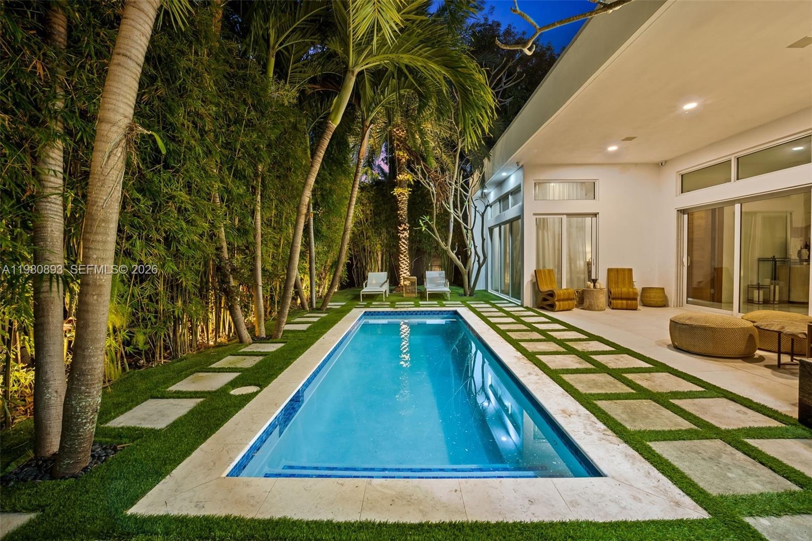 Renovated Mid-Century residence in the heart of Mid Beach offering 5 beds and 5 baths. Upon entry you are greeted by vaulted ceilings as you connect throughout the main living areas creating an open and light-filled environment ideal for both everyday living and entertaining. The chef’s kitchen features a gas range and generous prep space, seamlessly connecting to the home’s living and dining areas. The turfed backyard is designed for effortless outdoor living with a pool and BBQ area, perfect for relaxing or hosting. The fifth bedroom is uniquely designed with its own kitchenette and separate entrance offering flexibility for live-in staff, extended guests, or a private office. Ideally located just minutes from Miami’s top restaurants, shops, beaches, and nightlife.