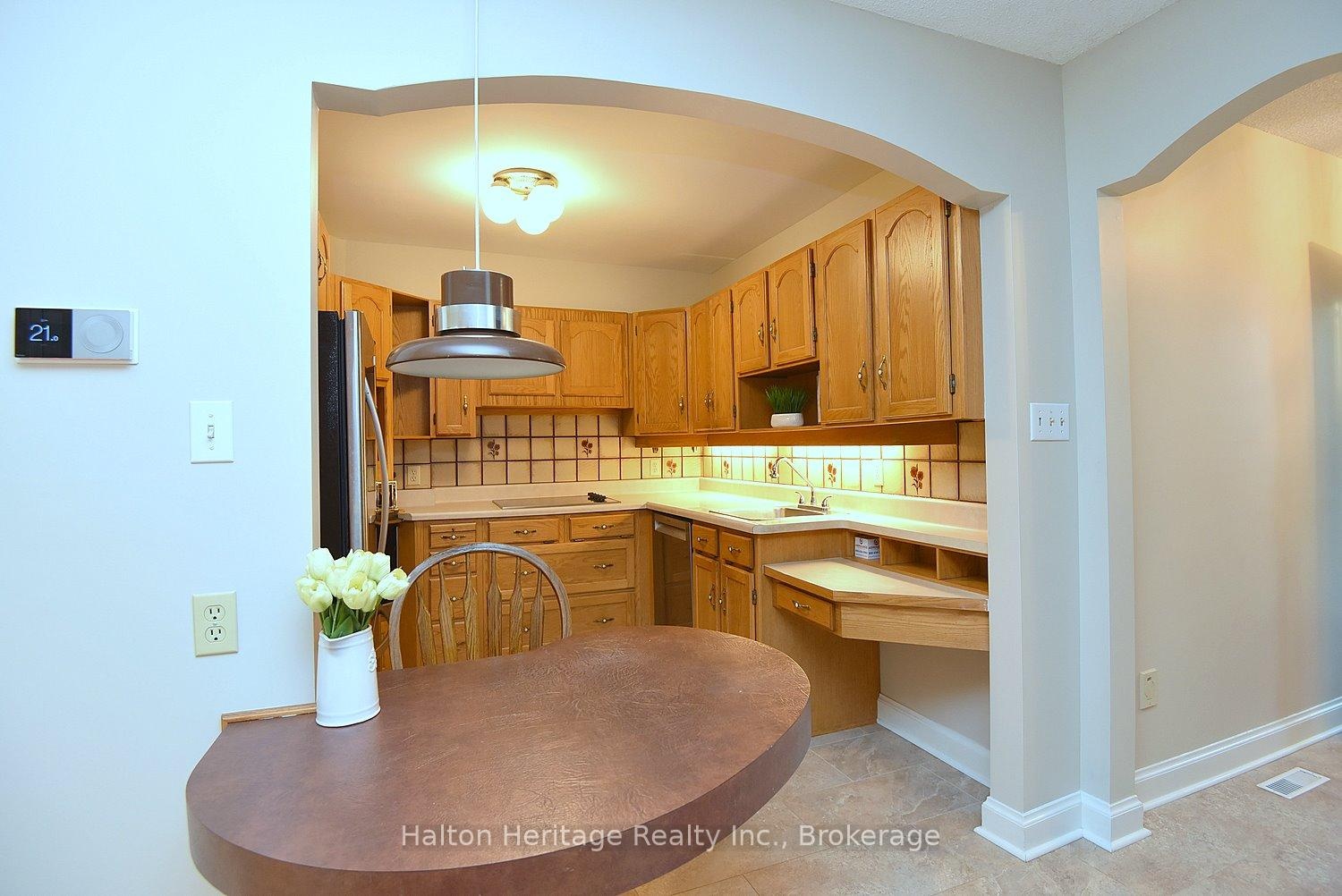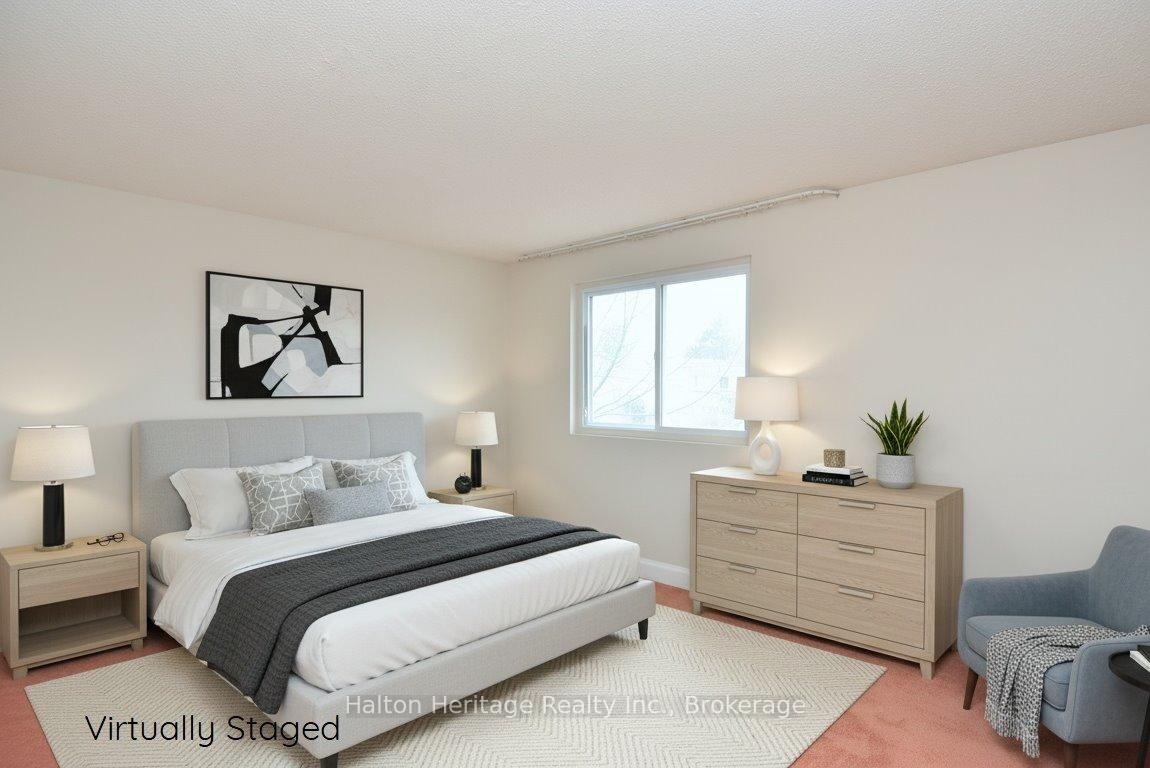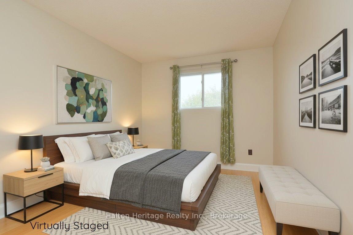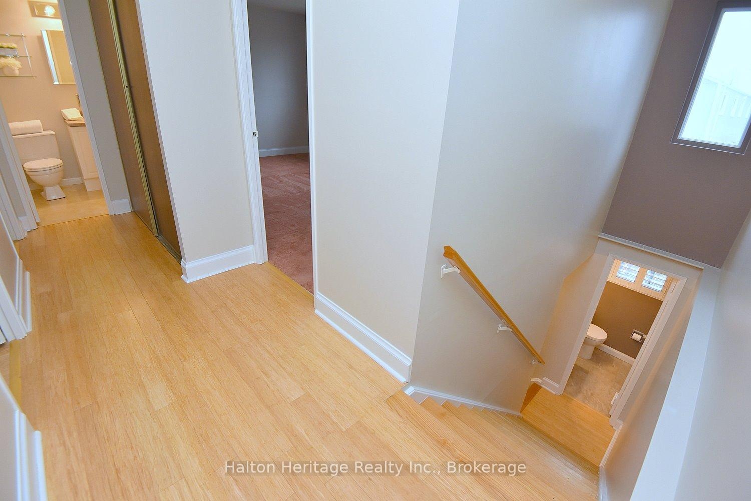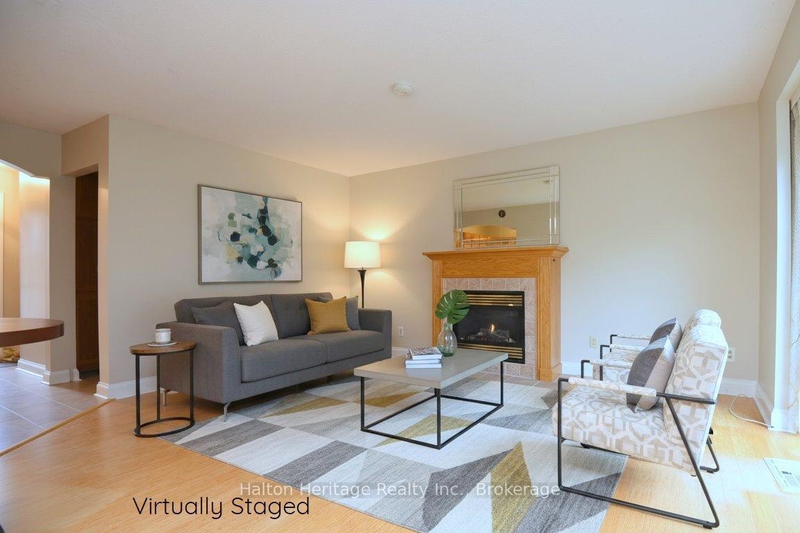 Welcome to South Burlington's Woodview Park community. I will start with an introduction to this hidden gem tuck away in a quiet family friendly neighbourhood. It has so much to offer! It is walking distance to parks, trails & the Burlington Bike Path. Just minutes away are schools, shopping, library, Go Train, the lake & everything you will need to make living here enjoyable & easy. This 3 bdrm home offers comfortable living. It is an end unit that sides onto nature, a path & Tuck Creek; you will not feel crowded. As you enter the house you will be greeted with an open closet for easy access & a powder room. A short hall takes you into a bright open living room space that forms an L with the dining space. This gives you many options for your furniture placement. There is a gas burning fireplace to warm those cold winter days & a walkout to the large private deck; perfect for BBQing. Tucked away at the end of the entry hall is the kitchen. A well designed space that has all the appliances handy, plenty of cupboard space, a desk area and a table. A unique design that combines function & convenience. Across the hall; at the top of the stairs to the basement you will find an additional cupboard space; perfect for a pantry. Upstairs you will find 3 bdrms and 4pc bath. There is a large closet in each of the bdrm & a long storage closet in the hall just outside of the bath; so perfect! The bdrms are generously sized so you will have options for furniture placement. The current owner loved to garden & has put in the stone work & gardens that you see. These gardens will be yours to enjoy & maintain; the perfect size to put your green thumb to the test. Residents of Woodview Park enjoy access to a lifeguard-monitored heated in-ground pool. This home offers comfort, convenience & community. It is move in ready, freshly painted; a heat pump installed in 2023 (10 yr warranty), Bamboo flooring; dishwasher 1yr old; cooktop 2yrs & fridge 4yrs