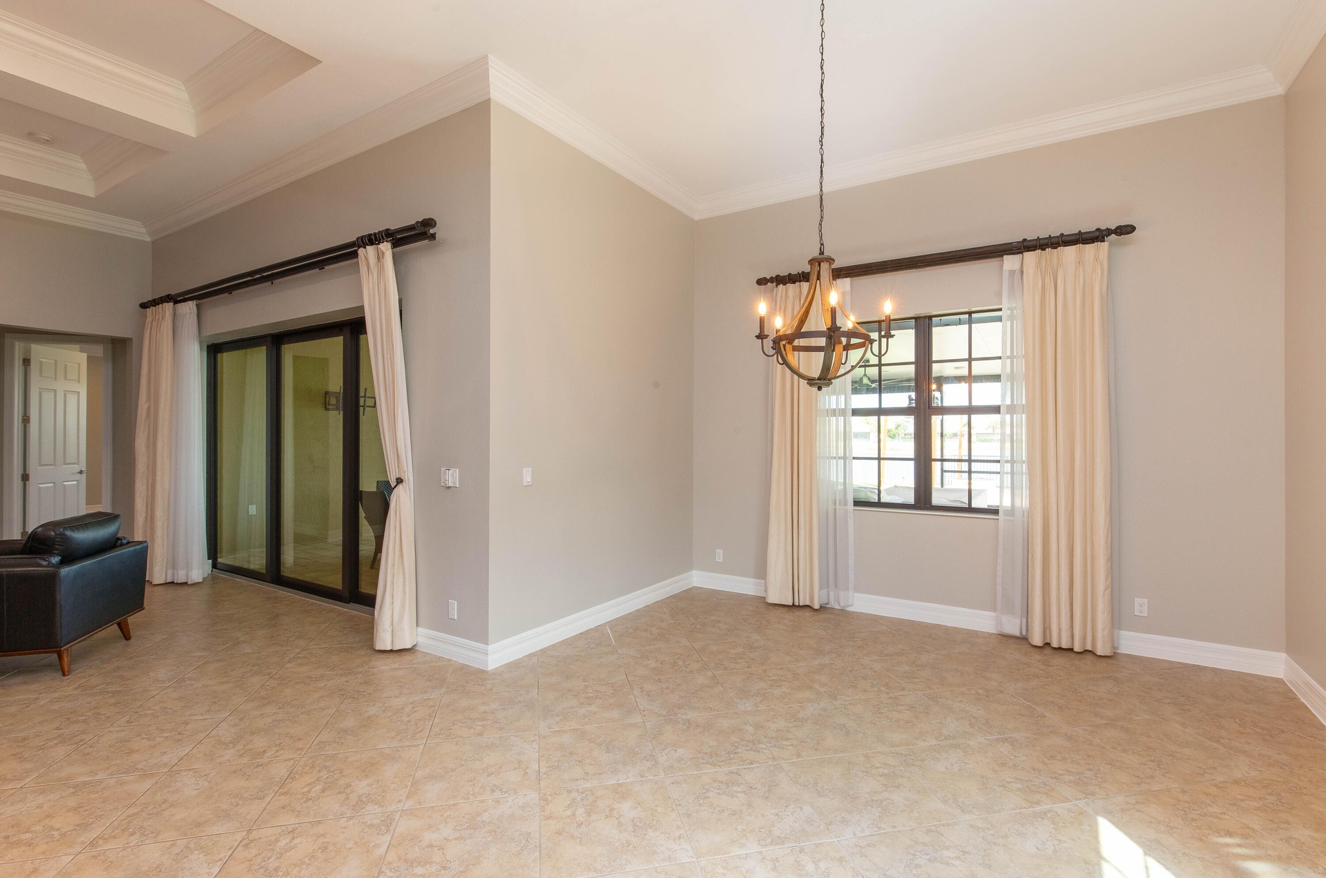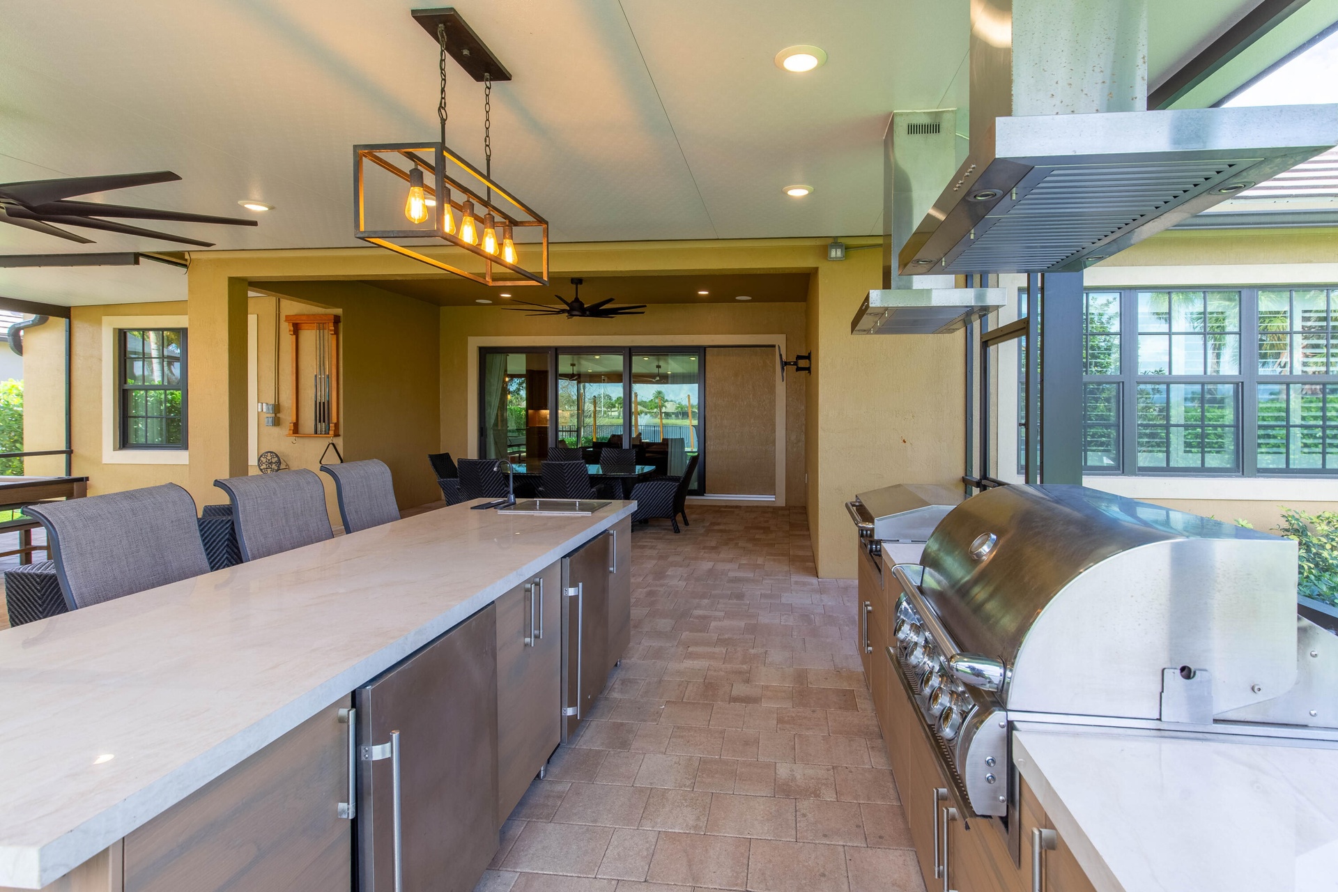At the heart of the home is a true chef's kitchen featuring upgraded cabinetry, premium finishes, and a layout designed for functionality and style. Whether hosting guests or enjoying a quiet evening in, this kitchen delivers. The bedrooms and office are enhanced with rich wood flooring, adding warmth and sophistication throughout the private living spaces. Impact windows throughout the home provide peace of mind, energy efficiency, and storm protection.