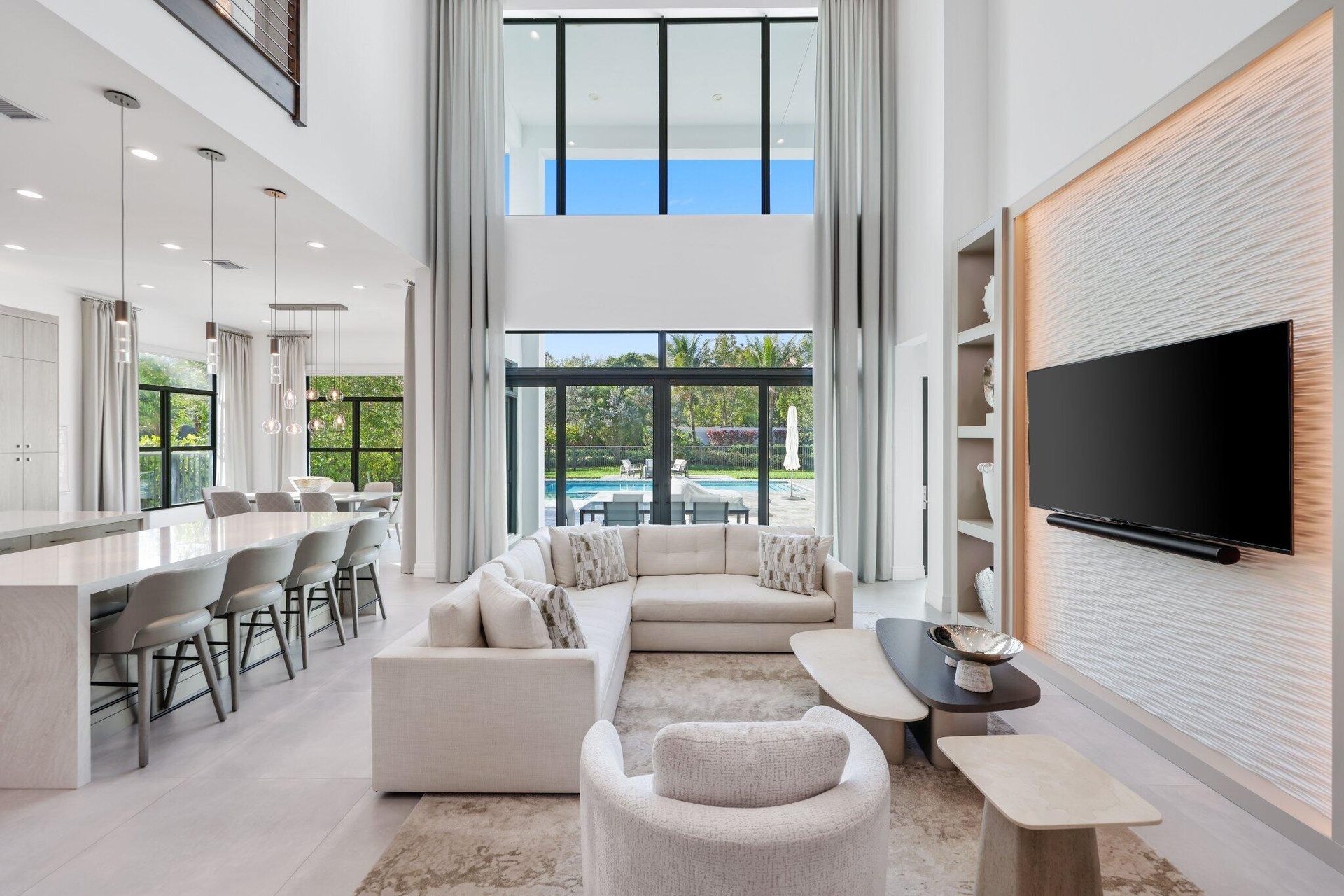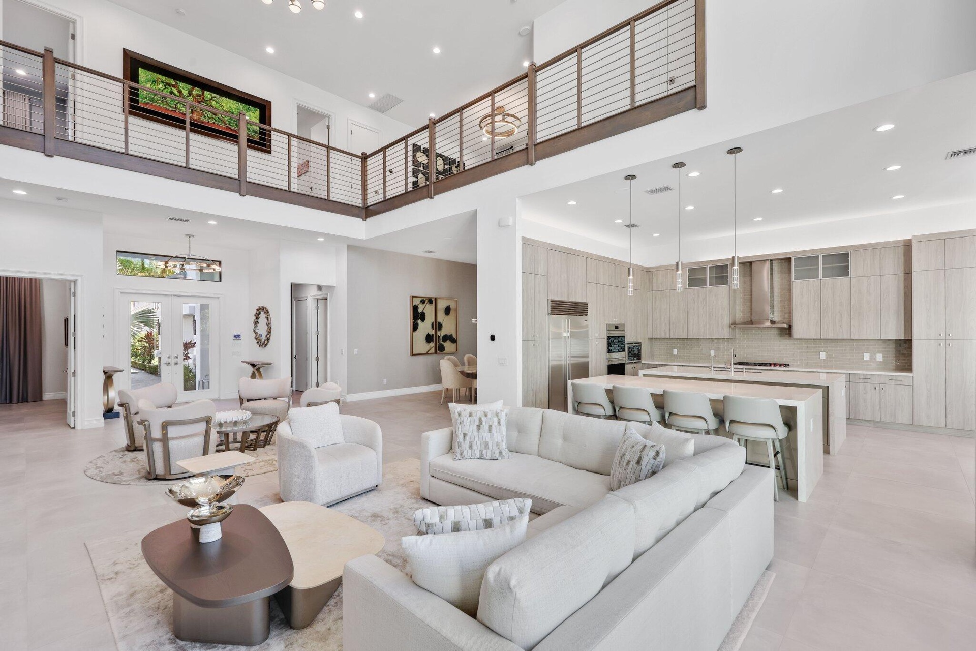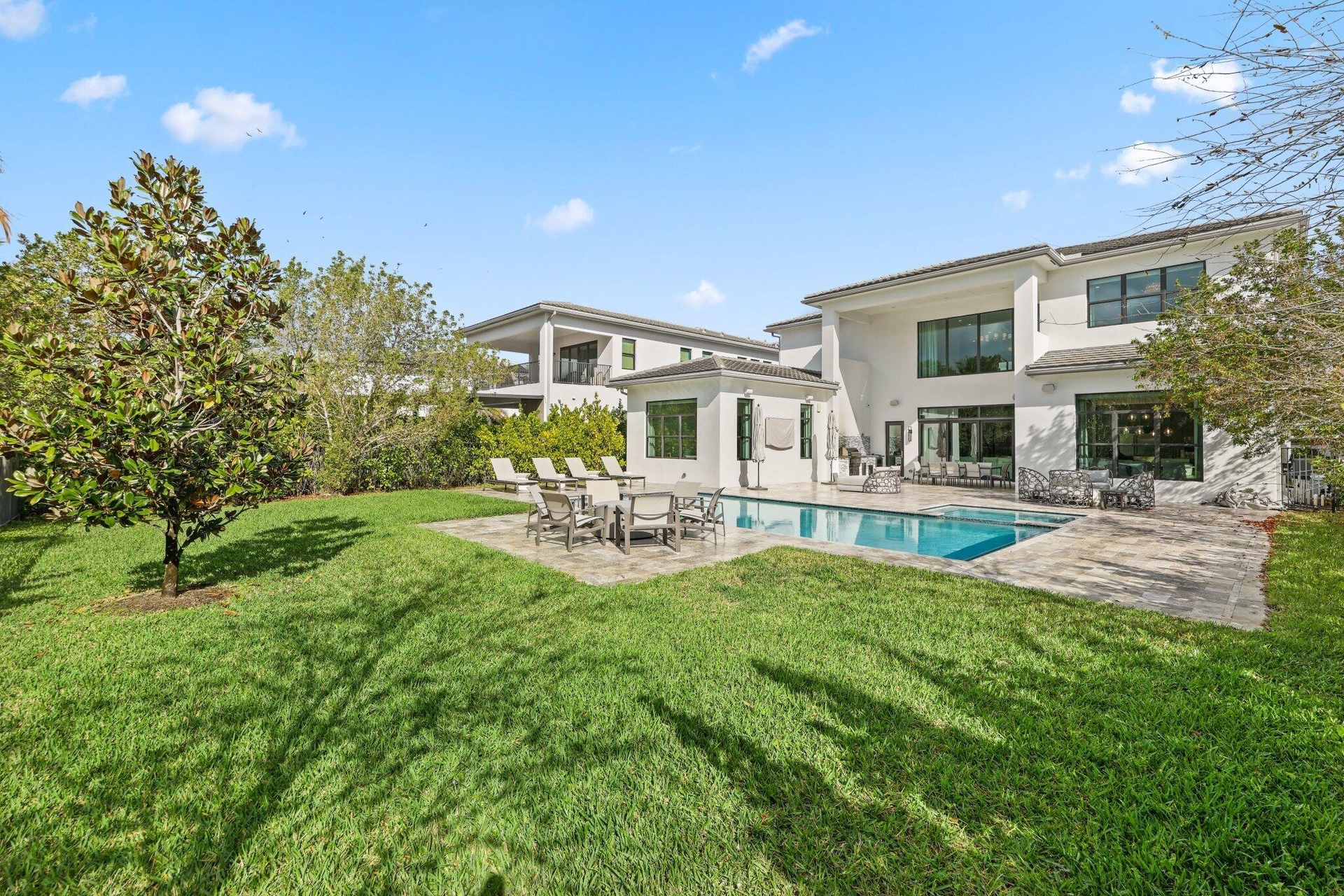 Professionally designed by Brown Interiors! Welcome to 17432 Ponte Chiasso Drive, this exceptional Veneto estate built in 2022, located in prestigious Boca Bridges, feels brand new and sits on a private, 1/3 acre spacious lot. Spanning just under 6000 SF, the property features 5 bedrooms and 7 bathrooms. The main level includes a Luxurious Primary Suite, Custom Office, Elegant Living and Dining Room, separate Breakfast Area, Sauna/Flex Room, and Guest Suite with ensuite bathroom. Upstairs features 3 VIP suites with en suites, Movie Room, and a Spacious Loft. Situated with the preferred North/South exposure, offering great natural light all year long. The chef's kitchen boasts Two huge islands, Two dishwashers, a Wine Refrigerator, Double Oven, Gas Range and Sub-Zero & Wolf appliances! The property's highlight is its extraordinary, expanded outdoor "resort" pool and spa oasis, an entertainer's dream that transforms outdoor living into a luxurious experience. This remarkable space was thoughtfully designed and features a summer kitchen, entertain all year long with al fresco dining and social gatherings. The interior embodies a sophisticated soothing designer aesthetic, with large format 36x36 tiles and hardwood floors. This floor-plan rarely becomes available in the community! Boca Bridges is an upscale, gated community that promises an unparalleled living experience. Boca Bridges has a magnificent 27,000 square-foot clubhouse, providing residents with access to a resort-style pool and a full-service gourmet restaurant and bar. For those seeking an active lifestyle, there is a state-of-the-art fitness center, offering a range of exercise classes. The community has tennis courts, pickle-ball courts, both indoor and outdoor basketball facilities, and a card room. Families can enjoy a kid's splash park, an outdoor pavilion for parties, a game room, and many kids' activities throughout the year.
