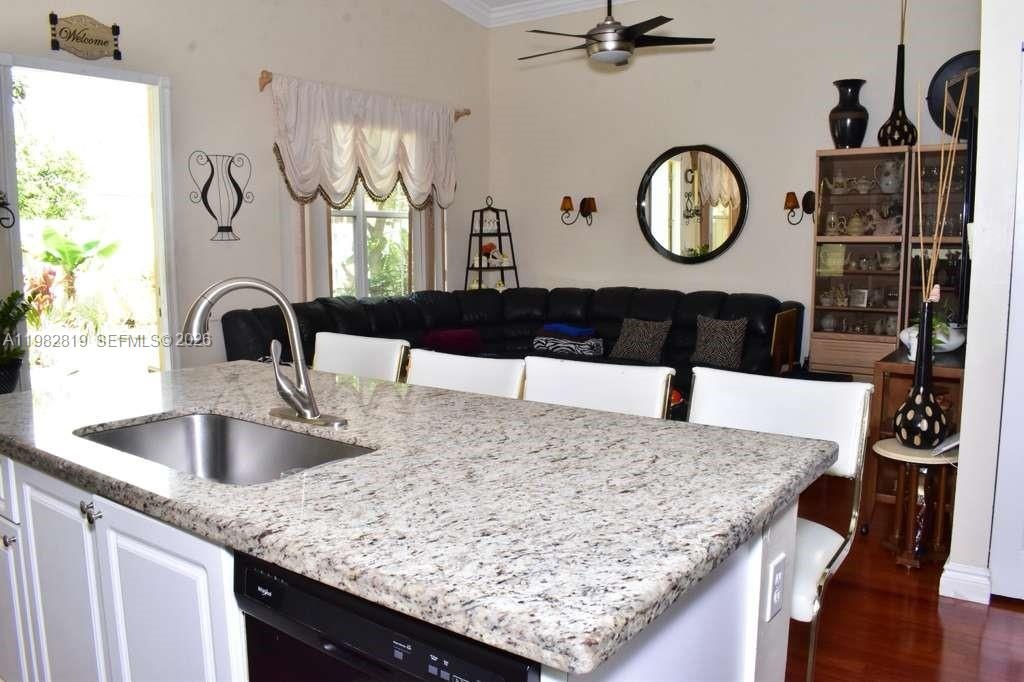 Upgraded kitchen cabinets and countertops! Luscious fruit trees - eat right off the land! Fertile trees - Mango, Avocado, Naseberry, Bananas and even an Ackee Tree. Wooden flooring throughout. Landry Room under air. Lots of closet space for storage. Well-kept home in a well-kept neighborhood. Light ceramic tiles and recently installed laminate in the living room. Fully functional 2-car garage. Close distance to shopping, schools, and I75 expressway.