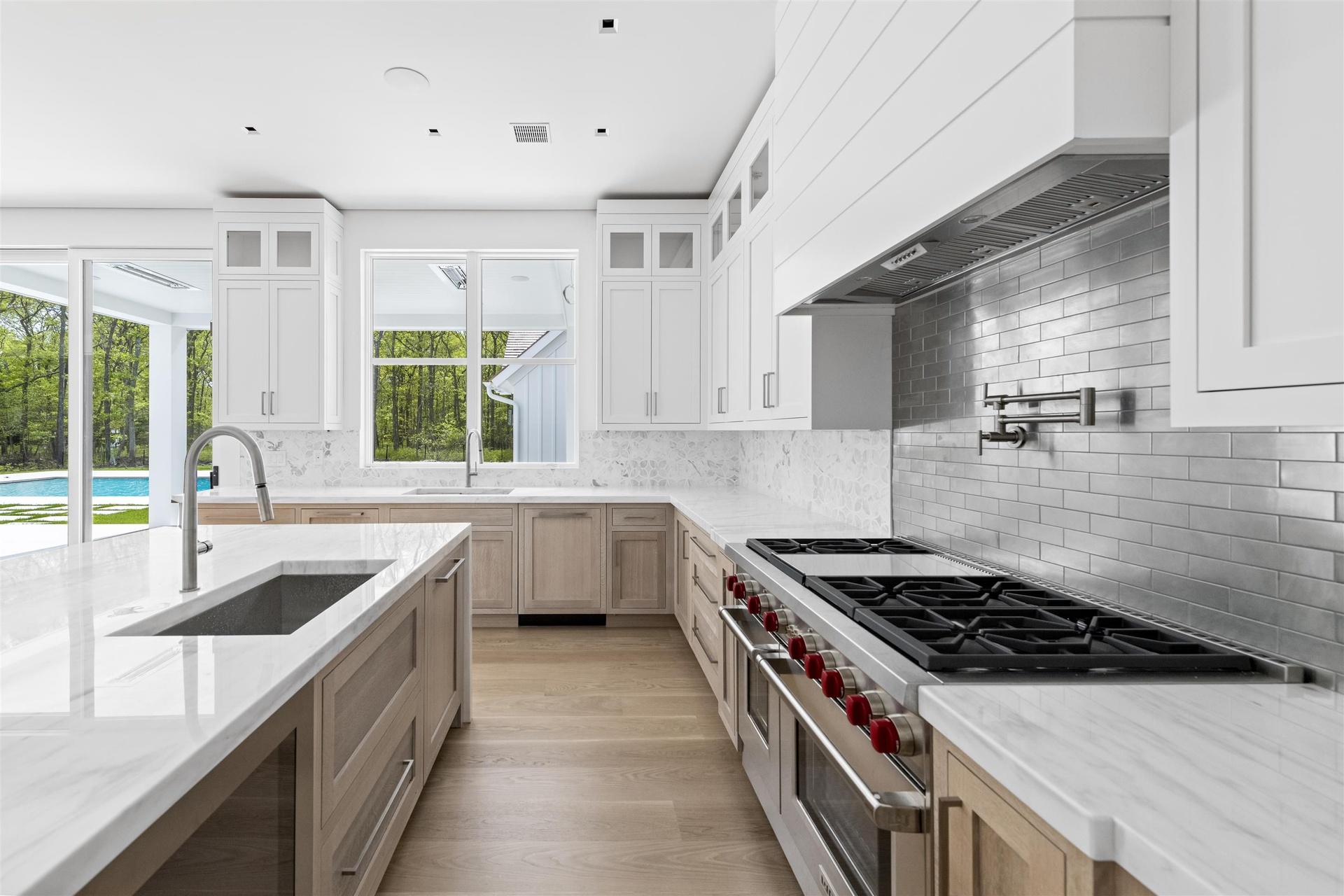 A new home is being built on this 1.3+ acre parcel in Sagaponack, this stunning home of 9, 000+/- sq. ft. has 8 bedrooms, 8 full and 2 half baths, plus 50' pool, spa and pool house with full bath and kitchenette. Architectural details abound in this modern home with glass and steel floating staircase, full height glass doors accentuating the light and views to outdoor living areas. An oasis defined by quality and functionality. The lower level has full gym, terraced theatre, recreation rooms, outdoor patio and 2 bedrooms with full bath. Located in the Sag Harbor School District, with easy access to Sag Harbor Village, Bridgehampton and Sagaponack ocean beaches.
