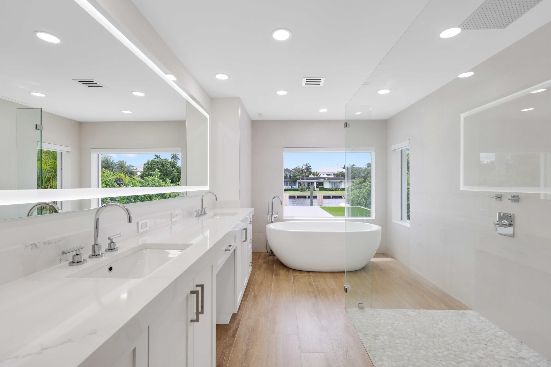 Welcome to 1102 Island Drive, a fully renovated 2025 waterfront home between the ocean and Intracoastal on Delray Beach's only true island. Offering 3,092 sqft, this 4-bed, 5-bath residence blends modern luxury with coastal living. The open floor plan connects spacious living, dining, and a sleek kitchen with Miele appliances and a gas stove, all filled with natural light. The primary suite is a private retreat with a spa, while 3 additional bedrooms offer flexibility. Set on 100 feet of waterfront along a wide canal, the property features a brand new dock and easy ocean access. Southern exposure enhances the bright interior and outdoor spaces, with a pool and patio just a short walk to the beach and Atlantic Ave.