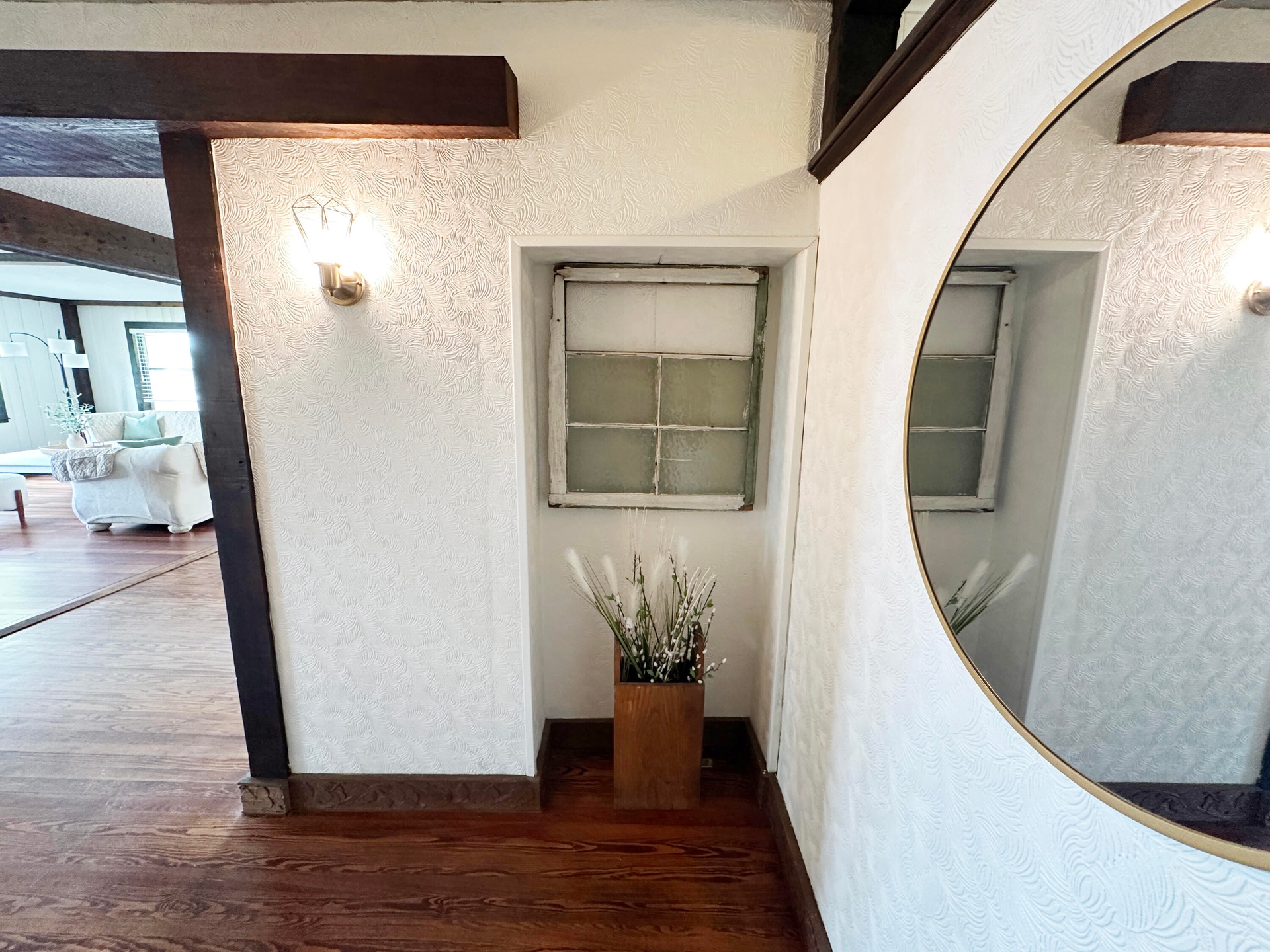 - Upon entering you'll find spacious living spaces