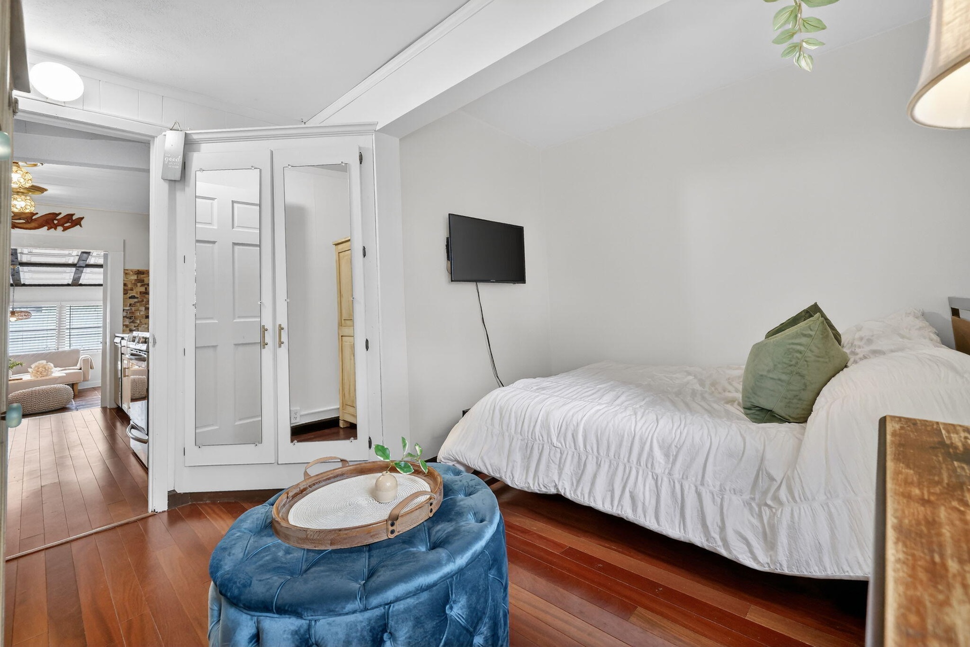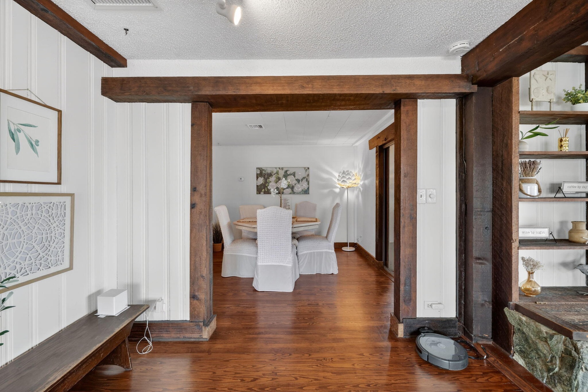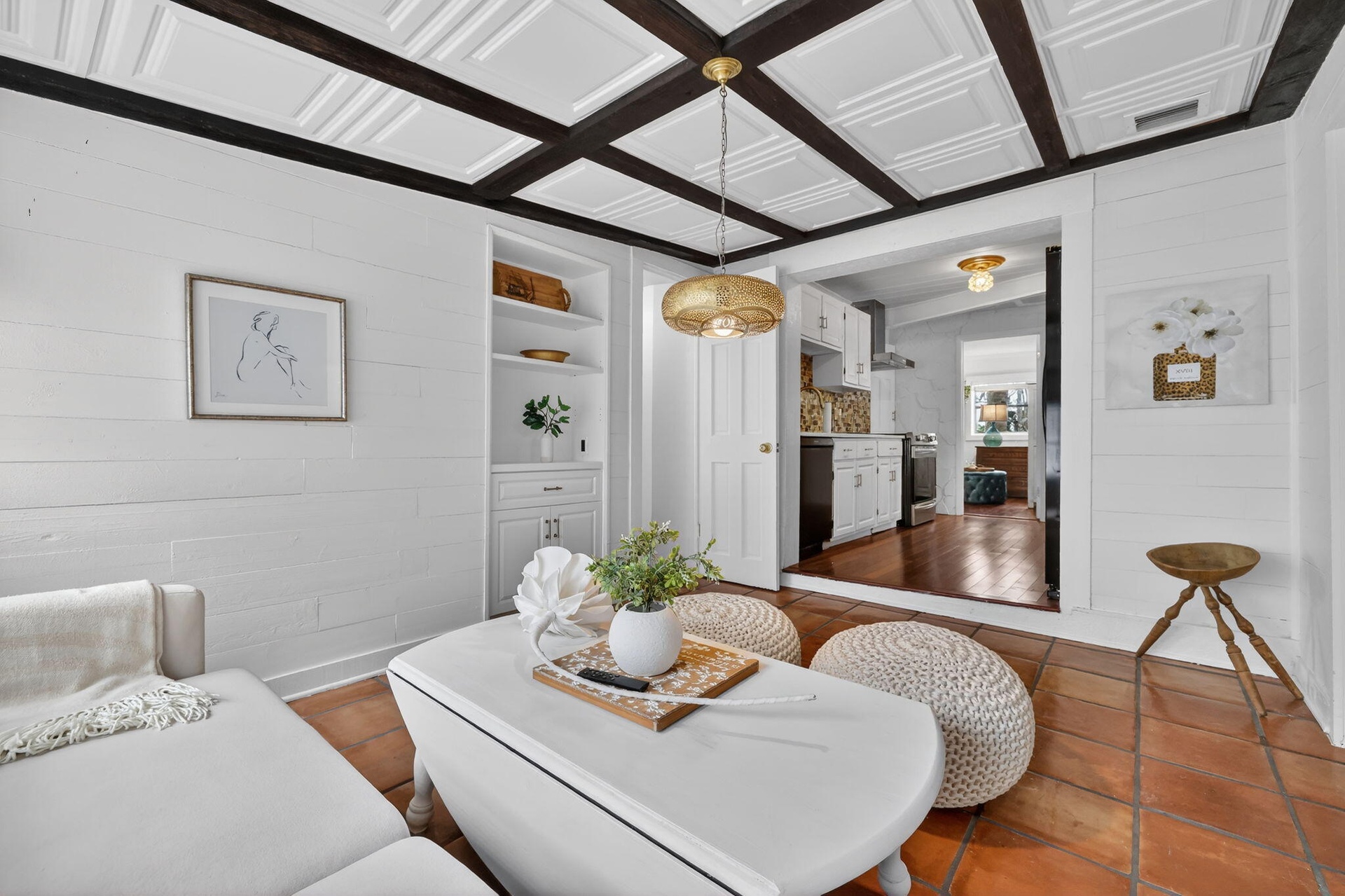 - Sitting area off kitchen connects to quest quarters