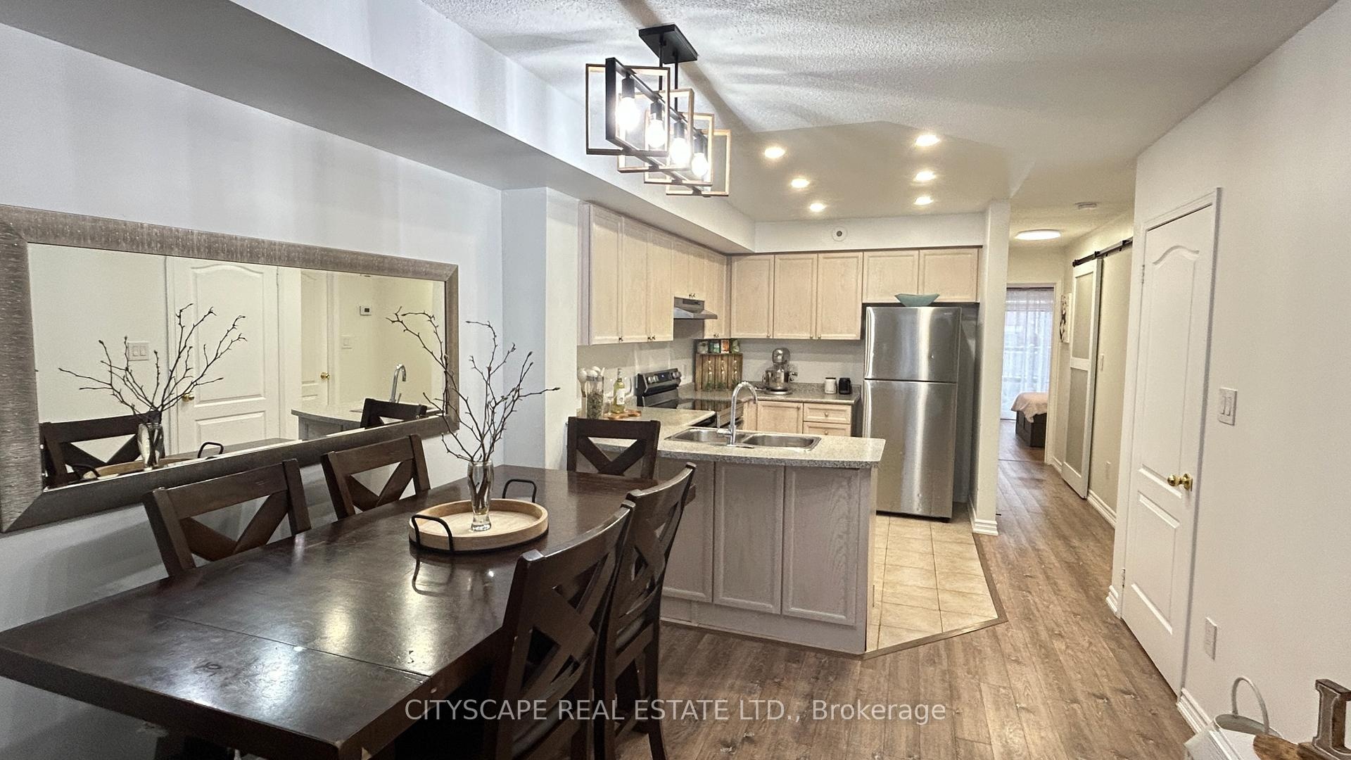 Great layout, large kitchen, open concept design! Dining area can fit big table for 6 or use the breakfast bar and turn it into large living room. Updated flooring & light fixtures. LED pot lights added. Stylish barn door added to washer/dryer closet. Upgraded furnace and plumbing throughout the unit. 2 spacious bedrooms, including Primary Bedroom that has oversized closet and walk-out to a spacious, long terrace, BBQ allowed. Extra cars no problem with street parking allowed, even overnight. Amazing location: Next door to Superstore, Home Depo, Shoppers DM. On other side of the complex you have a big park, school, splashpad, new playground and a brand new dog park. Healthy Planet shopping plaza too. 1 bus to subway, sq 1, just 2 min ride to GO station. Great complex, fantastic starter in a popular complex and A+ location. Great find!