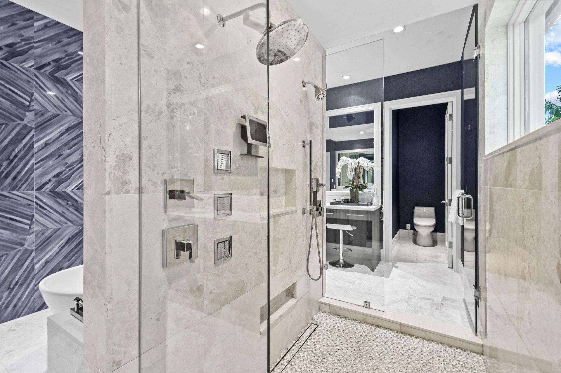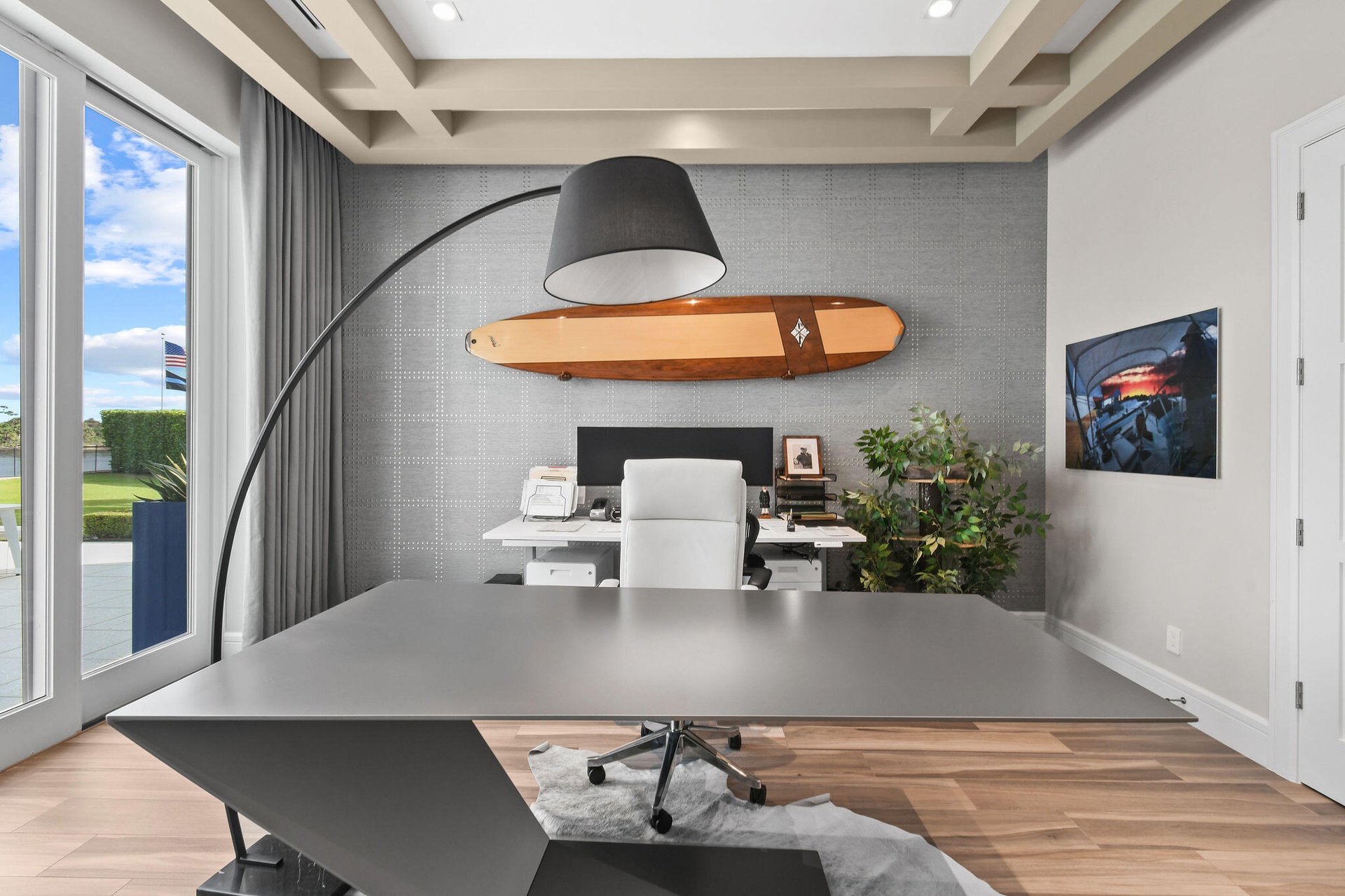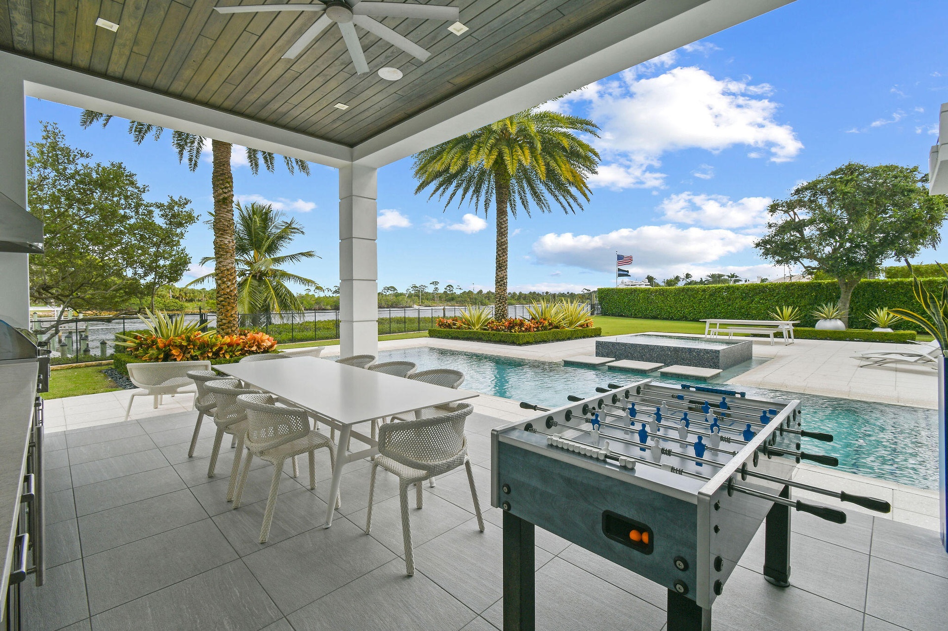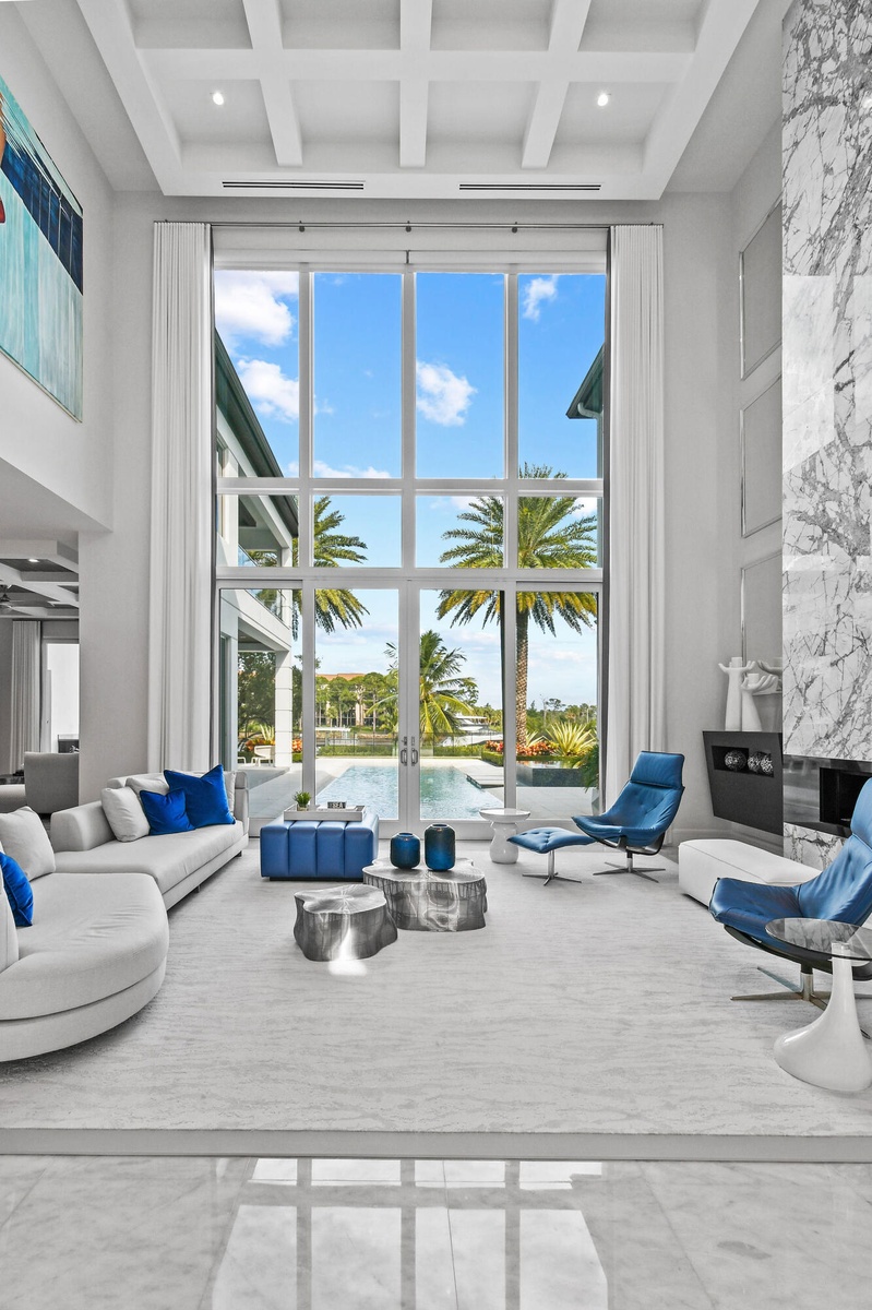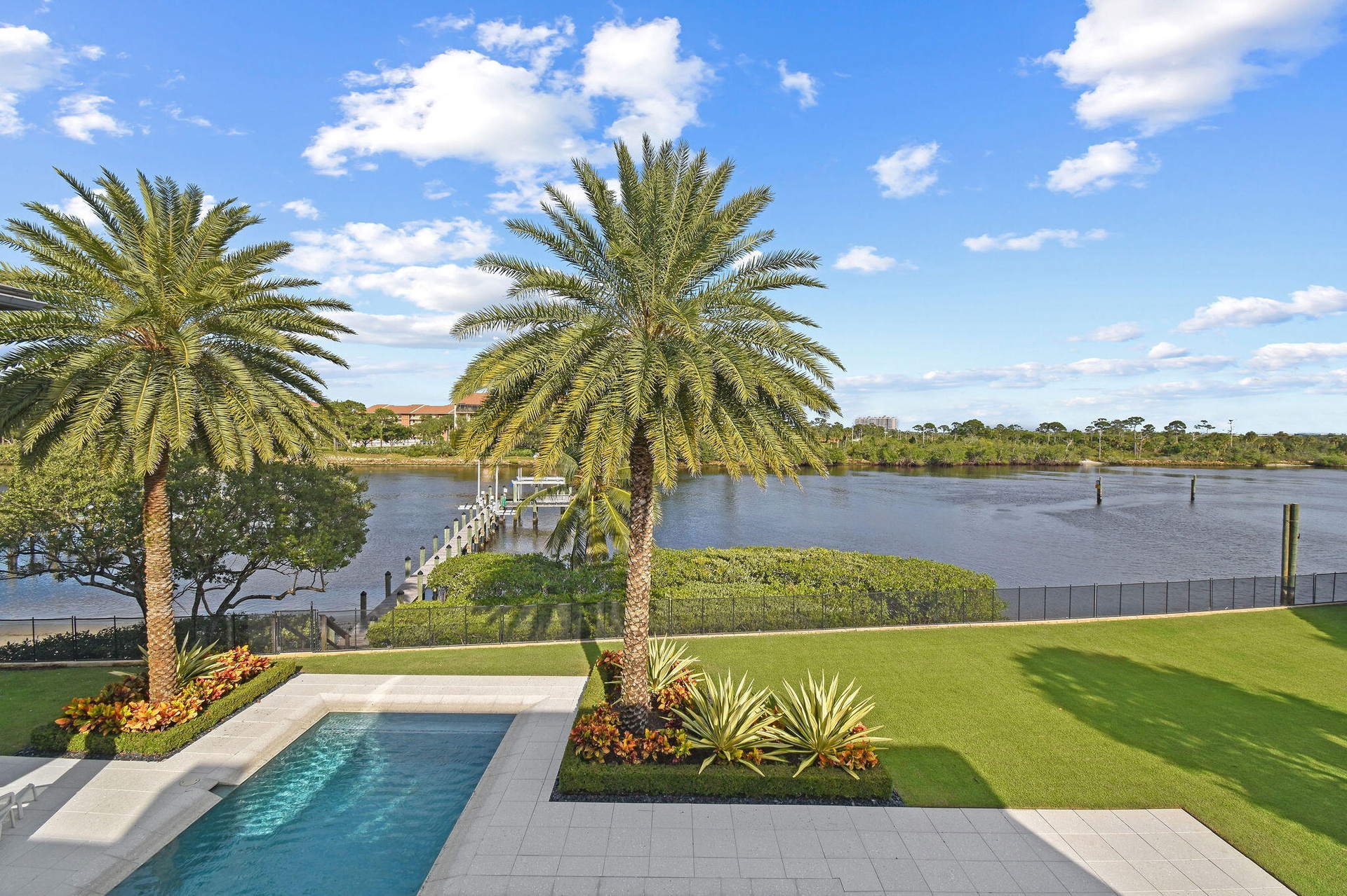 Introducing a beautifully crafted modern waterfront residence located directly on the Intracoastal Waterway in the private, gated community of Harbor Place, adjacent to The Bear's Club in Palm Beach Gardens. Designed and built by Couture Lifestyles in collaboration with Smith & Moore Architects and Pauline Hartogh of Wetherlys Interiors, this custom home blends clean architectural lines with refined finishes and thoughtful functionality. With 157 feet of direct Intracoastal frontage, the property is ideally positioned to capture expansive water views and natural privacy overlooking the Juno Preserve. Offering nearly 10,000 total square feet, this six-bedroom residence is designed for comfortable everyday living as well as effortless entertaining. The main living areas feature open-concept spaces, floor-to-ceiling glass, and a striking 24-foot linear fireplace that anchors the great room. The chef's kitchen is both stylish and highly functional, complete with dual oversized islands, Downsview cabinetry, quartz countertops, a prep kitchen, butler's pantry, and a full suite of Thermador appliances. The first-floor primary suite offers serene water views, generous closet space, and a well-appointed en-suite bath. Upstairs, a second primary wing provides a private retreat with its own sitting area, covered balcony, morning bar, custom walk-in closets, and a spacious spa-style bath. Three additional guest suites on the second level each include walk-in closets and designer bathrooms. Constructed with reinforced CBS tie-beam construction, the home also features impact glass windows and 10-foot sliders, elevator access, electric blinds, marble flooring, designer finishes, whole-house generator, security system, and full smart-home automation. Laundry rooms on both levels and abundant storage add to the home's practicality. Outdoor living is equally impressive, with a covered loggia overlooking the heated pool and spa, summer kitchen, cabana bath, and outdoor shower. A private beach area, long dock with a 16,000-pound boat lift, and generous waterfront seating complete the boating experience. Conveniently located near the PGA corridor, residents enjoy close proximity to premier shopping, dining, golf, and the beaches of Juno and Jupiter, as well as easy access to the Jupiter and Palm Beach Inlets. A thoughtfully designed waterfront home offering quality craftsmanship, modern comfort, and exceptional Intracoastal living.