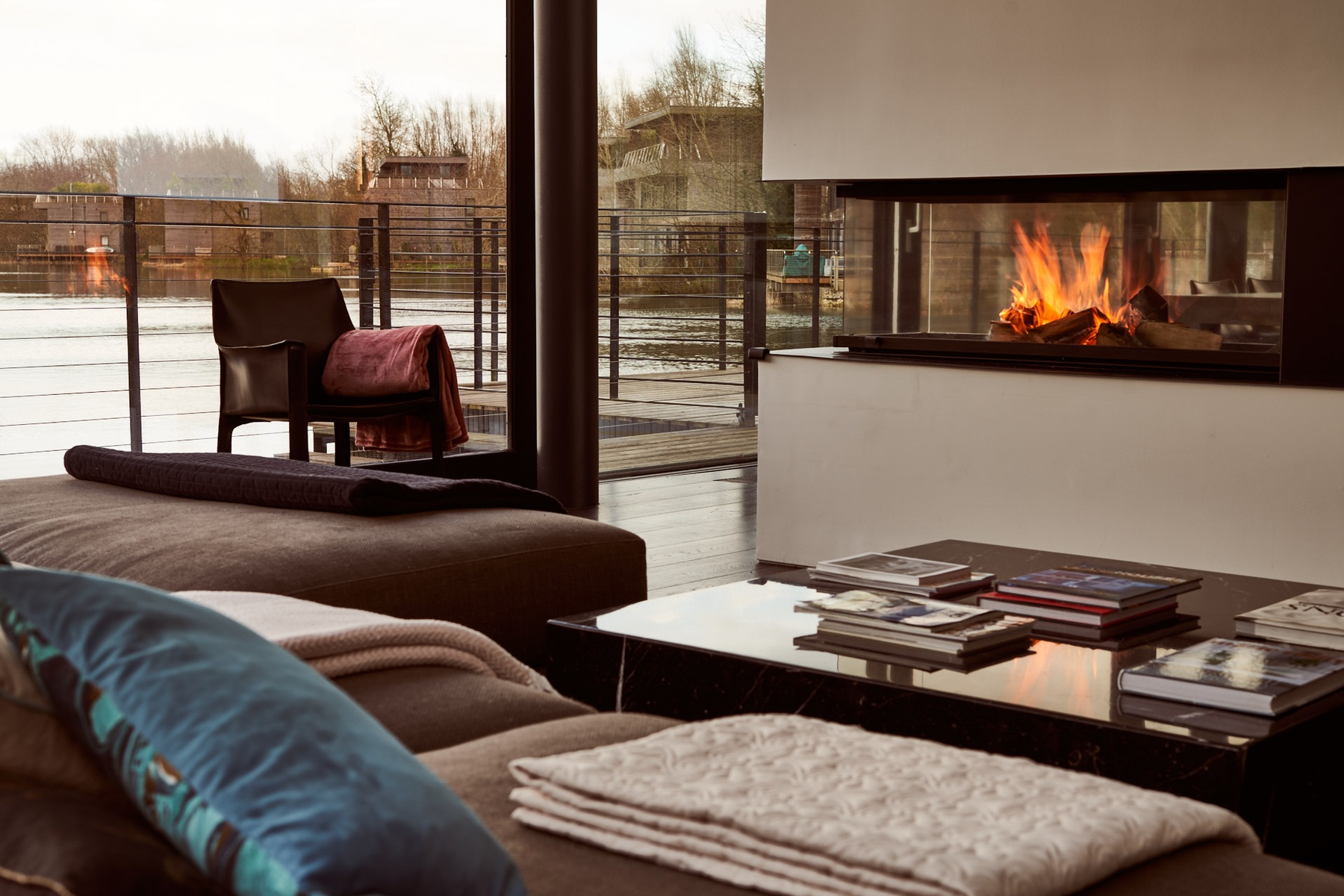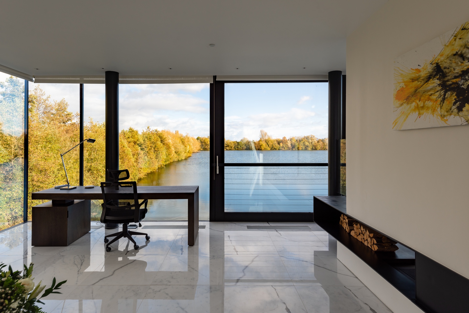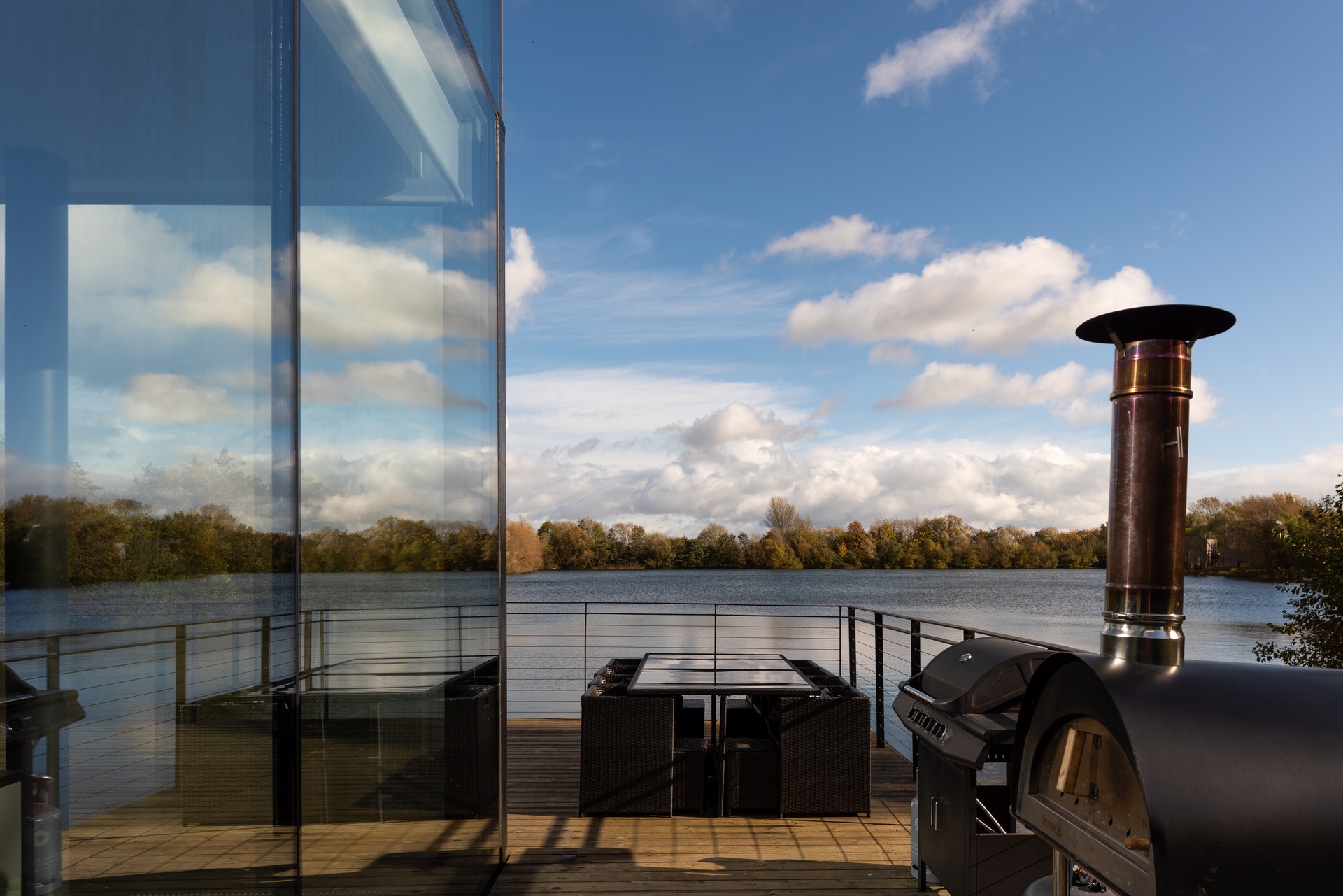 - Private wrap-around terrace (40 m2) with outdoor furniture and lakeside garden