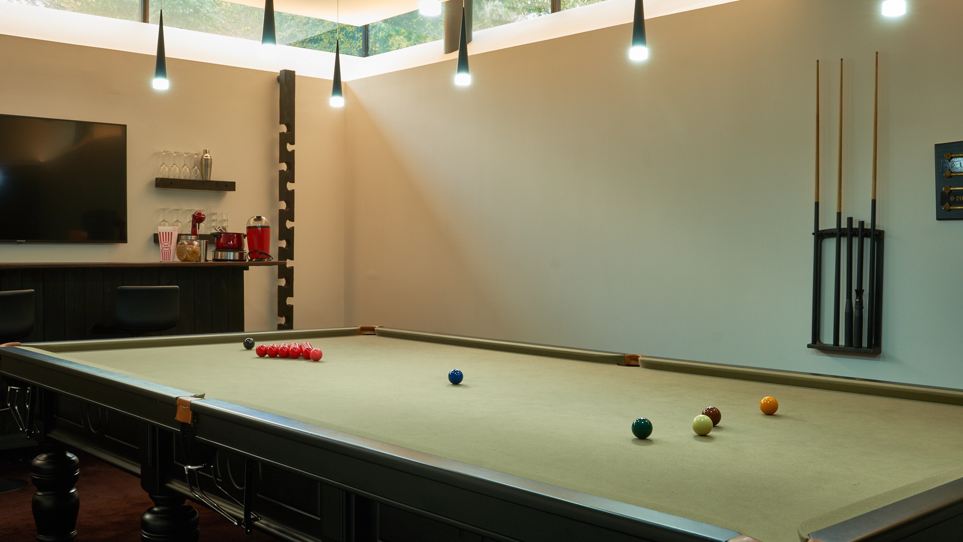 - Full-size snooker table and a fully themed entertainment bar