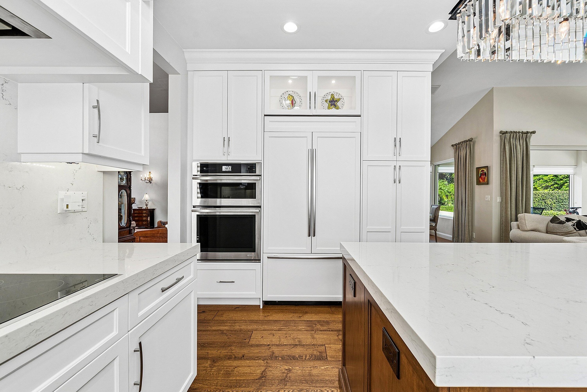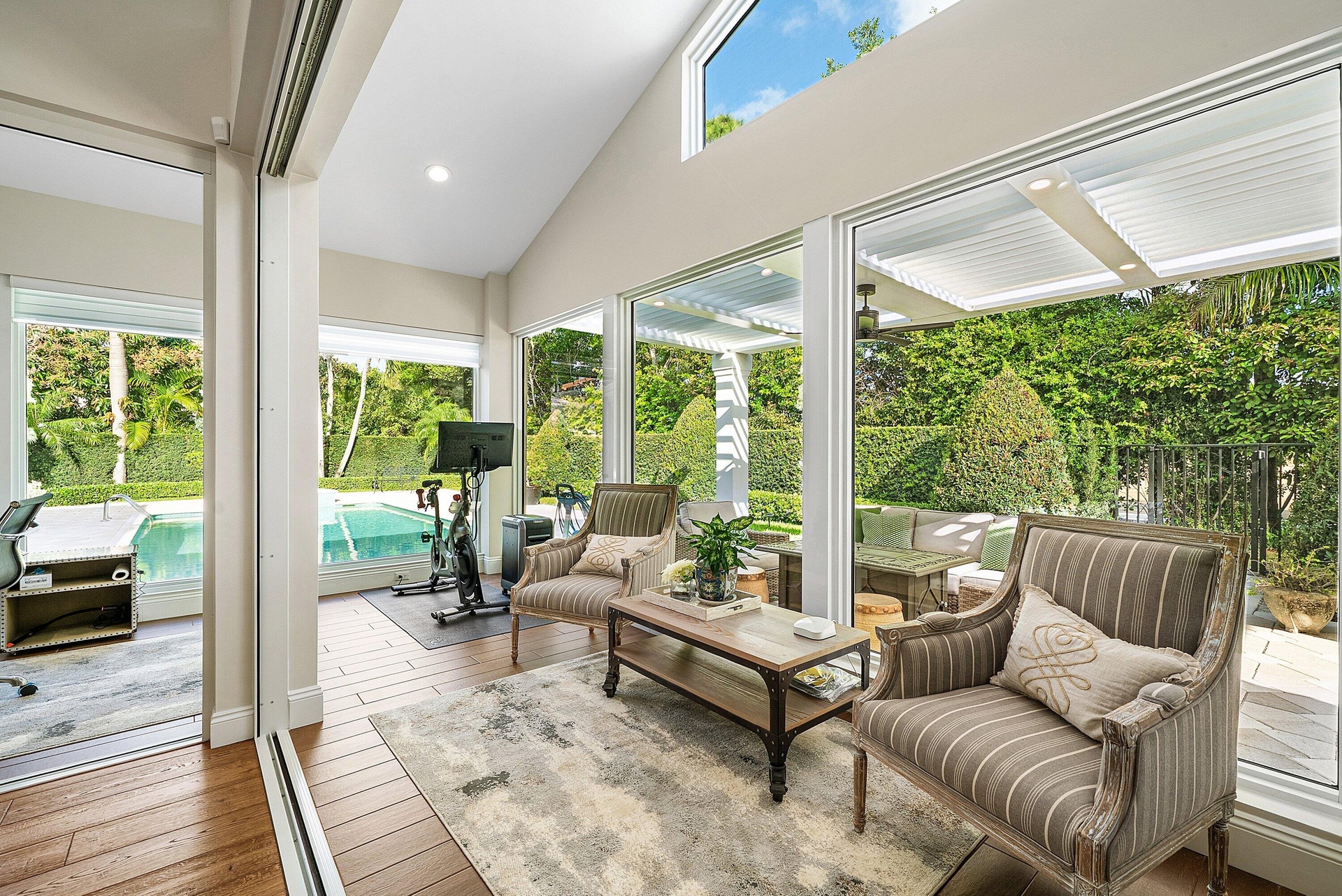 Experience refined living in this beautifully renovated 5-bedroom, 3.5-bath home located on the golf course in the prestigious Pine Tree Golf Club. Situated on nearly half an acre, this elegant residence offers privacy, sophisticated upgrades, and exceptional indoor-outdoor living within a 24-hour man-gated community. Thoughtfully updated throughout, the home showcases meticulous attention to detail and high-end finishes. The scenic golf course setting enhances the community's open feel, while golf membership is not mandatory, offering flexibility without club obligations. The stunning, remodeled open kitchen features premium cabinetry, sleek stone countertops, an induction cooktop, and a well-appointed island, seamlessly connecting to the home's living areas. The luxurious ground-floor primary suite offers a spectacular spa-inspired bathroom finished in Carrera marble, creating a true private retreat. Natural light pours into the inviting sunroom, providing a tranquil space to relax year-round. The outdoor living areas are equally impressive, featuring a sparkling pool and spa, covered outdoor loggia with retractable top, and a spacious paver patio within the beautifully landscaped, fully fenced backyard. The home is equipped with numerous upgrades for comfort and convenience, including a newer roof (2018), impact windows on the main floor, whole-home water filtration, smart-home security features and a two-car garage equipped with two electric vehicle chargers. The home has been impeccably maintained. Ideally located in the heart of Boynton Beach, this exceptional property offers convenient access to waterfront dining, shopping, and entertainment, as well as nearby Downtown Delray Beach and Palm Beach International Airport.