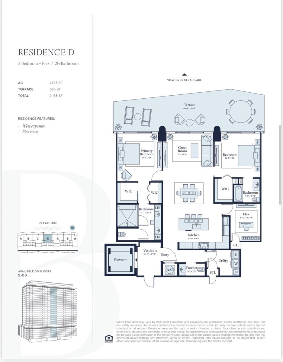 The Berkeley introduces a new standard of waterfront living in West Palm Beach. Developed by Al Adelson of The Bristol, and designed by Arquitectonica, the building blends architectural presence with calm, light-filled interiors. Residences are thoughtfully designed with expansive floorplans, generous terraces, and a range of water, skyline, and city views depending on residence and floor level. With estate-scale living, uncompromised privacy, and an irreplaceable waterfront location moments from downtown, The Berkeley offers a rare opportunity in one of South Florida's most dynamic luxury markets. Enormous Terrace on the lake, measuring approximately 45 x 13 feet. All sizes approximate and subject to errors and verification. Square Footage as per Floor Plan. Learn more at www.theberkeleypalmbeach.com. Our sales gallery is located at 500 S Australian Ave 9th Floor West Palm Beach, FL 33401 Parking is on first level in the garage.