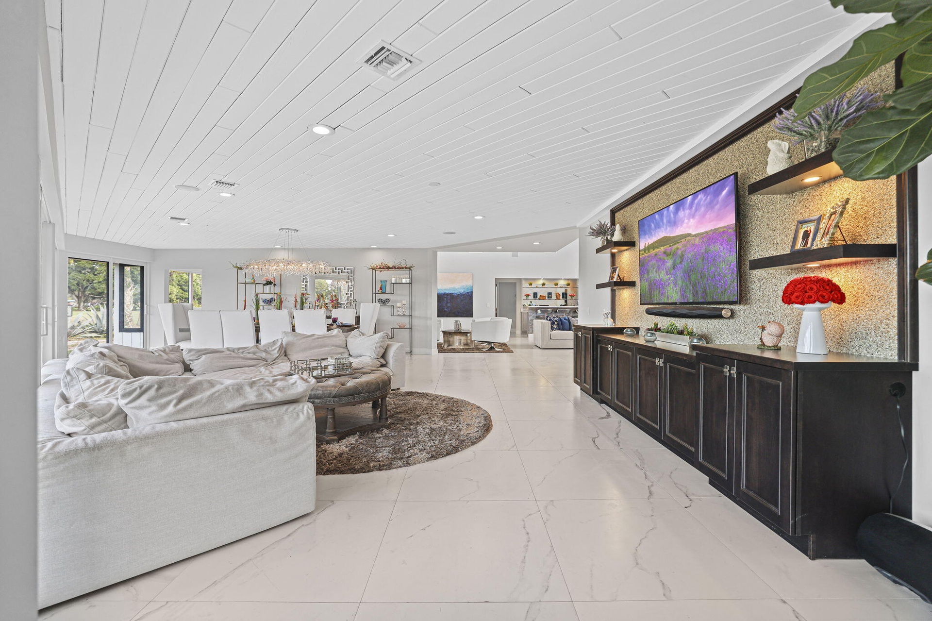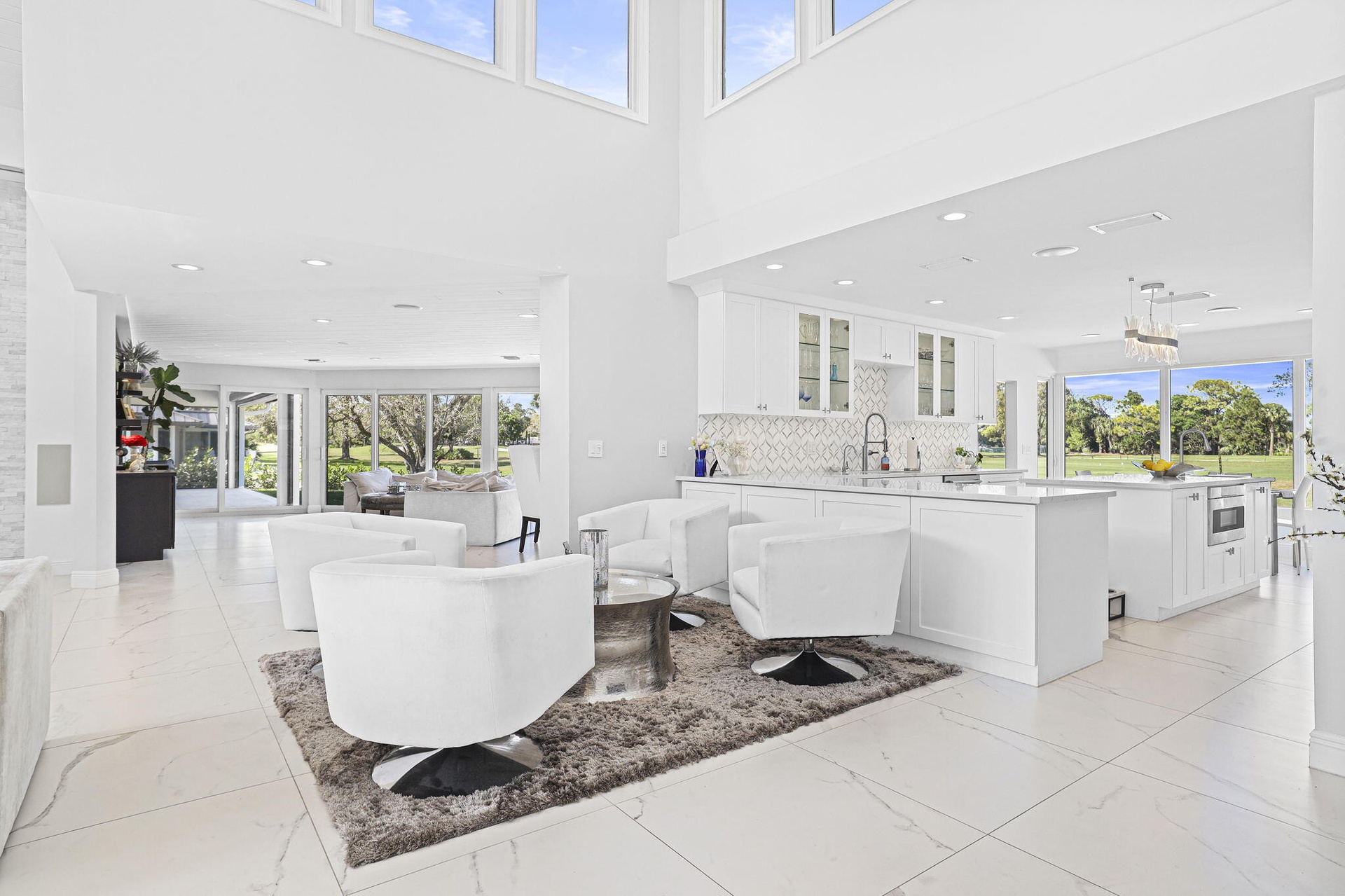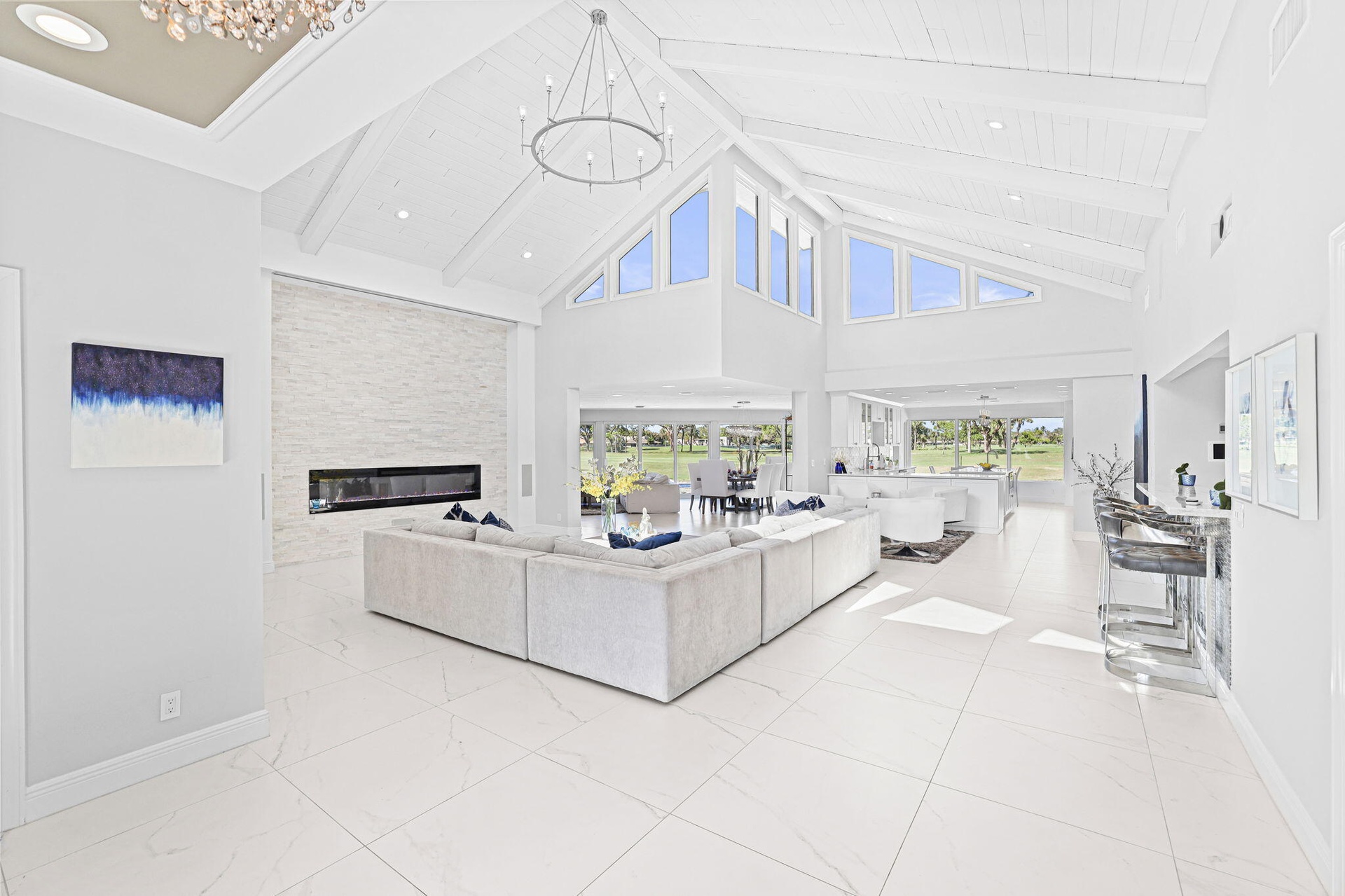 Please do not walk property without a confirmed appointment! Introducing one of the most extraordinary residences ever offered in Eastpointe Country Club. Perfectly positioned on over half an acre along the 10th hole of the East Course, this remarkable estate represents a true trophy property within one of Palm Beach County's premier private golf communities. Spanning over 3,700 square feet of refined living space, this impressive residence features 4 bedrooms, 3 full bathrooms, and 2 half baths, all thoughtfully designed around soaring ceilings and an open, light-filled floor plan that seamlessly blends elegant interior living with exceptional outdoor entertaining. At the heart of the home... expansive living areas flow effortlessly to a spectacular newly constructed 960-square-foot outdoor lounge, creating a private resort-style setting rarely found in Eastpointe. The outdoor entertainment pavilion is nothing short of extraordinary, featuring an expansive bar, imported Italian pizza oven, three additional grilling stations, sink, icemaker, dishwasher, warming trays, and every amenity needed to host unforgettable gatherings. A drop-down outdoor screen allows guests to enjoy movies or the big game poolside, while a dedicated cabana bath enhances comfort and convenience. The interior of the home is equally impressive, enhanced with fully integrated smart-home technology controlling interior and exterior lighting, whole-home music, climate systems, garage doors, and a dramatic 150-inch drop-down theater screen in the living room—bringing modern luxury and convenience to everyday living. Additional highlights include: All hurricane-impact windows and doors Brand new 2024 roof 21⁄2-car garage with hurricane-impact garage doors Expansive golf course views from one of the largest homesites in Eastpointe Further elevating the property, the outdoor environment continues to evolve with a nearly 2,000-square-foot pool deck, exterior fencing, and designer fireplace tile currently nearing completion—promising an even more spectacular finished product. With its rare half-acre setting, commanding golf course frontage, exceptional scale, and world-class entertaining spaces, this home stands among the largest residences on one of the largest and most desirable lots in all of Eastpointe. An extraordinary opportunity to own a true showpiece property in one of Palm Beach Gardens' most sought-after golf communities.