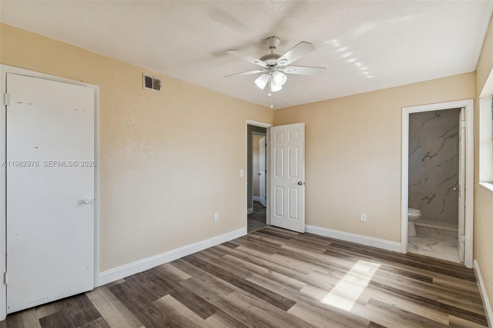 Inside, you’ll immediately notice the gorgeous Luxury Ceramic Plank flooring throughout the living room, kitchen, and hallways. The kitchen features stylish two-tone painted cabinets and stainless steel appliances, including refrigerator, dishwasher, and oven. Bedrooms are generously sized, with the primary bedroom offering its own en-suite bath.