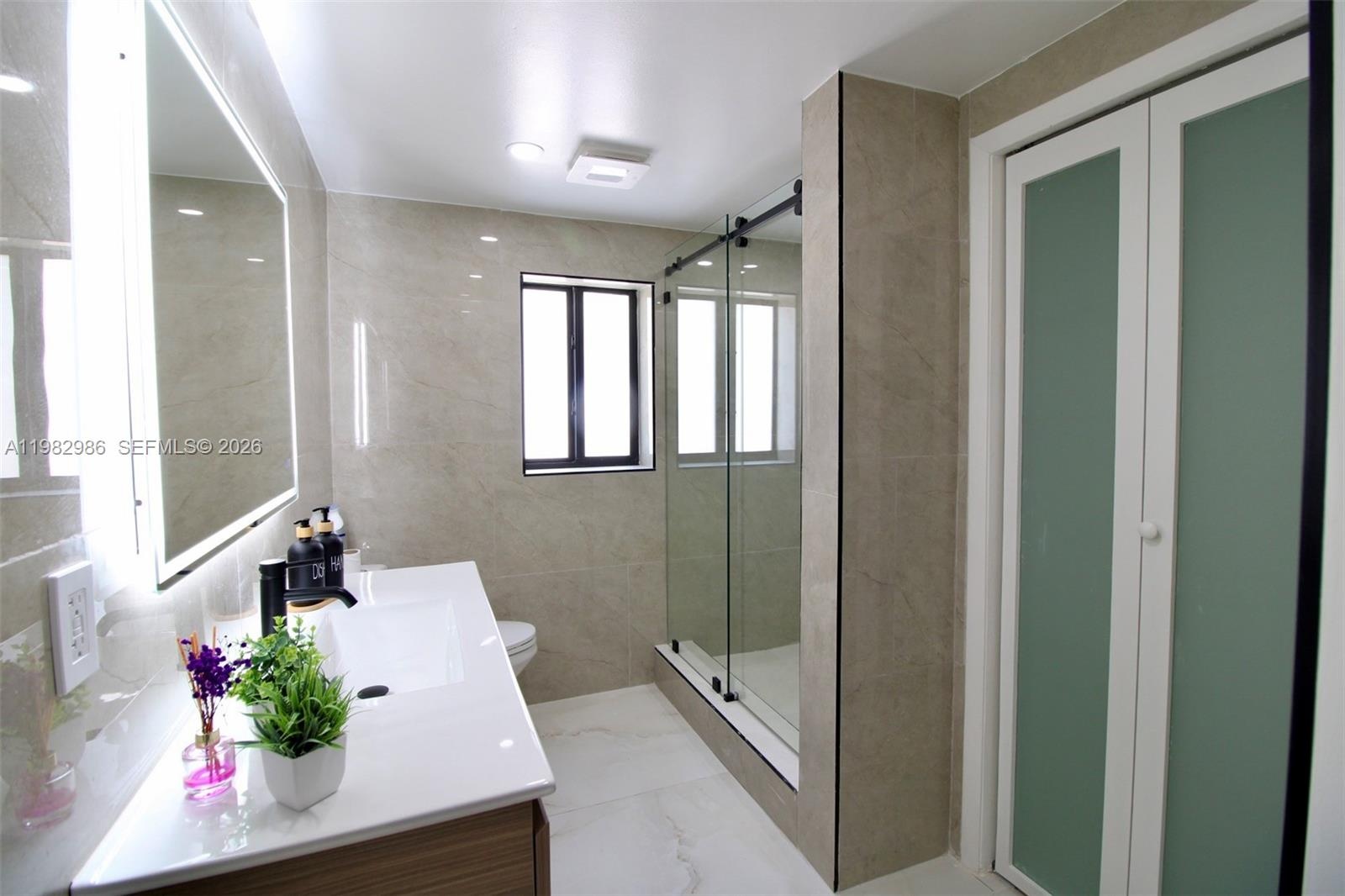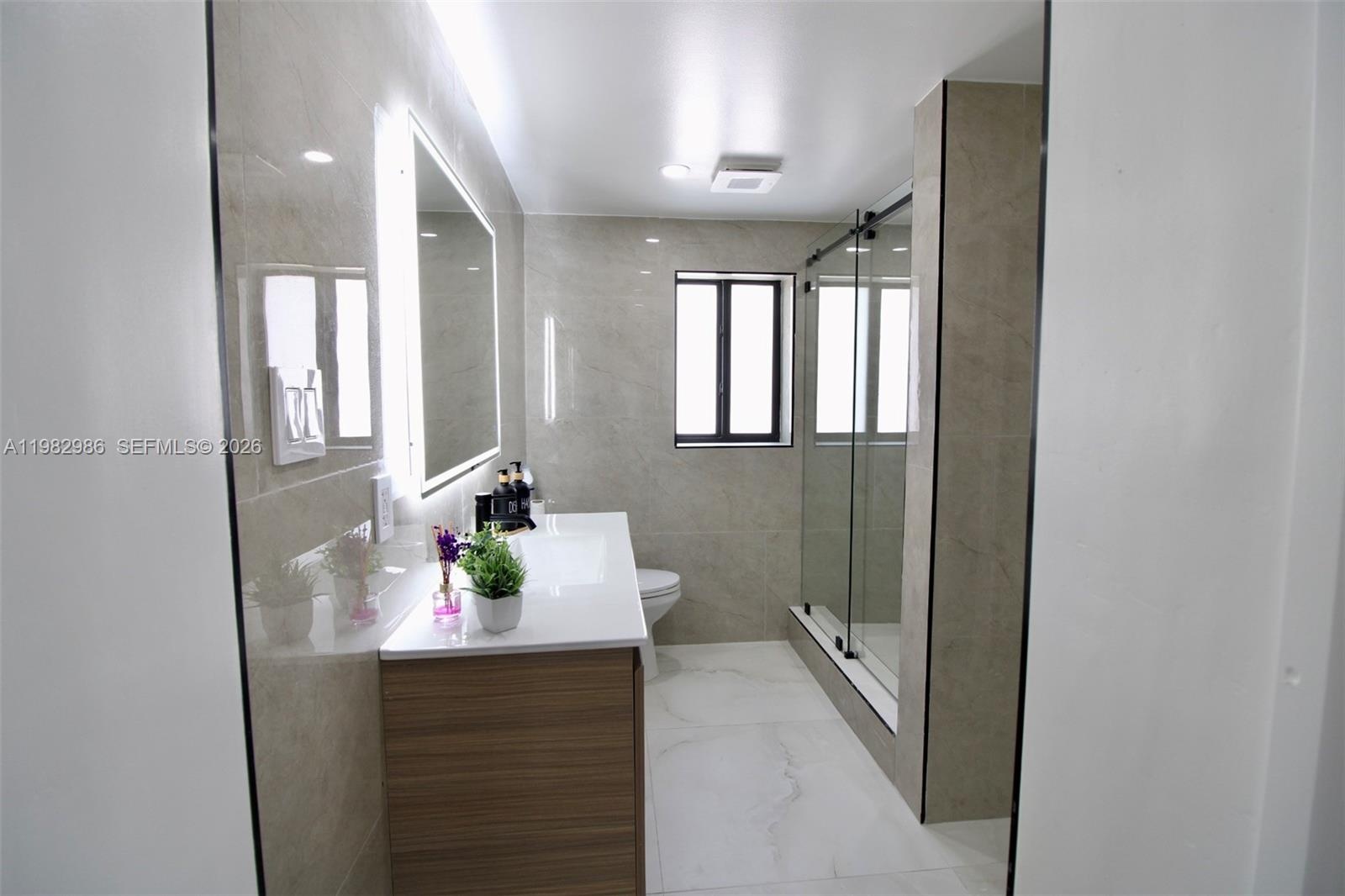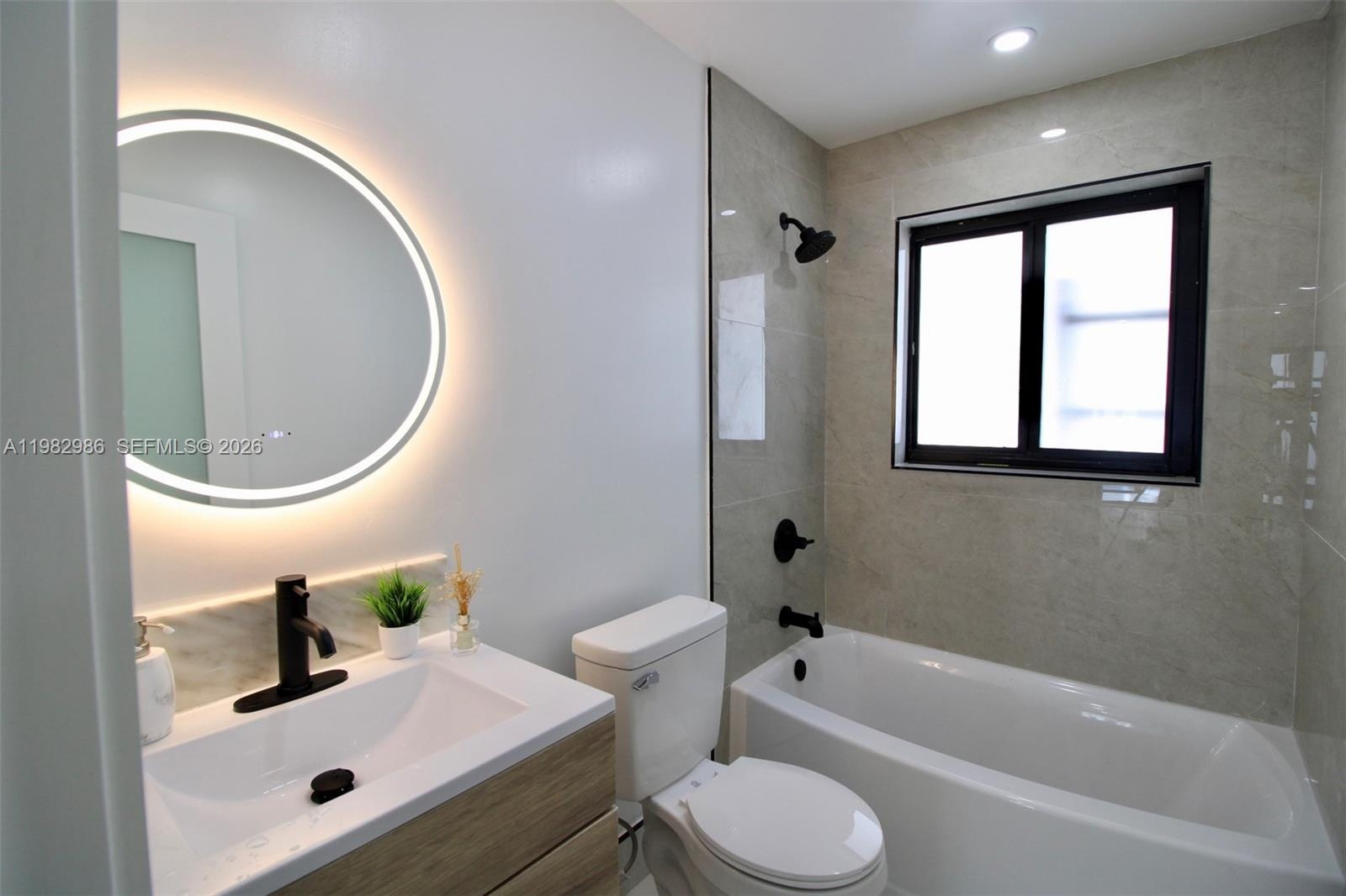 Features include impact windows, NEW ROOF, NEW CENTRAL A/C, and a modern kitchen with stainless steel appliances. The primary bedroom includes its own private bathroom, offering privacy and convenience, along with well-sized additional bedrooms.