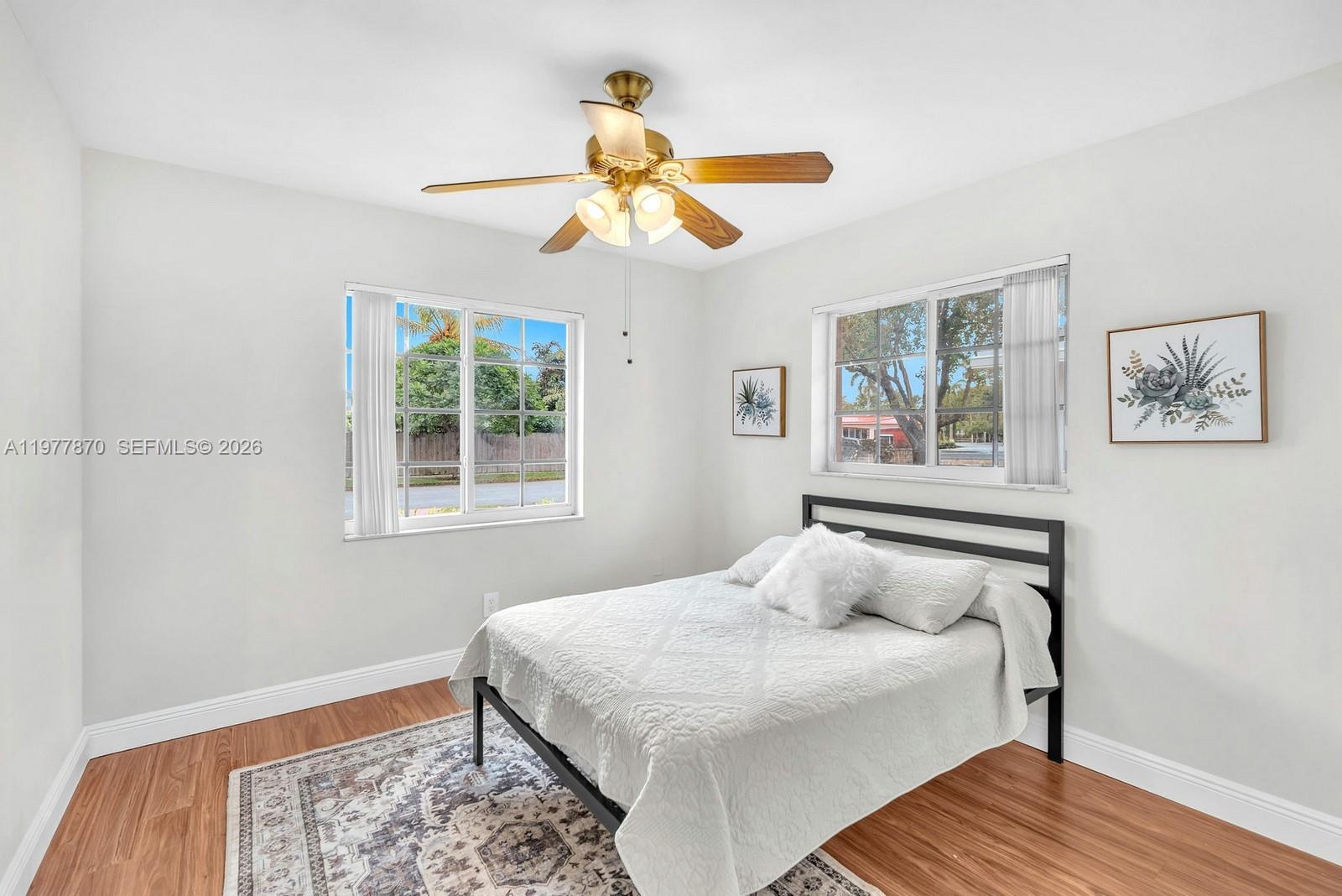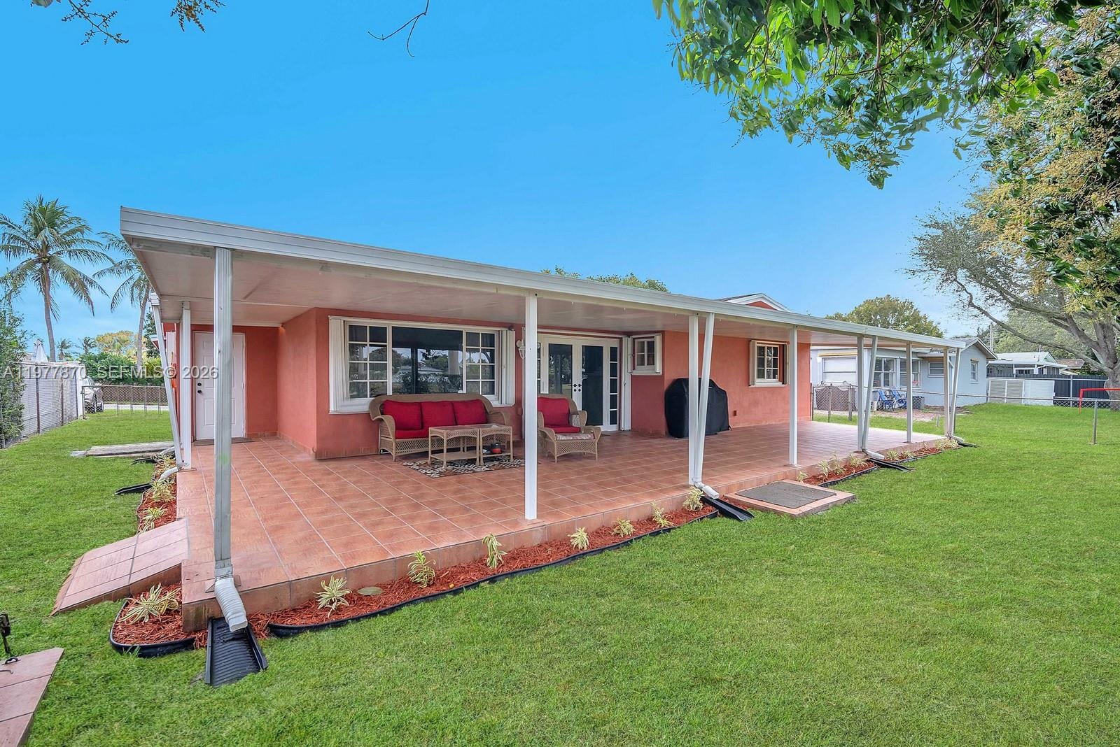 Wonderful 4 beds and 2 baths home in a quiet neighborhood of Pembroke Pines. The property features a large circular driveway and an entry porch with a great garden area. The kitchen overlooks the family room and dining area and includes wood style cabinetry and stainless steel appliances. French doors and a large window in the family room bring in natural bright sunlight throughout the living space. The home also includes a versatile additional room that may be used as a bedroom, office, playroom, or flex space. The backyard is spacious and fully fenced, with a large covered patio finished with tile that provides comfortable outdoor space for barbecuing, spending time with family and friends and watching the beautiful sunsets. Additional features include accordion shutters throughout the home and no HOA. Home is centrally located between I-75 and I-95, and close to dining, shopping, entertaining and Pembroke Pines schools.