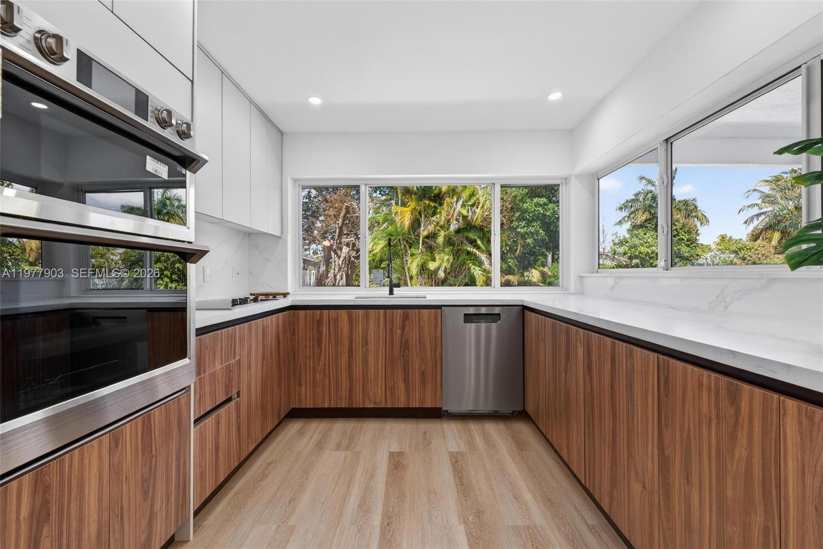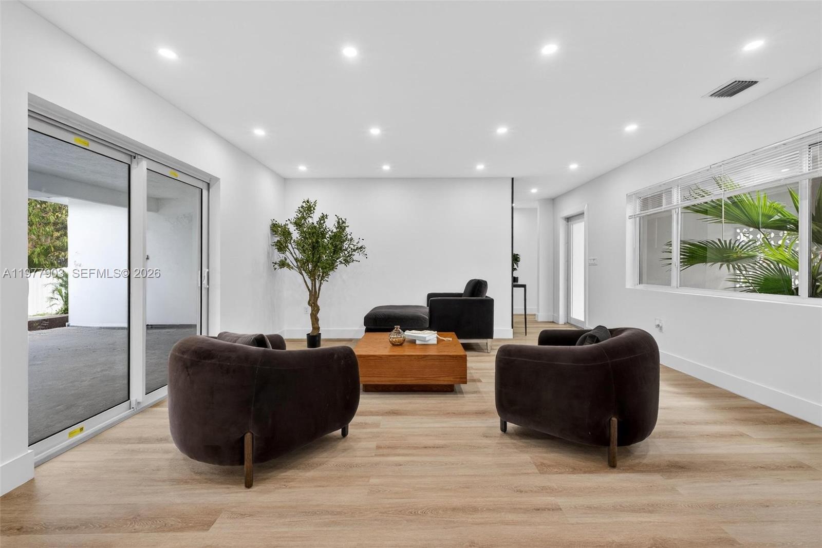 Welcome to this stunning waterfront retreat in the heart of Miramar, fully renovated from top to bottom and ready to impress from the moment you walk in. Soaring ceilings and an abundance of natural light greet you in the expansive open-concept living and dining areas, anchored by wide-plank luxury flooring and designer recessed lighting throughout.