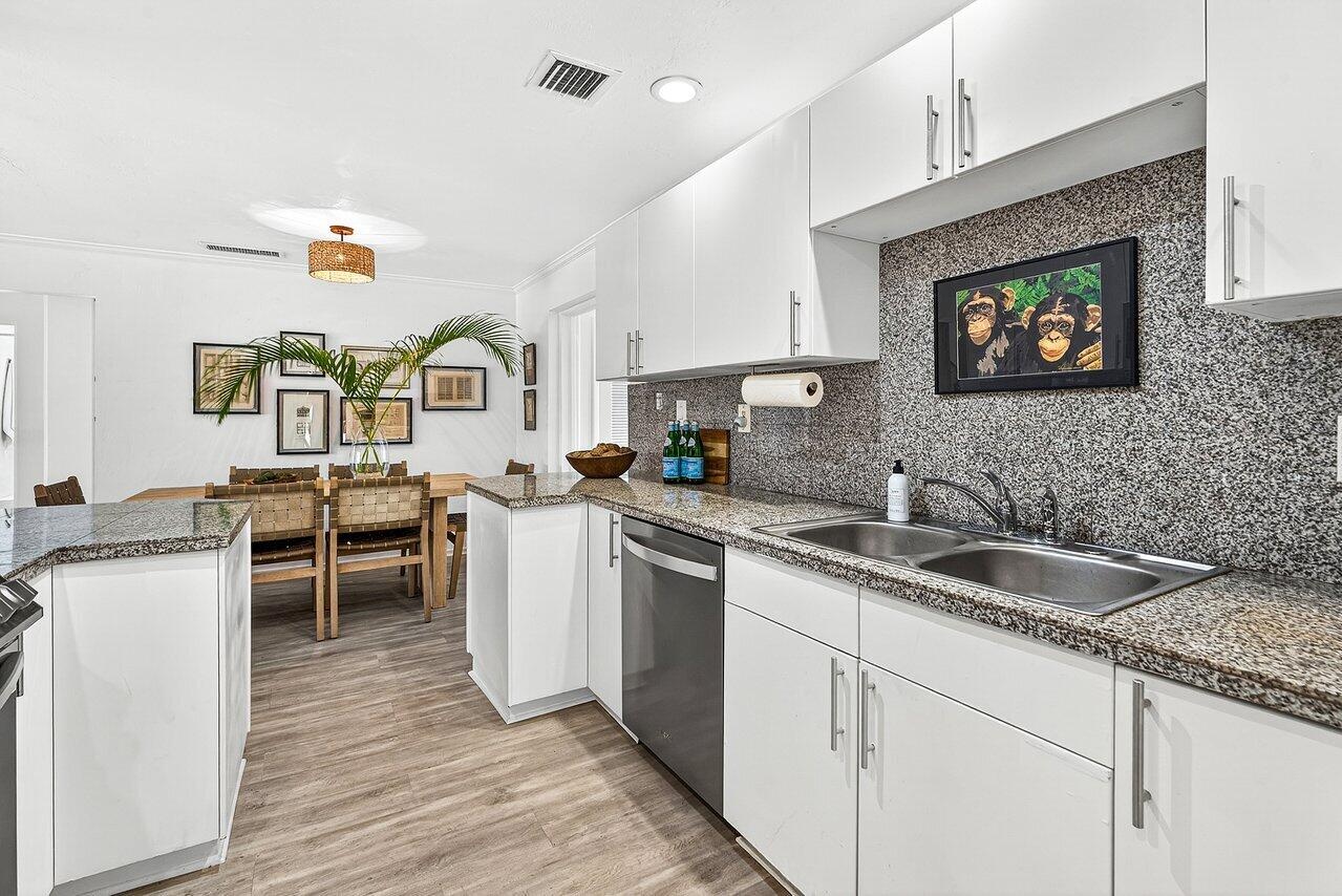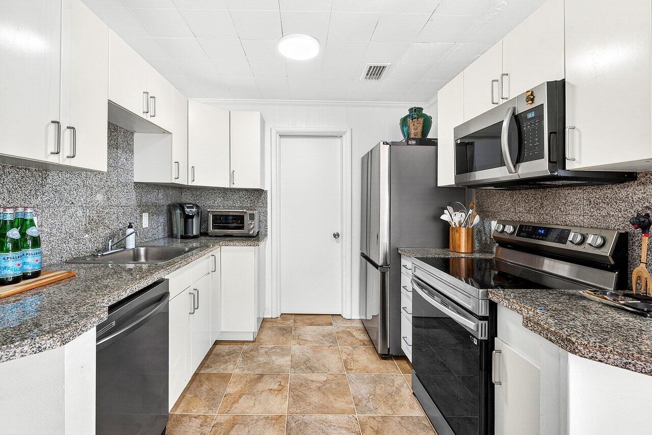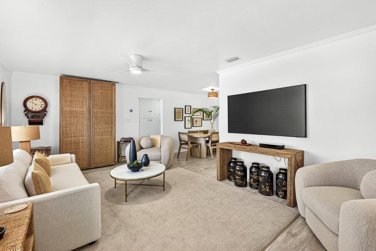 Well-designed Mid-Century 3BR/2BA home with a detached 1BR/1BA guest house in the Southland Park Historic District, just off Flagler Drive and seconds from the Intracoastal. This impeccably furnished home features luxury bedding and linens, new flooring, refreshed baths, and brand-new appliances for comfortable, modern living. The private guest house includes its own kitchen and laundry—ideal for guests, extended family, or a home office. Enjoy a circular drive, ample parking, and a large, covered patio perfect for outdoor living and entertaining. Minutes to Palm Beach Island, downtown West Palm Beach, and Palm Beach International Airport with dining, shopping, and beaches just minutes away. Pets considered.