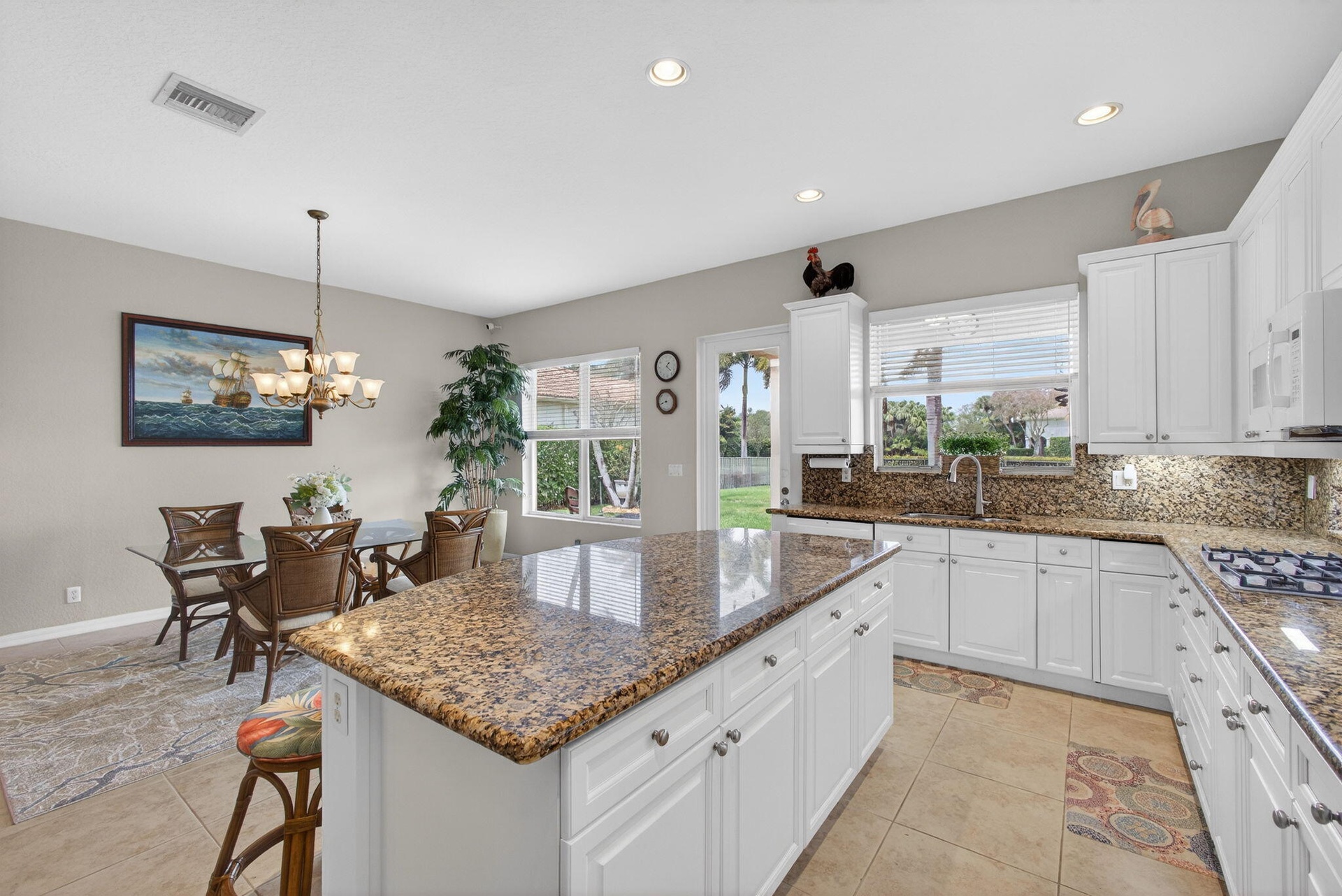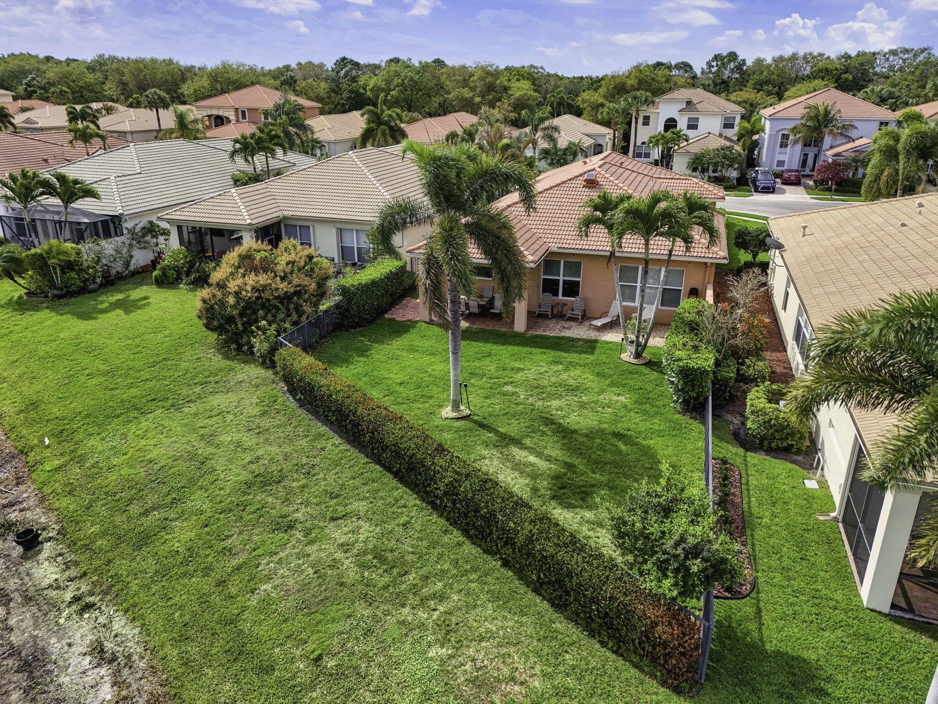 Unique and Special One-Level "Extended El Prado Model" at the end of the Cul-de-Sac Street in Mirabella. Situated on an oversized, extra-deep (1/4 acre), spectacular lakefront lot with a huge fenced-in backyard (plenty of room for pool) & no houses behind you! This true 4BR, 3 full bath customized model is over 2500 SF "Under-Air" & was one of only a few built with Impact glass windows & doors w/ UV film. Roof replaced in 2017. Enjoy outdoor entertaining on the large covered lanai featuring soffit lighting, ceiling lights, fan, & a gas hookup for a summer kitchen. Inside, the main living areas have an amazing open floor plan with lots of windows & natural light & high ceilings throughout. This is a special home with lots of special features, from a high-end, unique AC system to a finished garage with insulation, + more, and it is one of the best buying opportunities in PBG. Mirabella is one of the best-managed guard-gated resort-style communities in all of the Northern Palm Beaches with 24/7 Manned Guard Gate, resort-style amenities: a Renovated Clubhouse with Social Events and on-site property managers, one of the best Tennis Facilities, and a workout room for a non-country club community in the entire area, a separate kids' Clubhouse with a gated playground, and Heated Pool.