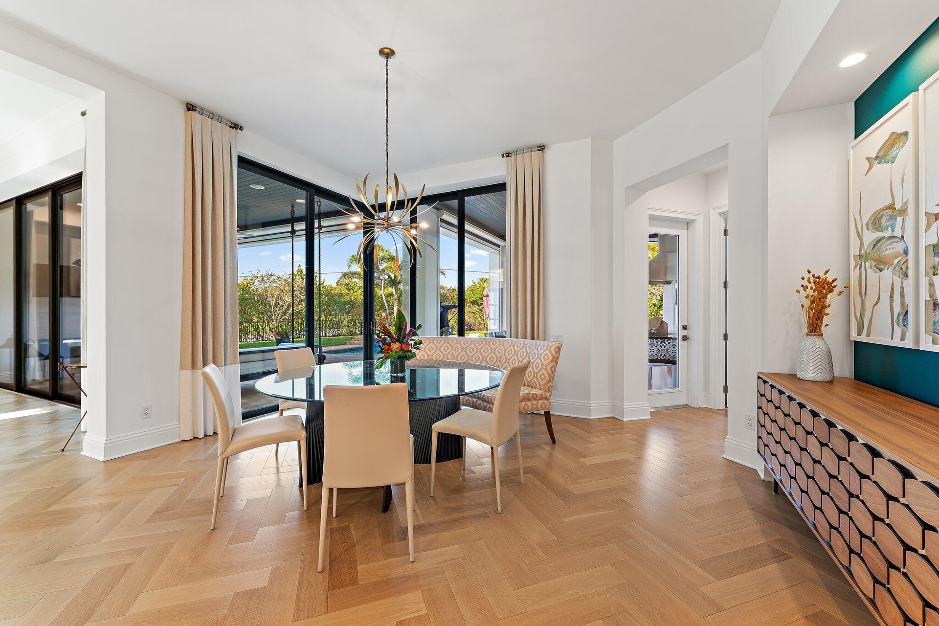 STUNNING! NEW 2021 CUSTOM BUILD in the Affluent IntraCoastal Neighborhood of Indian Hills, Jupiter. HIGH END DETAIL from the Mitored Roof Tiles eliminating ridge cap tiles to the Solid Wood Herringbone Hardwood Floors. The ATTENTION to DETAIL is BEYOND! Please refer to Details in Supplement. Whole House Generator. 220 Outlet for Electric Vehicle in 3 Car Garage.Remote Recessed Roll Down Screens at Covered Patio.Corner Close+Pocketing IMPACT SLIDERs.Custom Front Double Doors w/Solid Brass Hardware + Lock System.Large STONE Outdoor Wood Burning FIreplace.Resort stylPool w Waterfalls+Beach Ledge.Travertine Patio+Circular Dr.Open Split Floor Plan. Huge Walk In Pantry. Natural Quartz Countertops. Designer LIGHT+PLUMBING