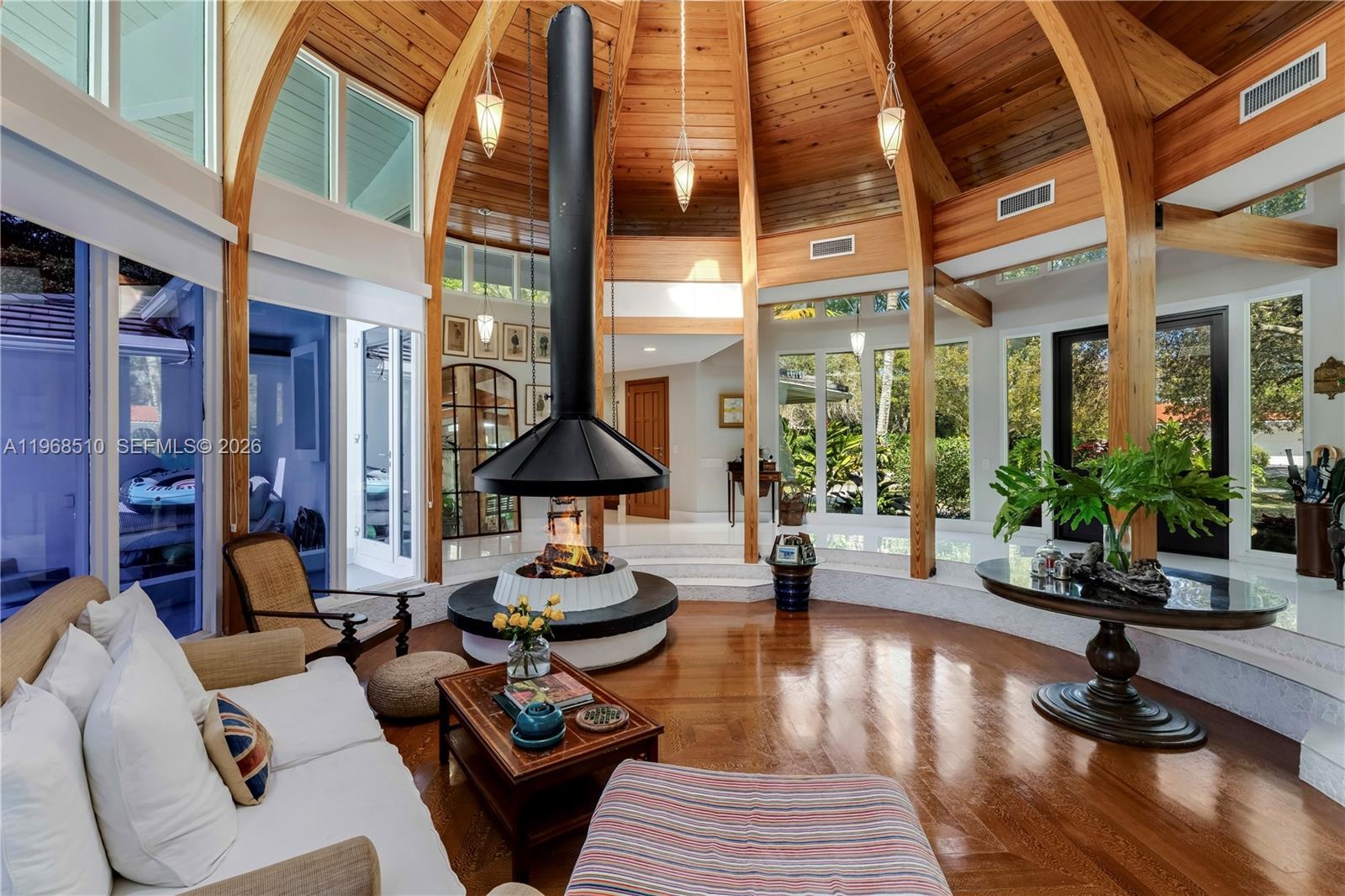 Set on a premier builder’s acre in the heart of Pinecrest, Florida, this striking canal-front estate is a rare blend of architectural pedigree, thoughtful updates, and timeless design. Originally conceived by noted architect Barry Sugerman, the home makes an unforgettable first impression with its dramatic wood rotunda entry, soaring ceilings, and signature curved walls that create a sense of flow and quiet sophistication throughout. Spanning over 5,000 square feet, the residence offers five bedrooms and five baths, including private staff quarters. The interiors have been beautifully refreshed, featuring rich cherry hardwood floors, marble finishes, and custom Italian doors. The chef’s kitchen is both functional and stunning, equipped with double Wolf gas ovens, an oversized Sub-Zero refrigerator, and a generous workspace designed for both everyday living and entertaining. Walls of impact glass open to a resort-style outdoor setting with a sparkling pool, expansive grounds, and tranquil canal views, enhancing the home’s sense of privacy and scale. A three-car garage, newer roof, and location within Pinecrest’s top-rated school district further elevate the offering. This is a home for those who appreciate architecture, space, and one of Pinecrest’s most desirable waterfront settings. An exceptional opportunity to own a truly distinctive property.