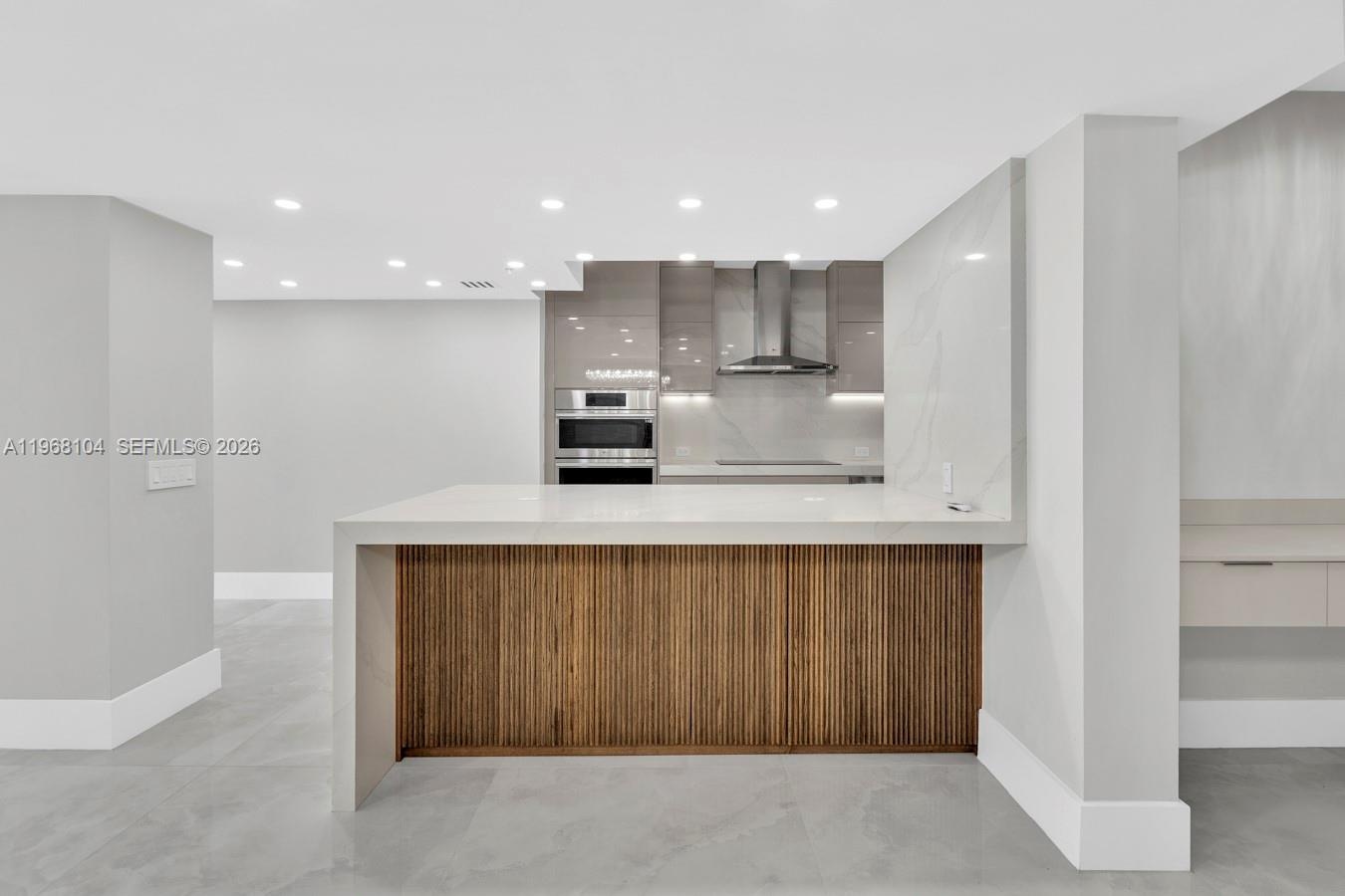 Walls were removed and redesigned to create a dramatic open-concept layout with expansive living spaces and seamless ocean-facing flow. Every finish was elevated: impact glass, wide-format designer flooring, custom cabinetry, waterfall-edge quartz, premium appliances, and statement lighting throughout.
