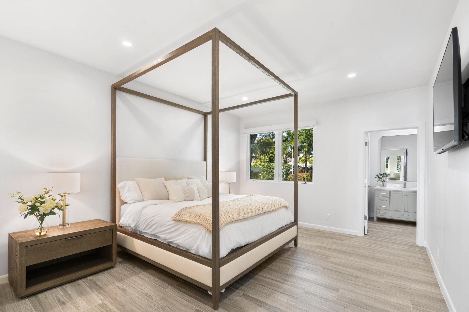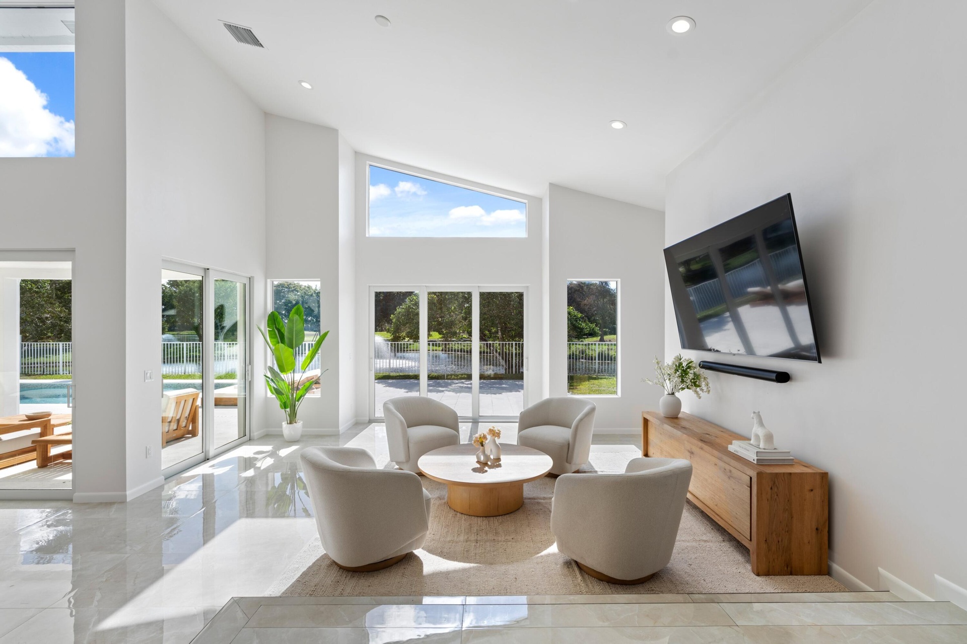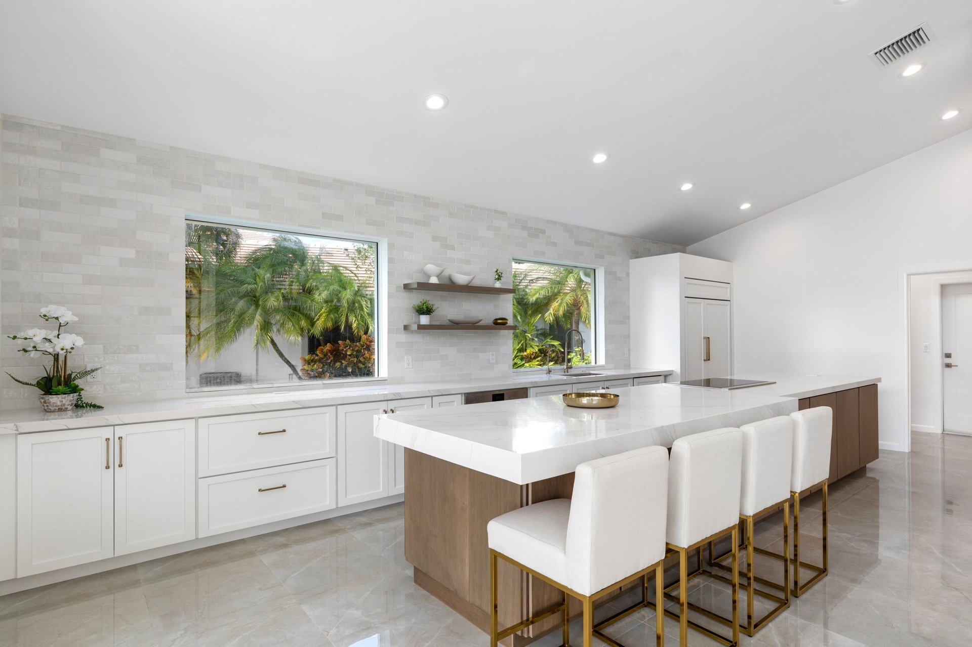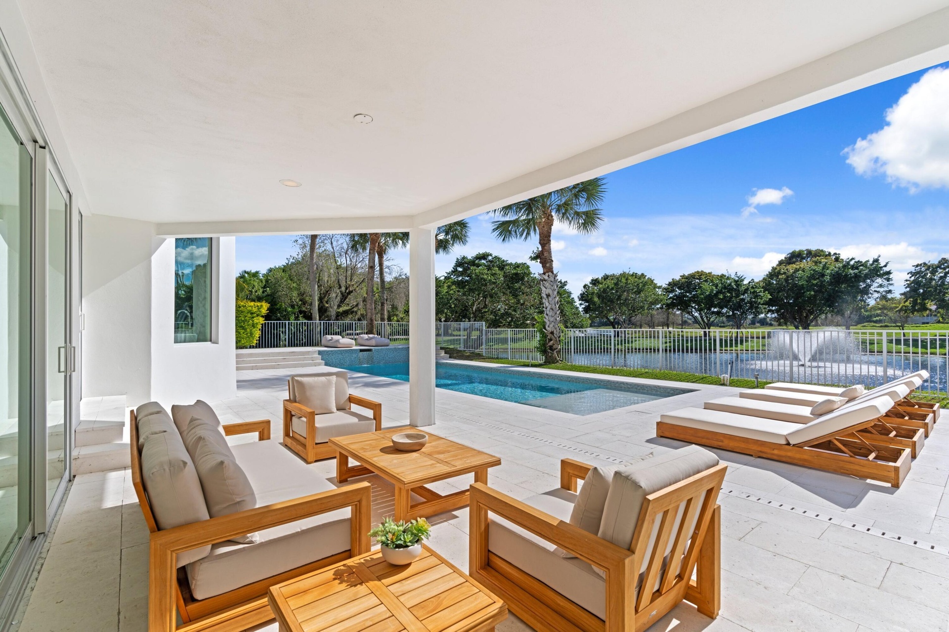 Stunning fully renovated 4-bedroom, 4-bathroom home in the prestigious Palm Beach Polo and Country Club. Offers beautiful water views, top-tier finishes, hurricane-impact windows and doors, and thoughtful design throughout. Step into an open-concept living space with an abundance of natural light. The gourmet kitchen features quartzite countertops, custom cabinetry, Subzero and Wolf appliances, a walk-in pantry, and a spacious island perfect for entertaining. Each of the four generously sized bedrooms provides a private retreat. The primary suite is a true sanctuary, complete with a luxurious spa-like en-suite bath including steam shower, private patio, and walk-in closet. Outside, enjoy your private saltwater pool overlooking serene water views.