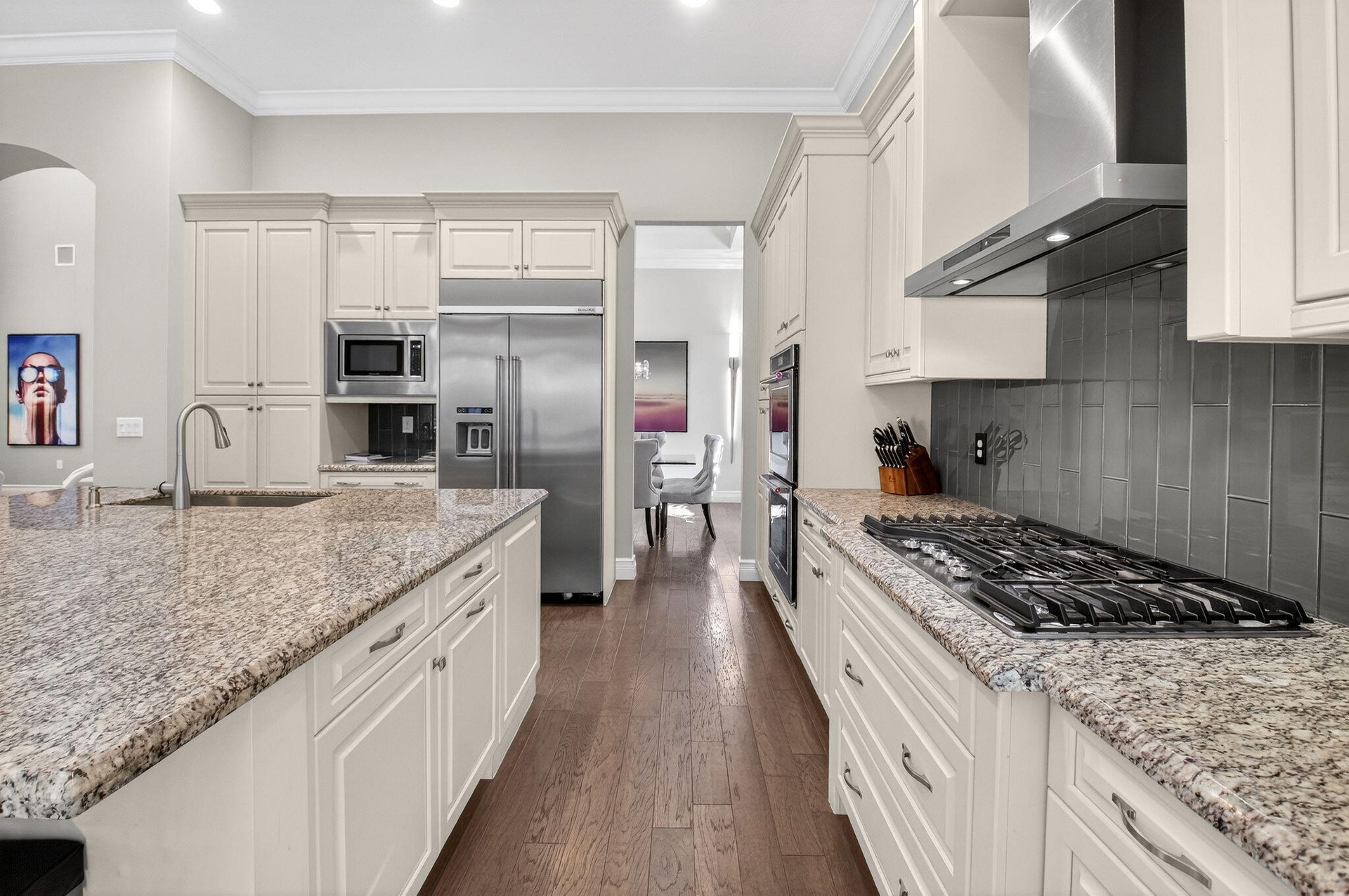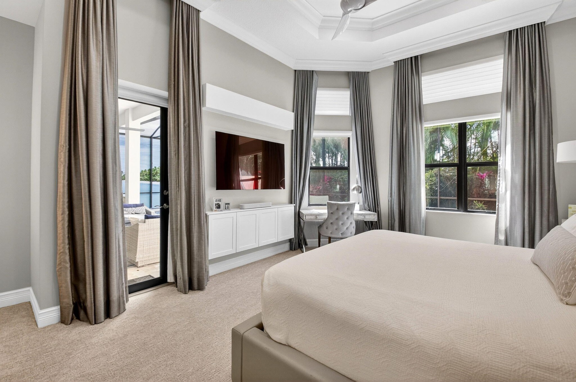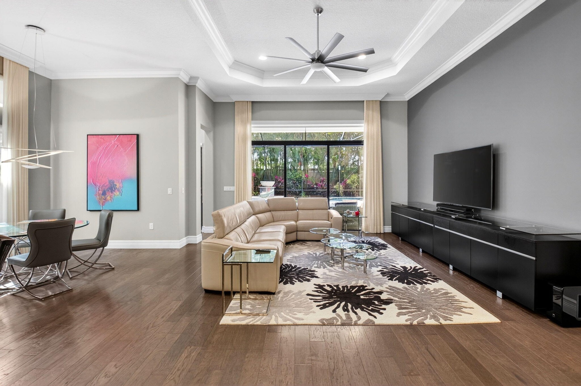 Welcome to Prestigious Seven Bridges. This Vizcaya Model with 5 bedrooms has a versitle floor plan featuring designer built-ins, and wood flooring throughout. Enter through a two-story grand foyer with a tiered chandelier, soaring ceilings, and an impressive circular staircase. The spacious open floor plan features a living room with a dramatic two-story stone wall fireplace, dining room, and a gourmet center island kitchen equipped with a gas cooktop and KitchenAid appliances. The spacious den offers an entertainment center and wet bar, providing a versatile space for relaxation or work. The main level features an Office Library and the Private Primary Bedroom Suite with built-in wardrobe closets and a spa-inspired en-suite bath. There are four additional en-suite bedrooms with full baths Relax or entertain in your Flex Room 5th Bedroom or theater/game room, and an additional lounge loft. The outdoor resort-style backyard features a screened lanai, cabana bath, bar, firepit table, and audio-visual components. Escape to your tropical paradise pool and spa area with ultimate privacy . Residents have access to elevated lifestyle amenities, including a clubhouse with a grand ballroom, lounges, a full-service restaurant, a Starbucks coffee shop, indoor basketball court, game room, children's playhouse, three pools, and professional tennis and pickleball programs with twelve tennis courts and four pickleball courts.