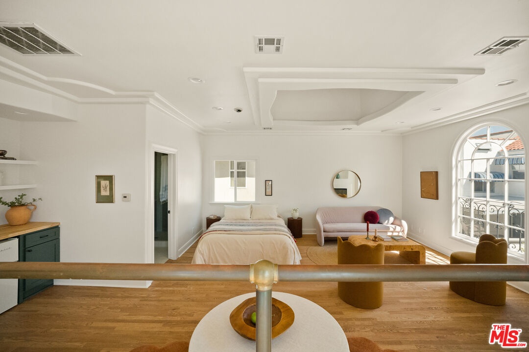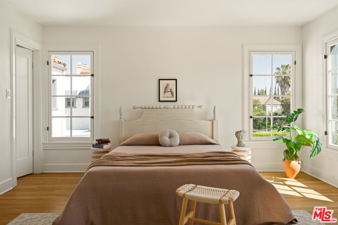 Step into timeless elegance with this stunning 1923 Spanish architectural gem situated in the heart of Windsor Village HPOZ, adjacent to esteemed Hancock Park. This home features distinguished period details, including soaring ceilings, exquisite moldings, arched casement windows, and an original Batchelder tile fireplace, collectively establishing an atmosphere of enduring sophistication. The well-appointed cook's kitchen features an oversized white oak island, Bertazzoni stove, abundant storage, dual sinks, a walk-in pantry, and custom cabinetry, all complemented by serene views of the backyard. A generously proportioned formal dining room, bathed with natural light, provides an exceptional setting for distinguished gatherings and entertaining. A ground-floor office overlooks a charming courtyard with a soothing fountain. The upper level accommodates three spacious bedrooms, including a substantial primary suite appointed with a sun-filled bath, walk-in shower, double vanity, and deep soaking tub. An enchanting bridge leads to a versatile recreation room featuring abundant natural light, a three-quarter bath, and a kitchenette ideally suited for extended family accommodations, guest quarters, or a dedicated creative workspace. The peaceful backyard features established mature trees and manicured lawn areas offering a private outdoor retreat. A secured gated entry provides access to a two-car garage with plentiful storage. Around the corner from Harold Henry Park and walking distance to Larchmont Village shops & restaurants. This one has everything that you are looking for!