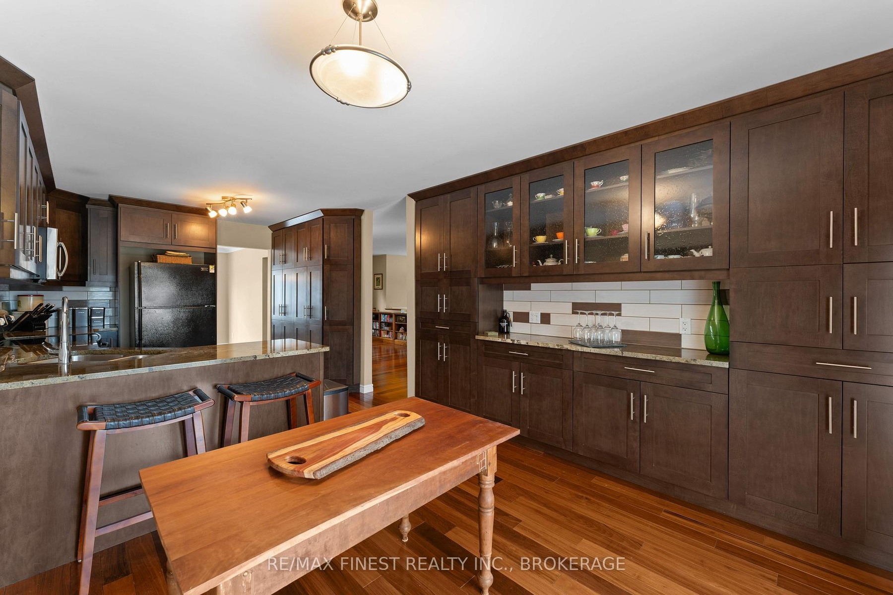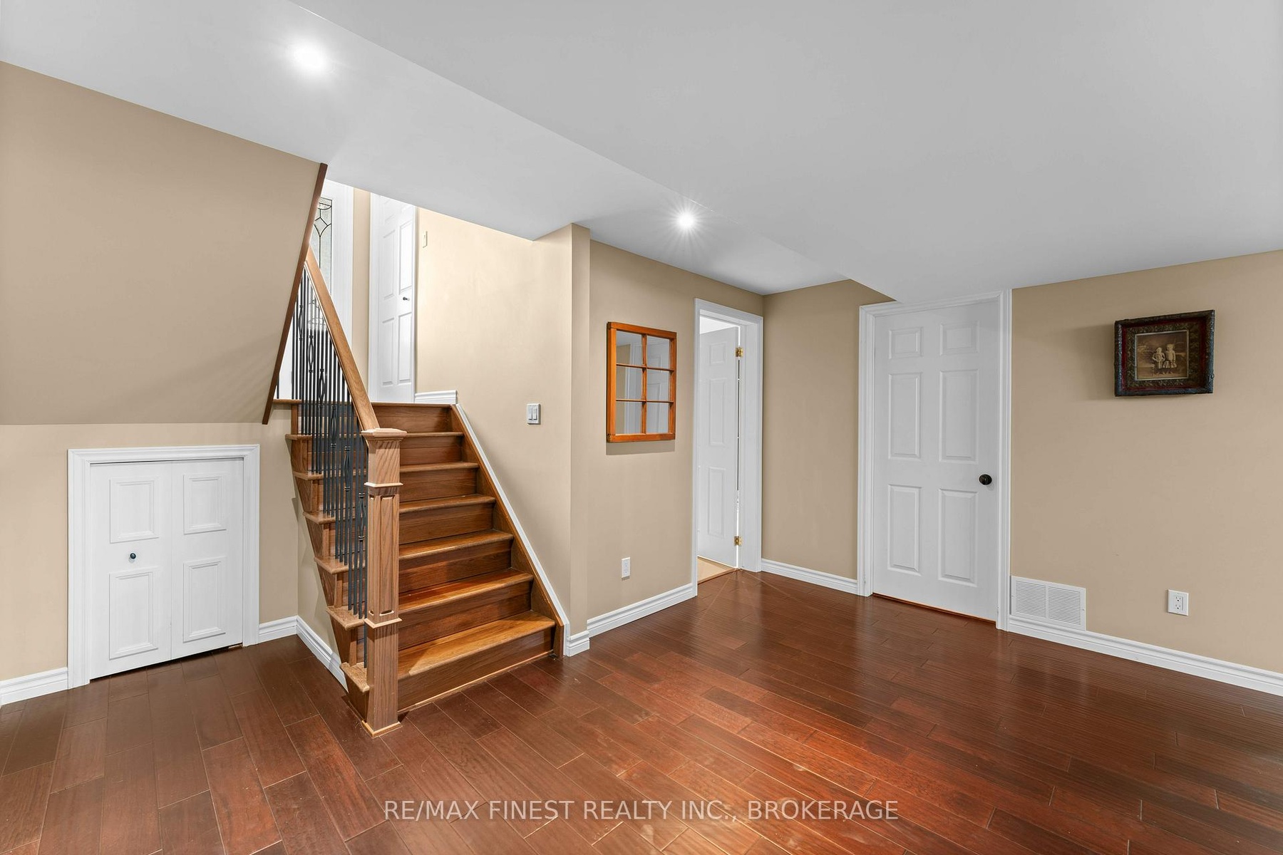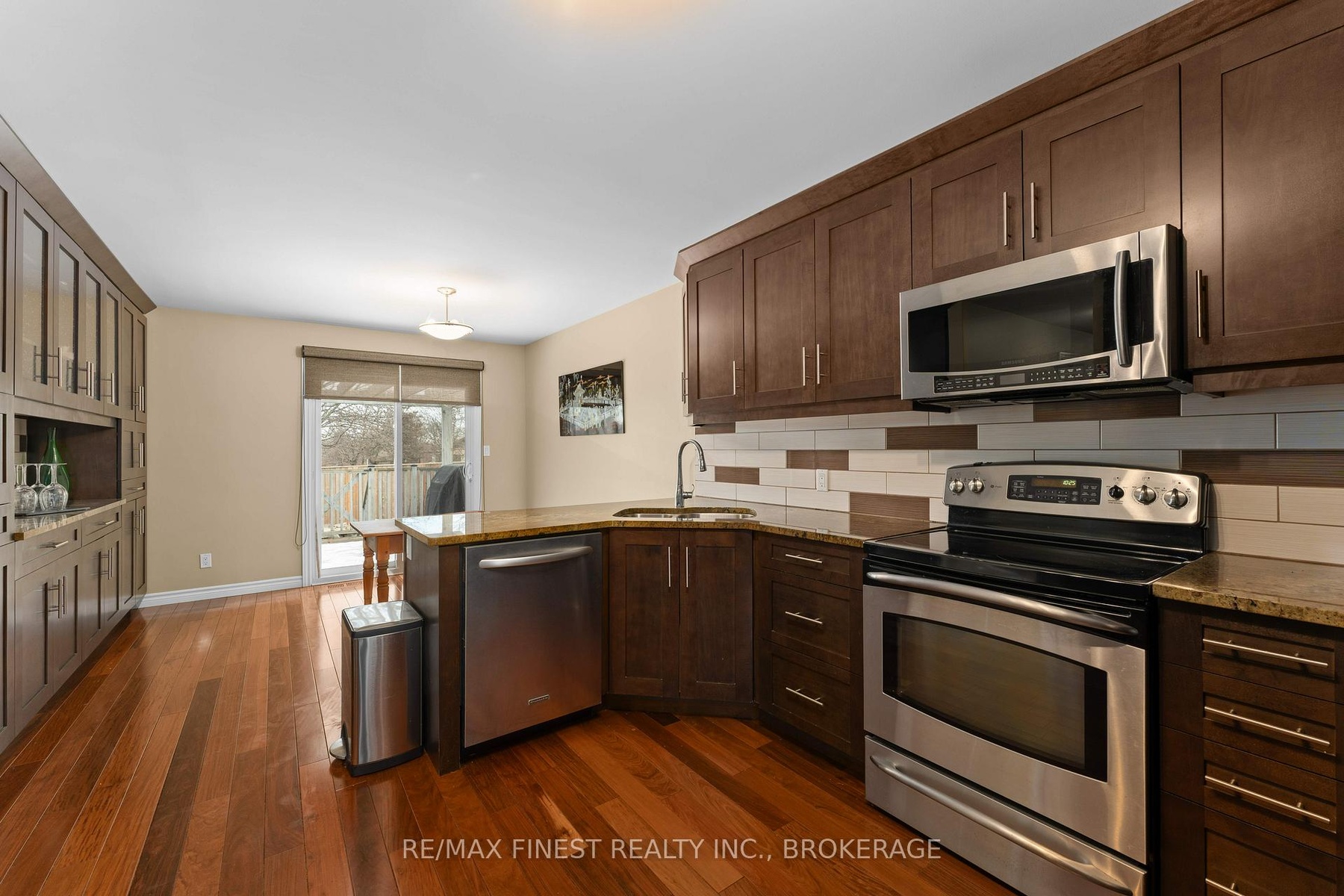 Stunning East End Family Home with Premium Upgrades! Welcome to this exceptional 3-bedroom, 3full bath, East End family home. Perfectly situated on a desirable pie-shaped lot and offering a rare combination of luxury upgrades, thoughtful design, and impeccable craftsmanship. Step inside to discover a beautifully updated interior featuring pristine Brazilian hardwood flooring throughout the upper level, staircase, and trim, complemented by matching hardwood floor registers that showcase the meticulous attention to detail found throughout the home. Custom precision-fit built-in bookshelves add both elegance and functionality across multiple living spaces. At the heart of the home is a custom-designed kitchen featuring granite countertops throughout, blending timeless style with durability for everyday living and entertaining. Upstairs, the spa-inspired main bathroom is highlighted by a stunning cast iron clawfoot bathtub, creating the perfect retreat for relaxation. The lower level is designed for entertaining, featuring a custom wet bar and a fully sound proofed entertainment room complete with a built-in Bowers & Wilkins surround sound system, delivering a true home theatre experience. With a Beautifully maintained interior, the exterior boasts beautifully maintained gardens throughout the property. A wood veranda and deck with a gas barbecue and gas fire pit are perfect for summer entertaining. This home has been meticulously maintained with no detail overlooked, showcasing superior craftsmanship and pride of ownership throughout. A rare opportunity to own a move-in-ready, fully upgraded East End home designed for comfortable family living and effortless entertaining.