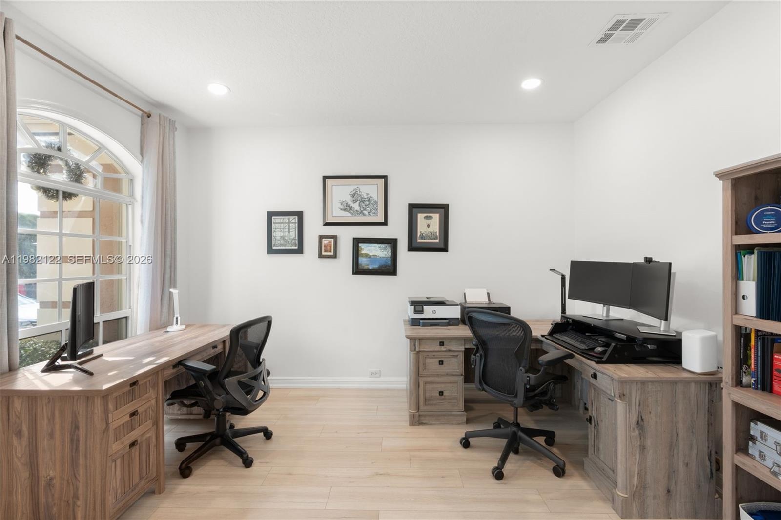 Experience elevated South Florida living in the prestigious Water’s Edge Estates of Parkland, ideally located near top-rated A+ schools, parks, dining, and shopping while offering a low HOA of just $650 per quarter. This beautifully renovated 4-bedroom, 3.5-bath residence with an oversized office offers 3,372 sq ft of thoughtfully designed living space with elegant upgrades throughout. The reimagined chef’s kitchen features quartz countertops, JennAir refrigerator, and induction cooktop, seamlessly flowing into spacious living and dining areas highlighted by new LVP flooring, crown molding, upgraded baseboards, and fresh interior paint. Bathrooms have been tastefully renovated, including a luxurious primary suite retreat with spa-inspired bath and oversized bedroom designed as a private sanctuary. Large sliding doors open to a serene outdoor setting with a resort-style pool overlooking tranquil lake views, creating the perfect backdrop for entertaining or relaxing. Major upgrades include Trane HVAC (2024), pool heater (2024), water heater (2025), PGT hurricane-impact sliding doors (2025), rear roof replacement (2026), digital irrigation system (2024), and numerous interior improvements. This meticulously maintained home offers the rare opportunity to own a move-in-ready luxury property in one of Parkland’s most desirable communities, blending comfort, quality craftsmanship, and refined South Florida lifestyle living.