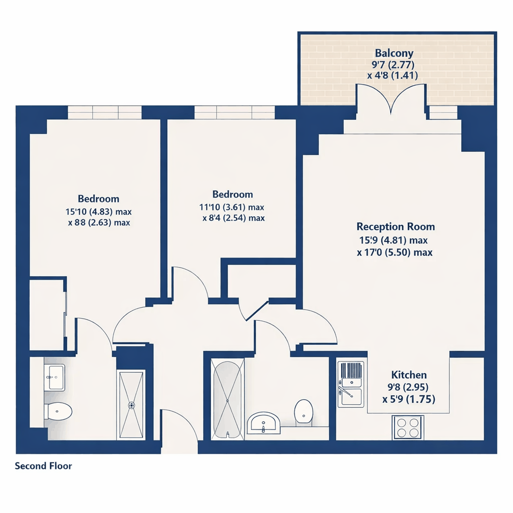 The property offers two well-proportioned bedrooms and two stylish bathrooms, including a principal suite designed to provide comfort and privacy. The balance of space and functionality makes this home ideally suited for professionals, investors or those seeking refined London living.