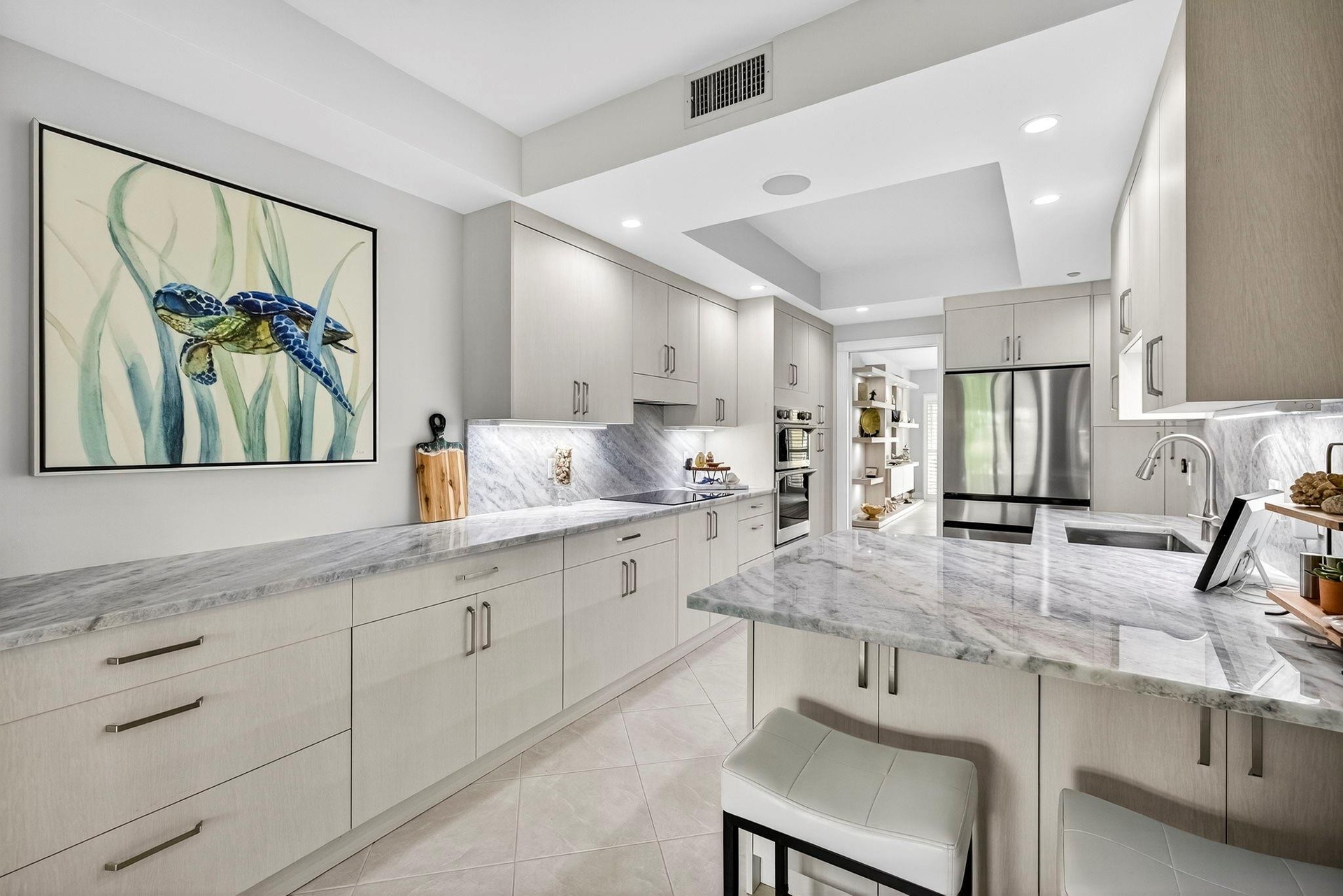 Welcome to The Mediterranea! Luxury living on the prestigious Hillsboro Mile. Be encapsulated by this coastal modern inspired 2 bed, 2.5 bath condo. Open floor plan with lots of natural lighting boasting over 2,100 sqft. of elegant living space. Bonus room, perfect for an office or possible third bedroom. This unit has its own private elevator that opens directly to your front door. Newly renovated coastal themed kitchen with stainless steel appliances. The open layout flows seamlessly to your large balcony that centrally overlooks the pool, perfect for relaxing or entertaining. Master suite features a spa-like bathroom with a Roman tub & ample closet space. Indulge in resort-style amenities featuring a pool, spa, waterfalls, fitness center, private beach access and boat dockage available.