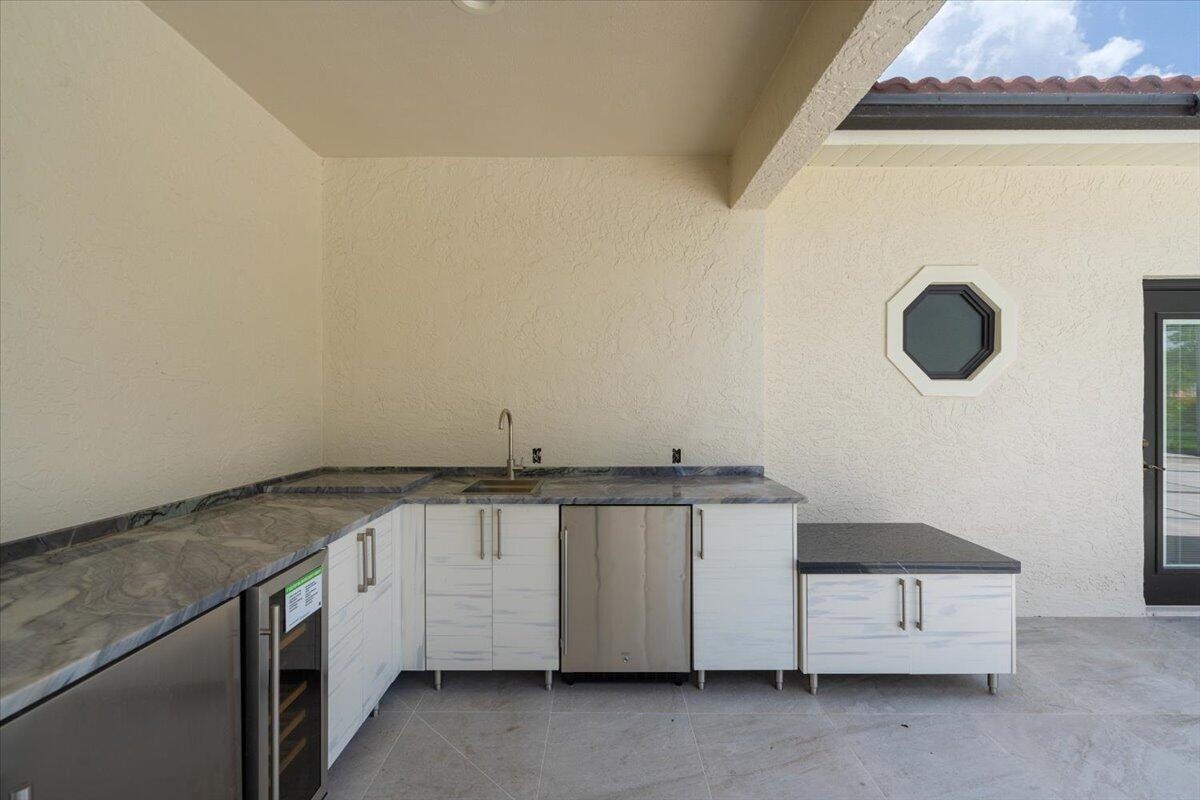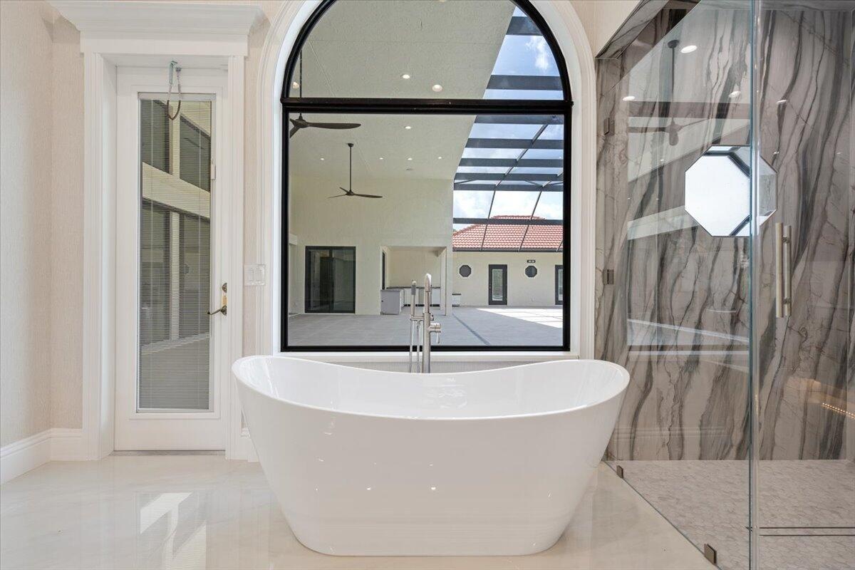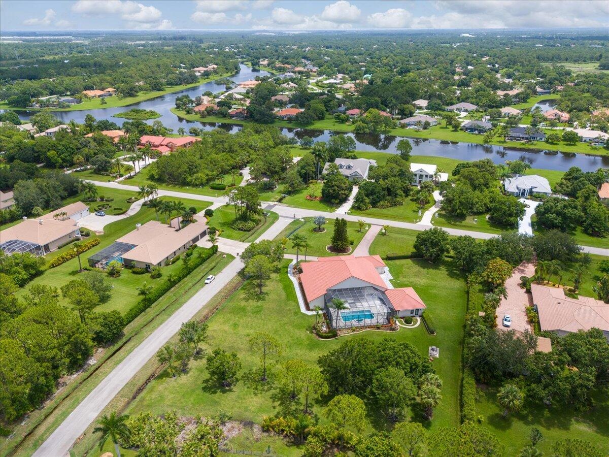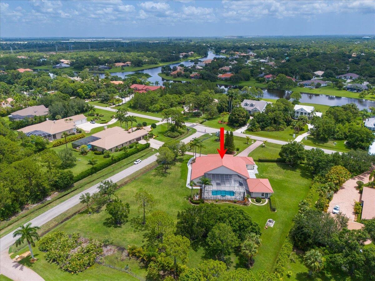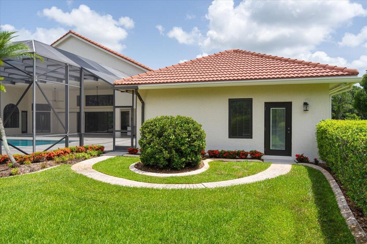 Exquisite Estate home with unrivaled quality finishes re-done to perfection! This home located in Manned gated community of PGA Village. With a total of 5 BR's, 4 BA's, Guest house, large screen enclosed pool & fabulous corner lot on 1.76 acres. Features CBS construction, Hurricane windows & doors, barrel tile roof (2018) plus 3 CG w/ tile flooring. Gorgeous porcelain floors, stunning featured wall w/ fireplace & TV soaring ceilings in spacious Great Room ideal for entertaining! Gourmet kitchen w/ LG Island, breakfast bar & storage, custom cabinetry, Jennair wall oven, Induction cooktop, pot filler, panel refrigerator, pantry, custom hood, kitchen nook dining with coffee bar right off laundry room. Grand Master suite with exceptional custom closet. Master Bath feels like a SPA! Master Bath boasts soaking tub, huge shower with designer touches, auto lighting when entering bathroom & dual sinks. Front Room with natural lighting perfect for office space or Den. Split floor plan & all bathrooms are sleek, modern & beautiful. Wonderful Guest House offers 2 Bedroom en-suites with full baths. Coffee bar area & outside private patio (51 x 17). Enter from screen enclose lanai so guests can enjoy the luxury re-done pool time ANYTIME they want. Guests will not want to leave! Tropical setting with large yard offers beautiful landscaping! Home has 3 A/C units, New drain field & septic tank. City water with Well for the sprinklers. Great Room offers cocktail bar with cooler. This home has top quality finishes throughout and a must see! PGA Village has low HOA fee's, no mediatory golf membership but for those who love golf enjoy 3 Champions golf courses open to the public or semi-private membership available.