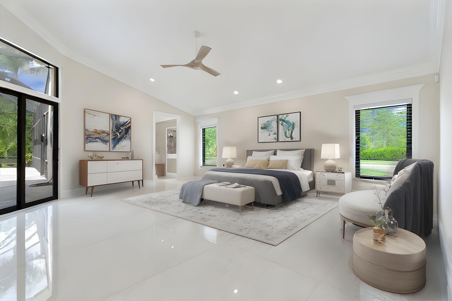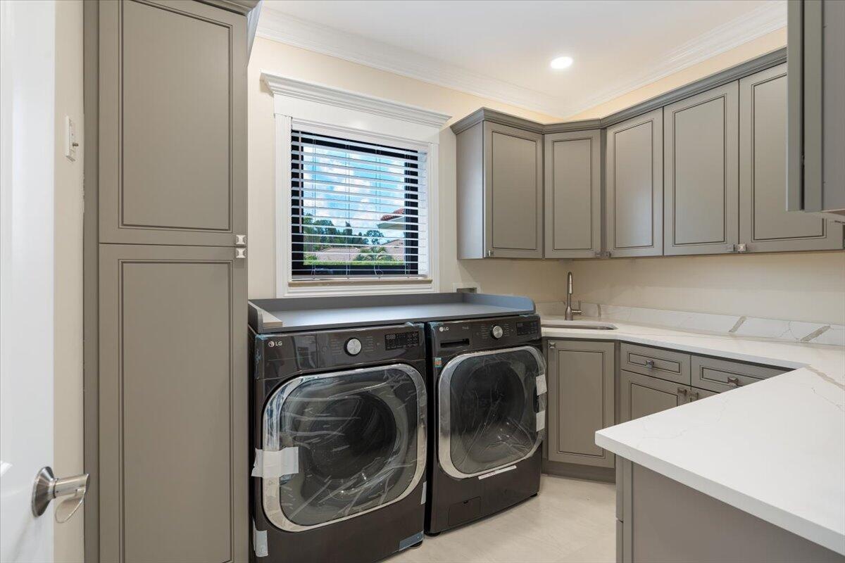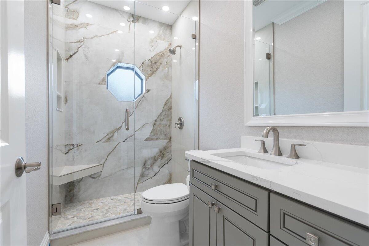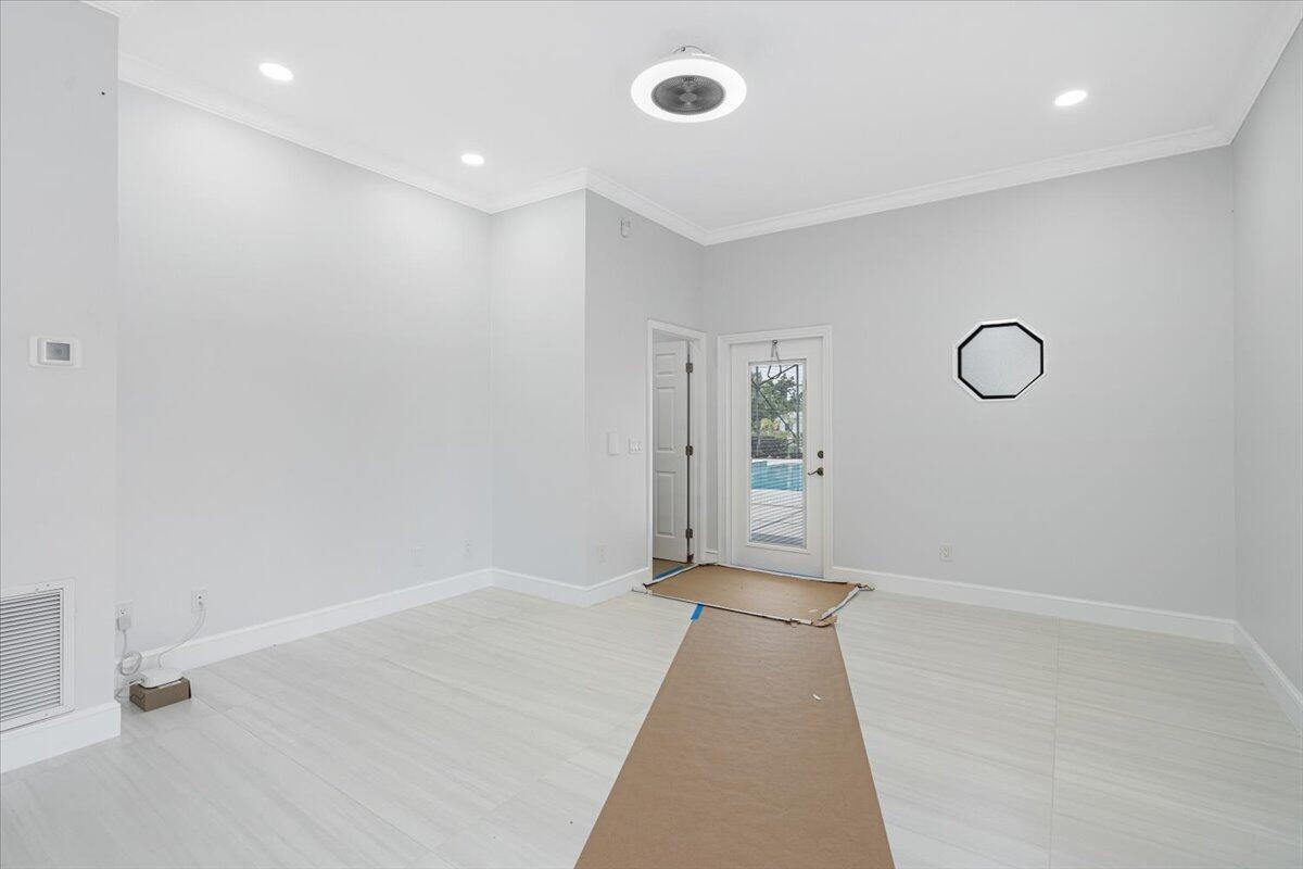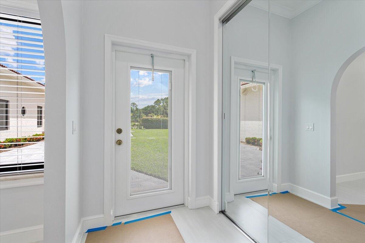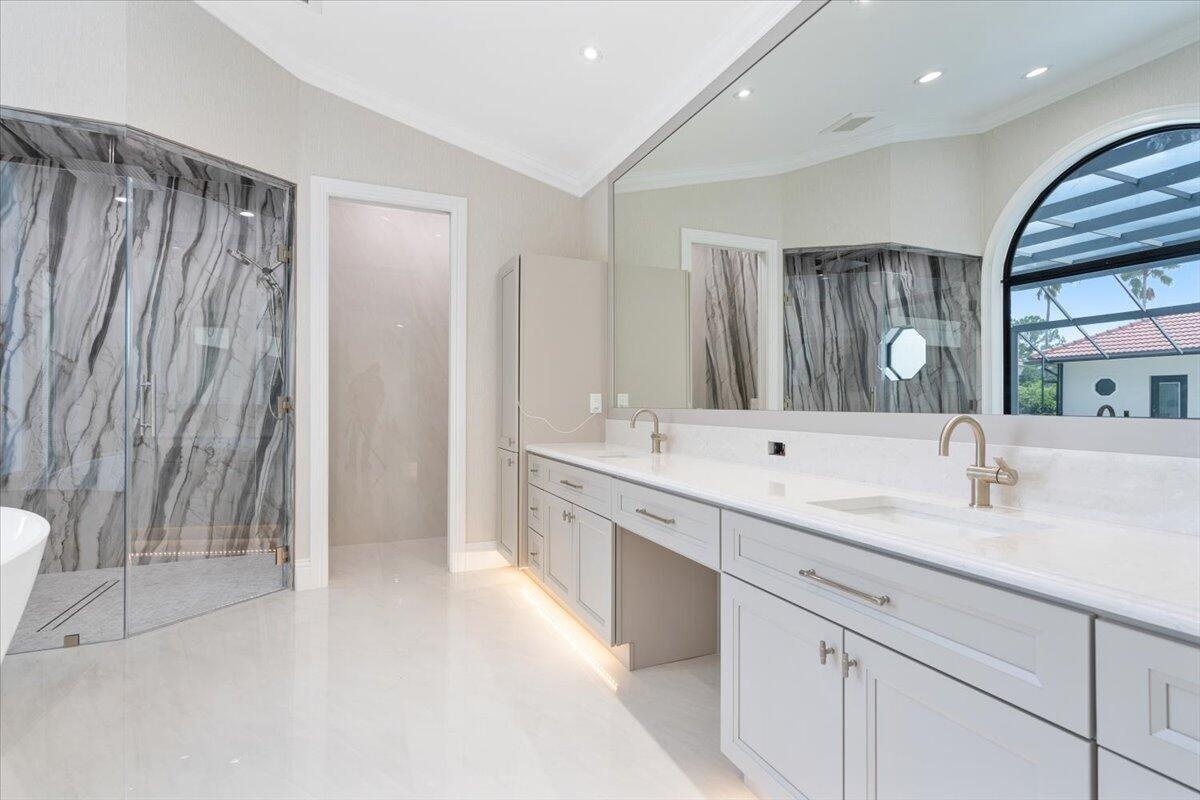 Exquisite Estate home with unrivaled quality finishes re-done to perfection! This home located in Manned gated community of PGA Village. With a total of 5 BR's, 4 BA's, Guest house, large screen enclosed pool & fabulous corner lot on 1.76 acres. Features CBS construction, Hurricane windows & doors, barrel tile roof (2018) plus 3 CG w/ tile flooring. Gorgeous porcelain floors, stunning featured wall w/ fireplace & TV soaring ceilings in spacious Great Room ideal for entertaining! Gourmet kitchen w/ LG Island, breakfast bar & storage, custom cabinetry, Jennair wall oven, Induction cooktop, pot filler, panel refrigerator, pantry, custom hood, kitchen nook dining with coffee bar right off laundry room. Grand Master suite with exceptional custom closet. Master Bath feels like a SPA! Master Bath boasts soaking tub, huge shower with designer touches, auto lighting when entering bathroom & dual sinks. Front Room with natural lighting perfect for office space or Den. Split floor plan & all bathrooms are sleek, modern & beautiful. Wonderful Guest House offers 2 Bedroom en-suites with full baths. Coffee bar area & outside private patio (51 x 17). Enter from screen enclose lanai so guests can enjoy the luxury re-done pool time ANYTIME they want. Guests will not want to leave! Tropical setting with large yard offers beautiful landscaping! Home has 3 A/C units, New drain field & septic tank. City water with Well for the sprinklers. Great Room offers cocktail bar with cooler. This home has top quality finishes throughout and a must see! PGA Village has low HOA fee's, no mediatory golf membership but for those who love golf enjoy 3 Champions golf courses open to the public or semi-private membership available.