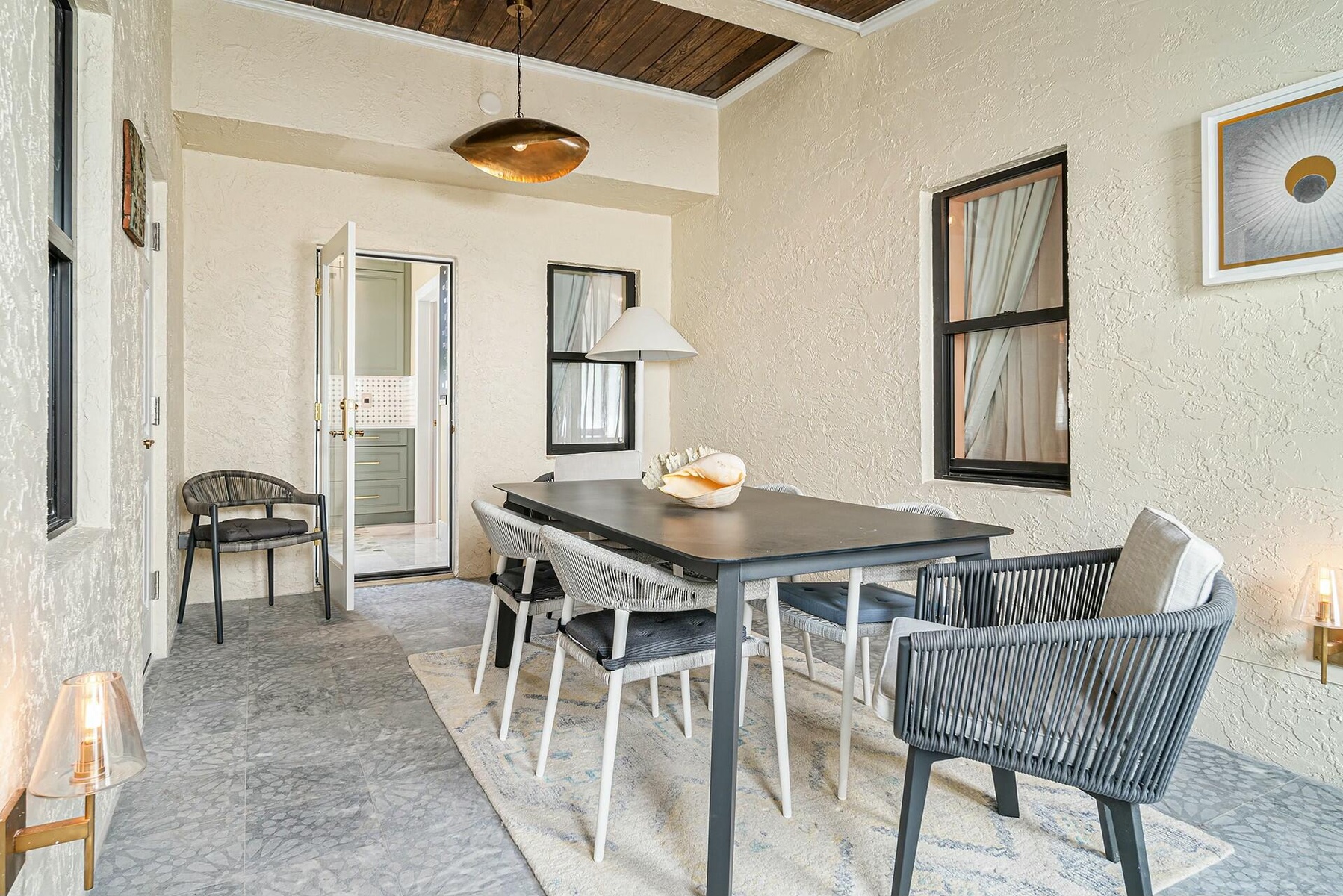 SHORT TERM ONLY; MINIMUM STAY 7 DAYS. Luxury magnified. Breath taking remodel of historic home a block from the Waterway! Mosaic marble tile lines the exterior walkway and breakfast room. Natural gas grill. Stunning half bath on the main floor. First ensuite includes brushed gold fixtures with backlit mirror. ZLINE appliances include professional natural gas range, wine cooler & dishwasher. Sublime polished marble floor and backsplash, quartz countertops, custom wood cabinets to the 12' ceiling. Plenty of extra dining space in the relaxed breakfast room with wood ceiling. Adjacent cozy ensuite for guests. Rooftop entertaining space. All this in THE destination for travelers from around the world! It's time: leave the stress, come decompress, & LOVE WHERE YOU LIVE! the Rooftop; experience quirt intimate moments, or fun entertainment with friends. It's time.... leave the stress, come decompress.... LOVE WHERE YOU LIVE!