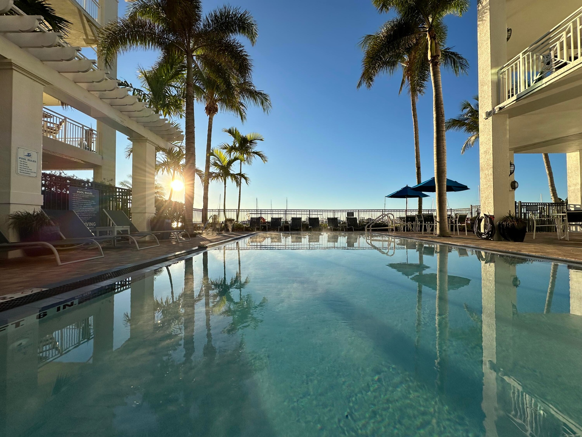 Discover luxury at The Harborage Yacht Club & Condos in this fully furnished, turnkey 2-bedroom, 2-bath waterfront condo, meticulously updated with modern charm and upgrades. Enjoy breathtaking sunrise views from the master bed through a wall of glass overlooking the marina and Pool. Thoughtful built-ins in all closets, spacious walk-ins, impact windows, luxury slate flooring, stone countertops, and stainless-steel appliances add to the appeal. The secure gated building offers covered parking and elevator access. Ideally situated next to the amenities including a vibrant community, clubhouse with fitness center, sauna, steam room, billiards, two pools, hot tub, poolside café, on-site dining at Tidehouse and Latitude 26, and boat slips for vessels up to 100 feet. Just bring your suitcase