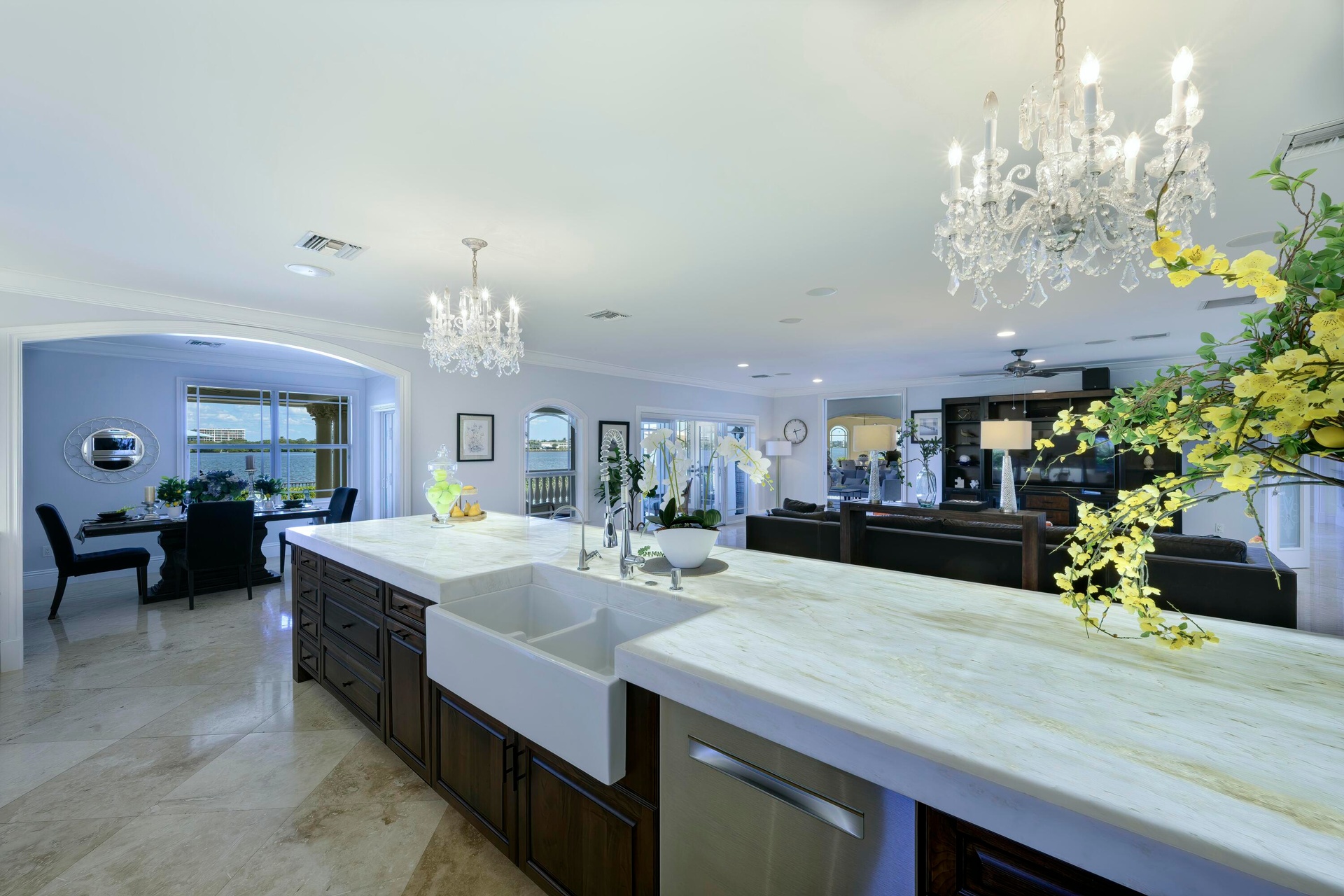 Awake to breathtaking sunrises while enjoying sun-bathed living spaces offered by this waterfront estate with coveted unobstructed East and SE vistas across wide water affording unparalleled security and privacy. Merely 15 min. from downtown West Palm and Palm Beach this residence is an entertainers delight. Highlights include a two story great room, an expansive kitchen with a 17 ft quartzite stone island, dining room with southeastern water views, waterfront loggias, an outdoor kitchen overlooking the Intracoastal, and an ocean facing rooftop terrace. Affording rare provision for a combination of vessels, this boaters paradise offers an upgraded seawall and a 125' dock. ** 9 Duke Dr is available as a combined offering with 325' of waterfront: View listing RX-11043726 or see in person