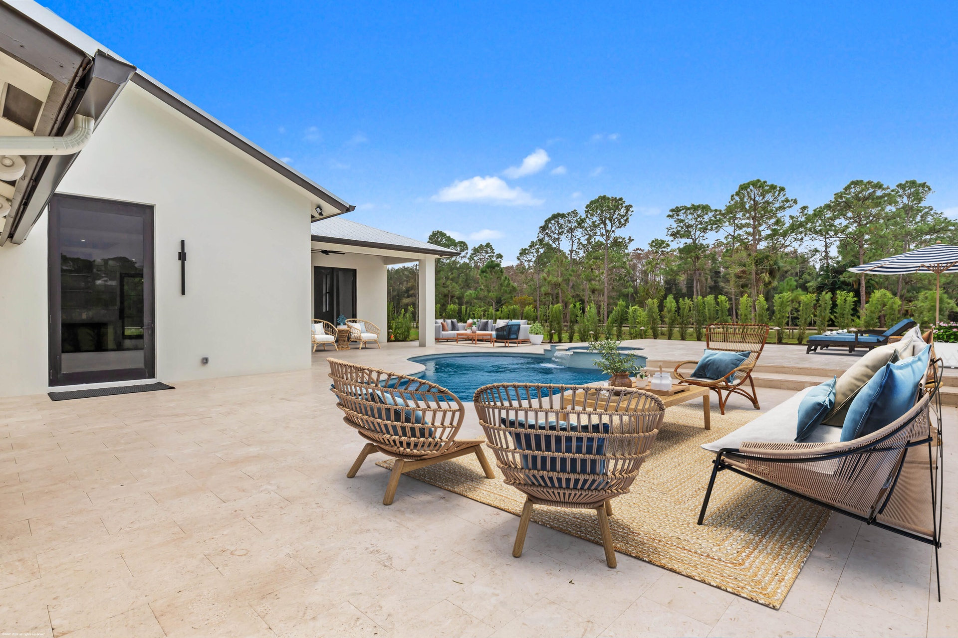 Reduced $550k! Totally renovated home from top to bottom! Perfectly situated on a cleared 5-acre lot - build your desired equestrian amenities, including a covered arena. This home boasts an open floor plan with center-island kitchen, gas cooking and quartz counter tops. The home features 4 bedrooms, 3 full baths, a large office/den, impact windows & doors, all new AC systems, reverse osmosis water treatment system and sprayed icynene insulation in the attic for energy efficiency. The pool has been refinished along with the expanded pool deck & new summer kitchen. The driveway has new entry columns and electric gate. Situated on a quiet street in this gated equestrian subdivision and close to all of Wellington's equestrian venues. Don't miss out on this great opportunity, a must see! The Seller has HOA approved plans for a 12- stall barn with 4 wash stalls, feed, tack, kitchen and storage rooms. Plans are ready to be submitted to the County for permit. (12 Stall maximum allowed per lot. Covered arenas and boarding now allowed).