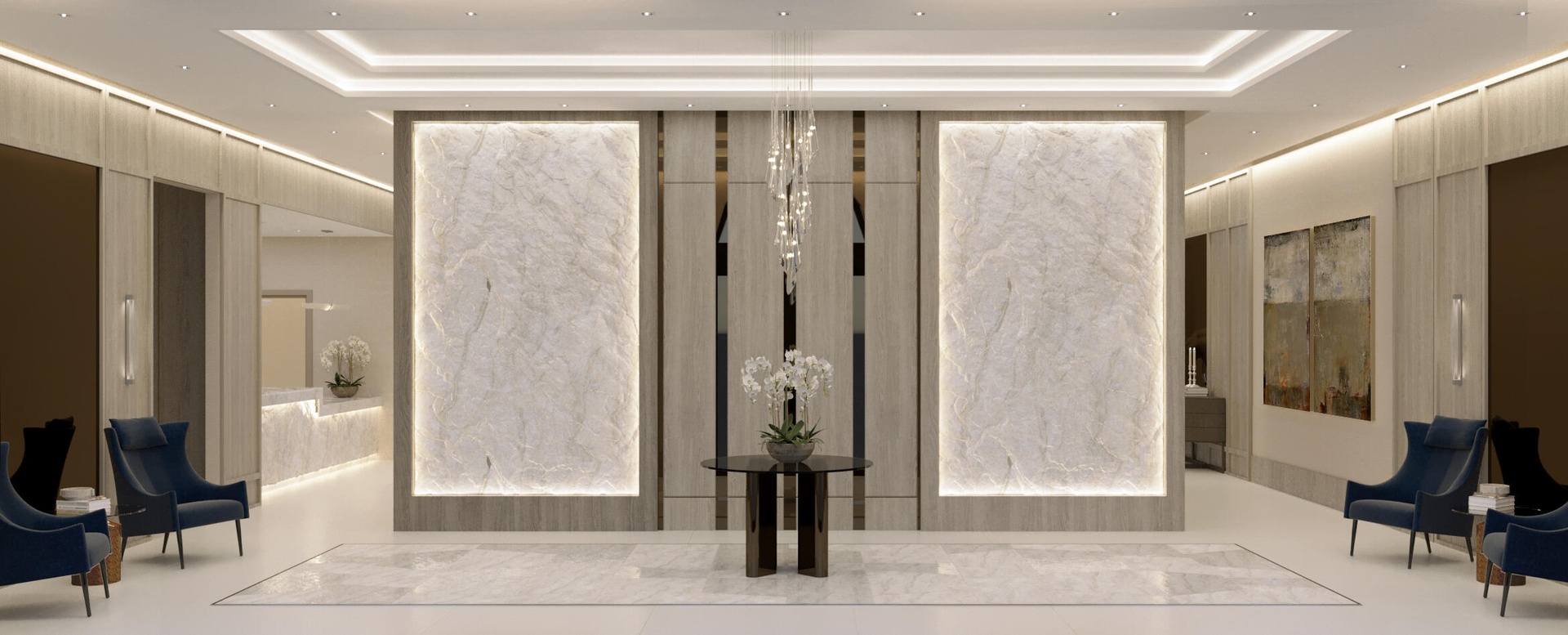 Modern townhouse with a two car private garage and elevator in the 200 East condominium in Downtown Boca Raton.