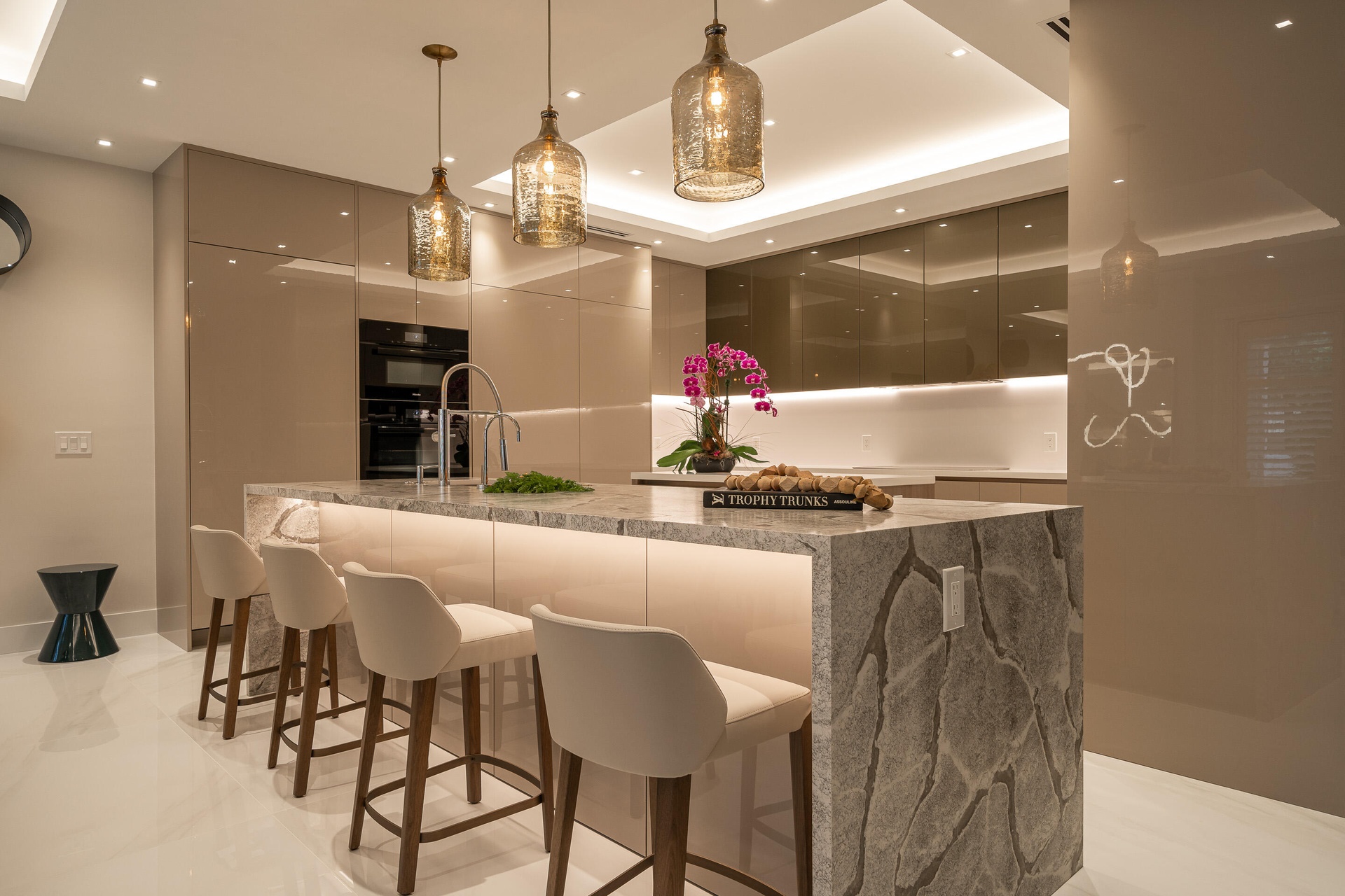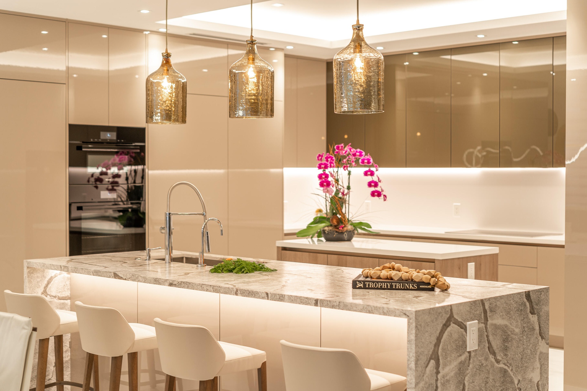 Double kitchen island, 1 with waterfall edge