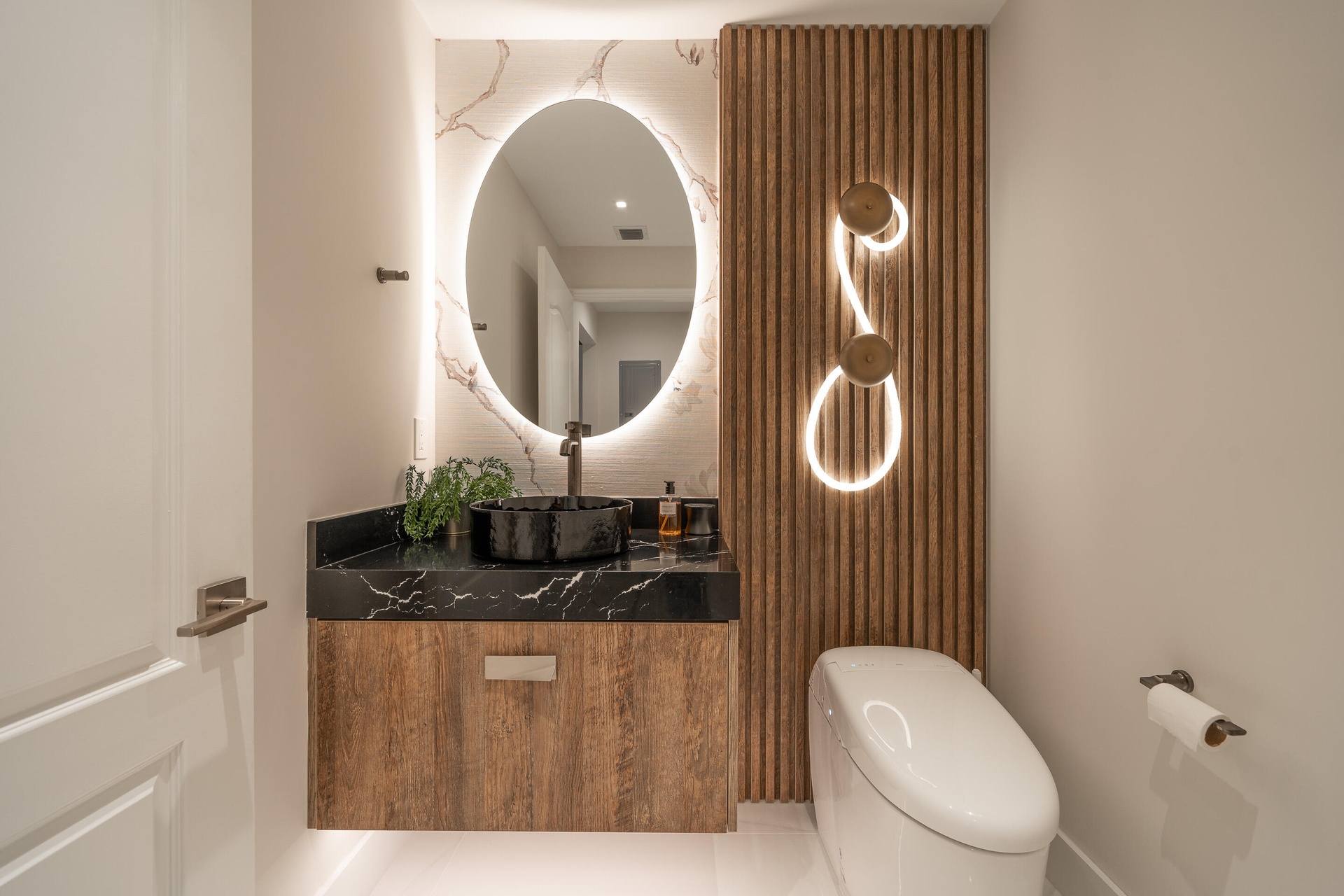 SEE MORE Craftsmanship details from shower fixtures and custom tile work to hand metalled copper sink and wallpaper designs. The Primary bedroom features 10 ft ceilings and an oversized bathroom with dual vanities, glass shower, custom built-ins, tub and porcelain tile floor to ceiling design. Dual separate walk in closets and a private terrace give the feeling of a single family home with city living views. Steps away from restaurants, dining and the beaches.