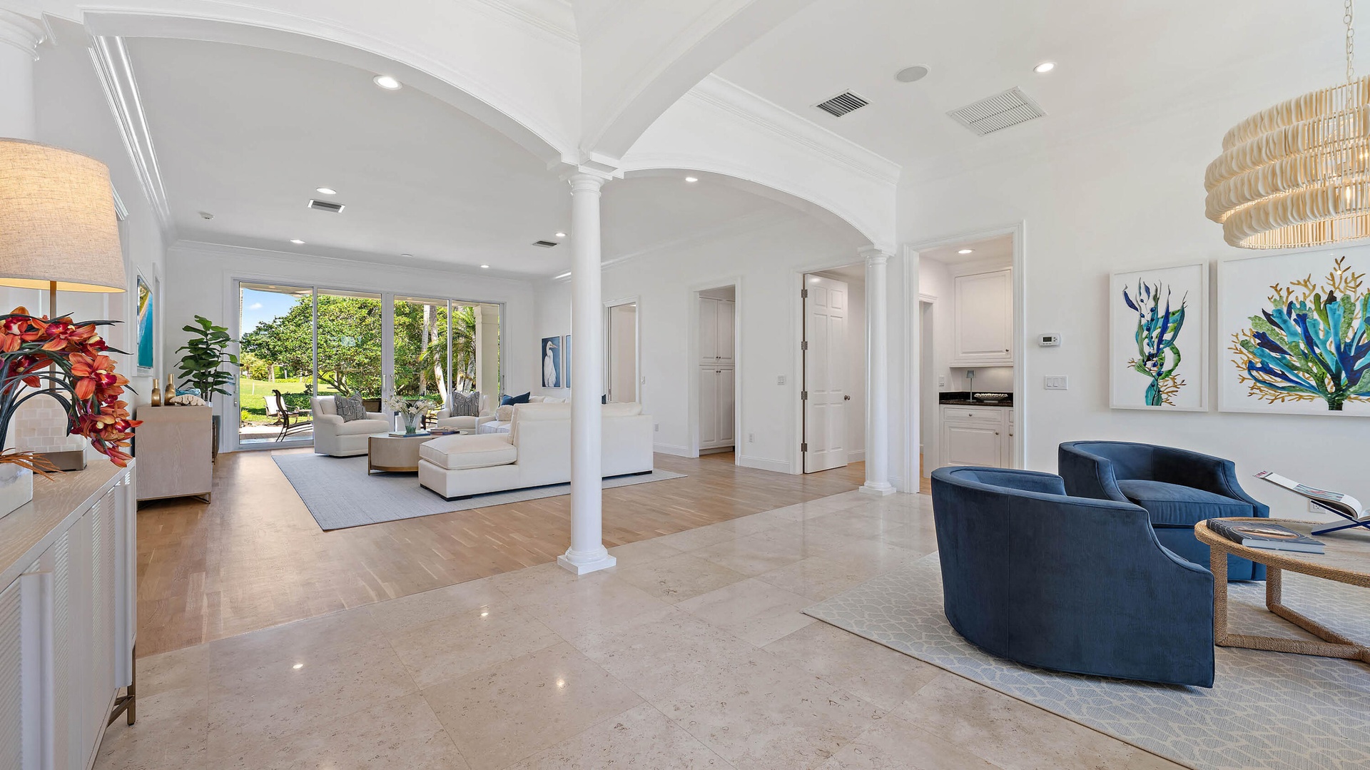 Ideally positioned along the 15th green and just across the street from the Beach Club, this beautifully renovated golf course home offers timeless design and exceptional convenience. Recently updated inside and out, the residence features a new roof, all-new finishes, and updated systems and appliances throughout. Offering 5 bedrooms, 5 baths, and 4,081 square feet under air, the home is filled with natural light and showcases tranquil fairway views through expansive windows. The thoughtful layout includes a spacious primary suite, private study, and multiple comfortable living areas designed for both everyday living and entertaining. Set on approximately 1⁄2 acre, the property also includes plans for a new pool scheduled for completion in June 2026. Offered fully furnished with all brand-new furnishings, this move-in-ready residence presents an exceptional opportunity to immediately enjoy the classic Lost Tree lifestyle.