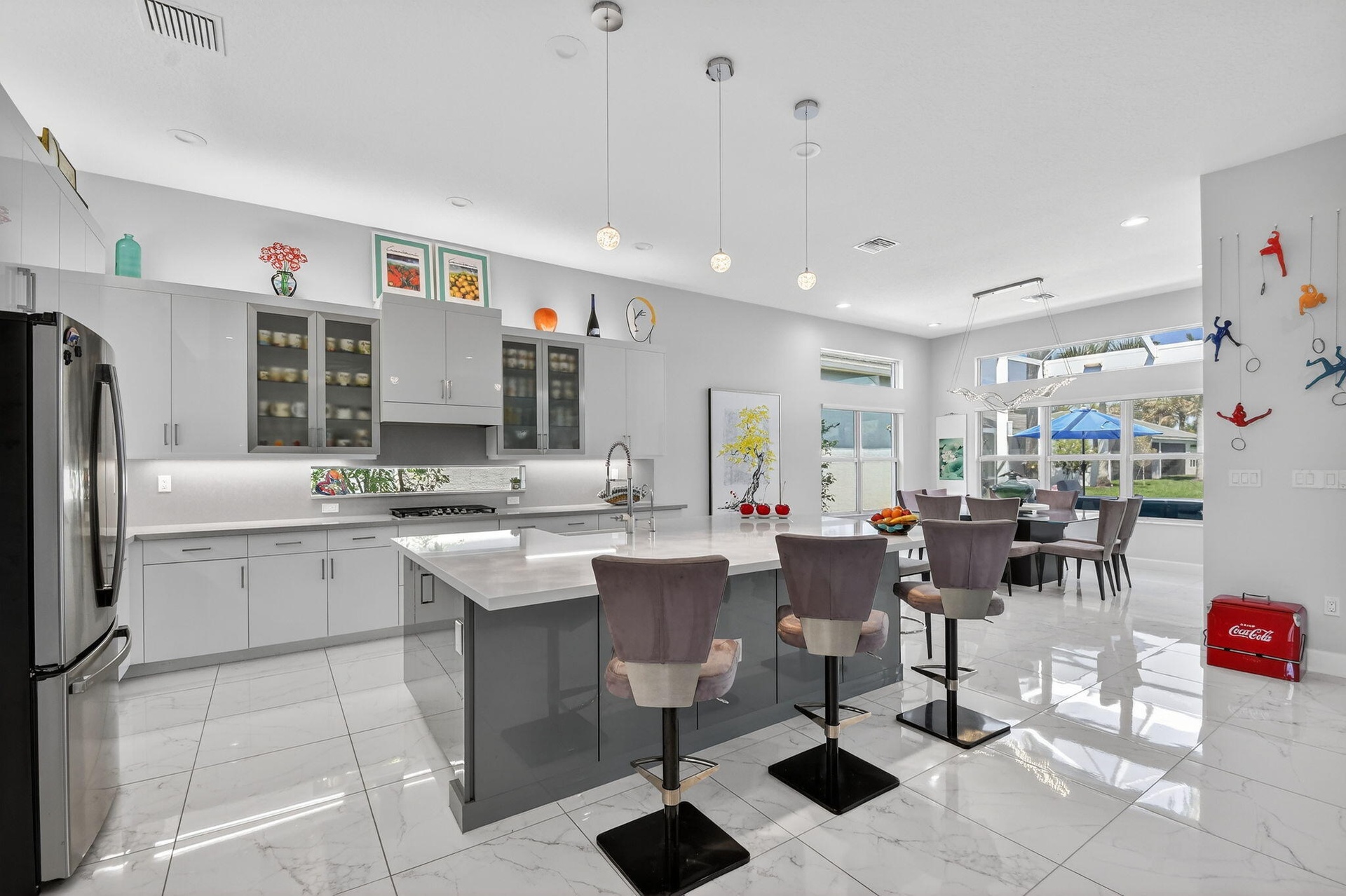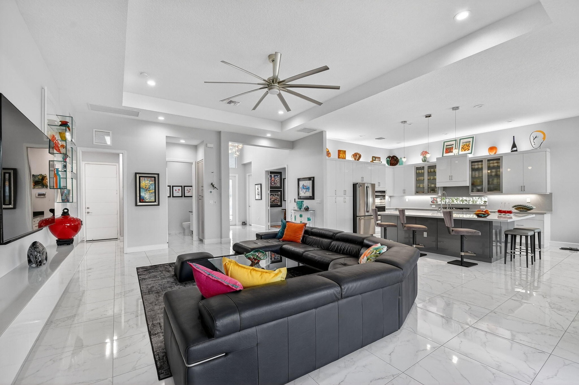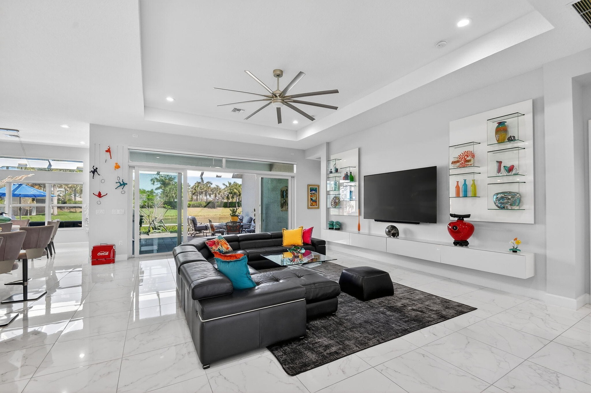 **YOUR SEARCH HAS ENDED** WHY WAIT 1 YEAR FOR YOUR DREAM HOME TO BE BUILT? THIS SPECTACULAR CONTEMPORARY 3 BEDROOM + DEN/OFFICE 3.5 BATH LAKEFRONT HOME IN VALENCIA SOUND, IS IN PRISTINE CONDITION AND WITHIN WALKING DISTANCE TO THE CLUBHOUSE W/RESTAURANT BISTRO & BAR. THIS HIGHLY UPGRADED EXPANDED JADE MODEL FEATURES A GOURMET KITCHEN W/UPGRADED CABINETS AND TOP END APPLIANCES. IMPACT WINDOWS, SUMMER KITCHEN, WHOLE HOUSE GENERATOR FOR ADDED SAFETY. SITED ON A BEAUTIFUL NORTH/SOUTH FACING LOT. JUST MINUTES FROM THE BEST SHOPPING, DINING AND ENTERTAINMENT W/ACCESS TO I 95 AND THE FLORIDA TPKE. FOR EASY COMMUTE TO THE BUSINESS CENTERS OF WEST PALM BEACH, BROWARD AND MIAMI DADE. ALL INFO, SQ. FOOTAGE AND MEASUREMENTS DEEMED RELIABLE, BUT NOT GUARANTEED BY SELLER, BROKER OR AGENT. A MUST SEE! Welcome to Valencia Sound, a premier luxury lifestyle community designed for those who appreciate elegance, recreation, and vibrant social living. At the heart of the community is an impressive 38,000-square-foot clubhouse, offering an exceptional collection of amenities and gathering spaces that create a true resort-style experience every day. Residents enjoy a full-service restaurant with both indoor and outdoor seating, perfect for casual lunches, elegant dinners, or socializing with friends and neighbors. The clubhouse also features a poolside bar and a lively sports lounge, providing the ideal setting to relax and unwind. For entertainment and special events, Valencia Sound boasts a magnificent grand ballroom complete with a dance floor, performance stage, and dressing rooms, making it the perfect venue for live shows, concerts, and community celebrations. Additional social spaces include three dedicated card rooms, a catering kitchen for special events, a cooking studio for culinary demonstrations and classes, and a fully equipped arts and crafts center for creative pursuits. Health and wellness are a central focus at Valencia Sound. The state-of-the-art fitness center includes a wide range of facilities such as dedicated exercise studios, physical therapy rooms, a ping-pong room, steam rooms, and massage rooms, allowing residents to maintain an active and balanced lifestyle. Outdoor amenities rival those of a luxury resort. Residents can enjoy a spectacular resort-style pool, a lap pool, a resistance walking pool, a children's pool, relaxing whirlpool spas, and shaded cabanas that provide the perfect place to relax in comfort. For sports enthusiasts, Valencia Sound offers exceptional facilities including six lighted tennis courts, eleven lighted pickleball courts, and four lighted clay bocce ball courts. A fully stocked tennis pro shop is also available, providing equipment, apparel, and professional support for players of all skill levels. Valencia Sound offers an extraordinary lifestyle where luxury amenities, active recreation, and a vibrant social atmosphere come together to create one of the most desirable living experiences available.