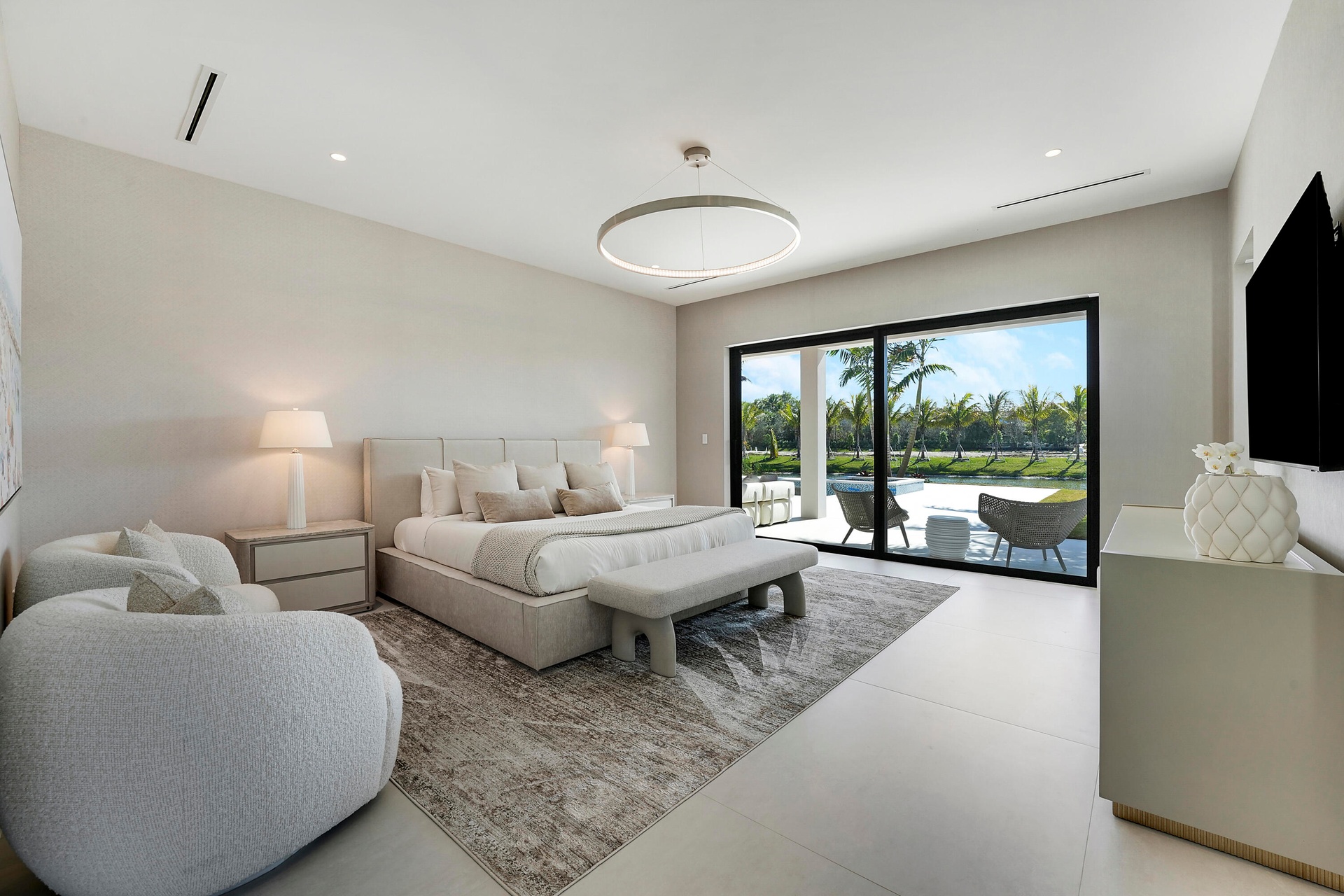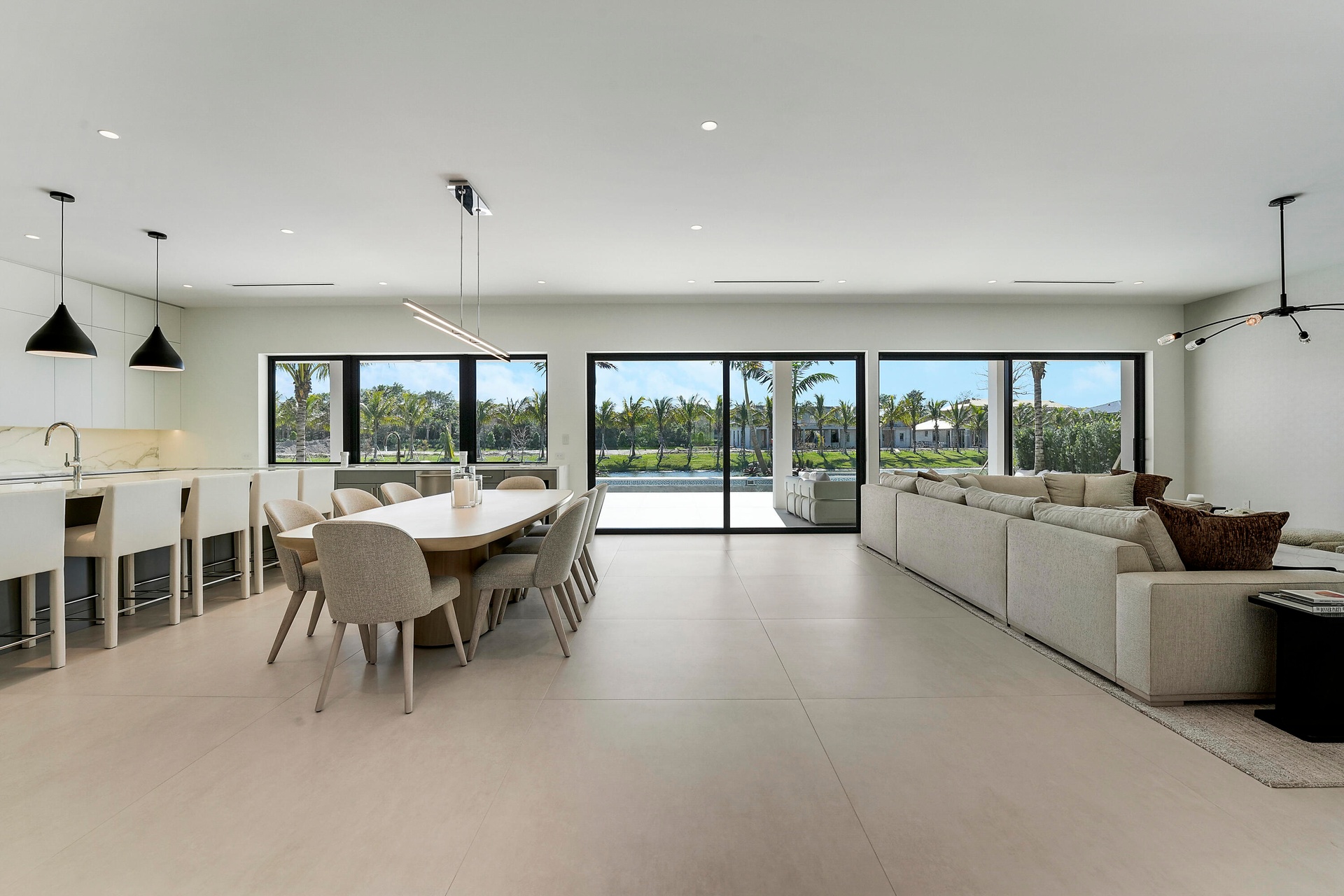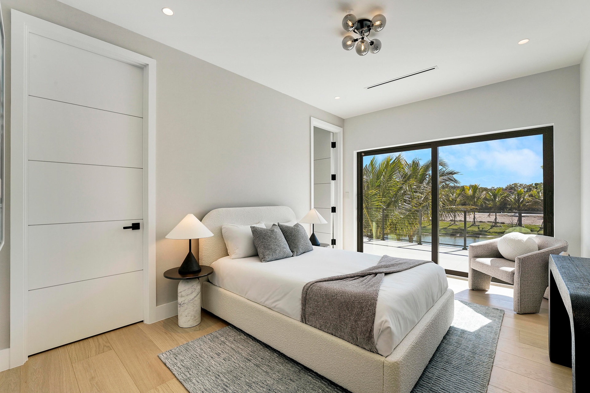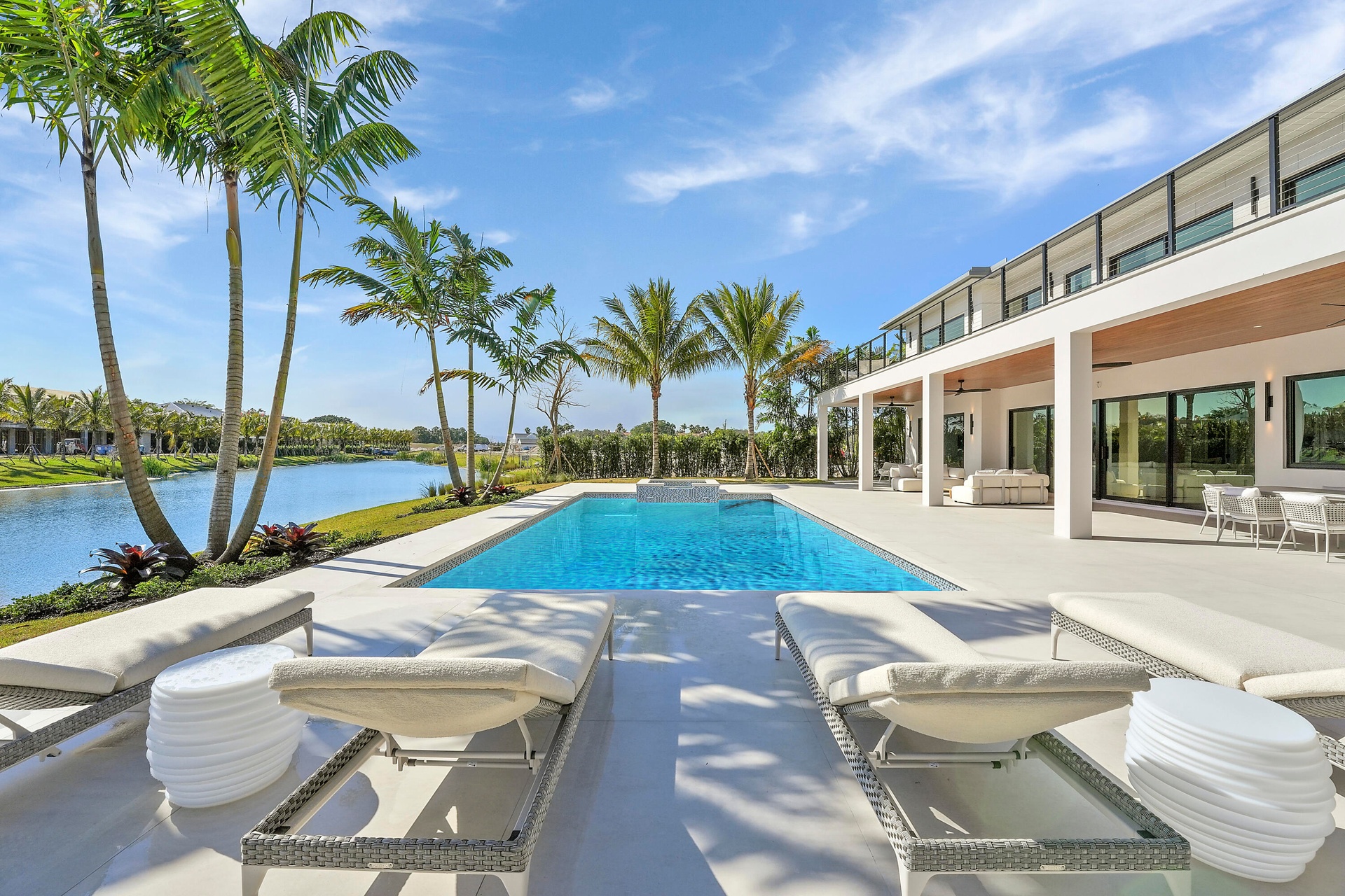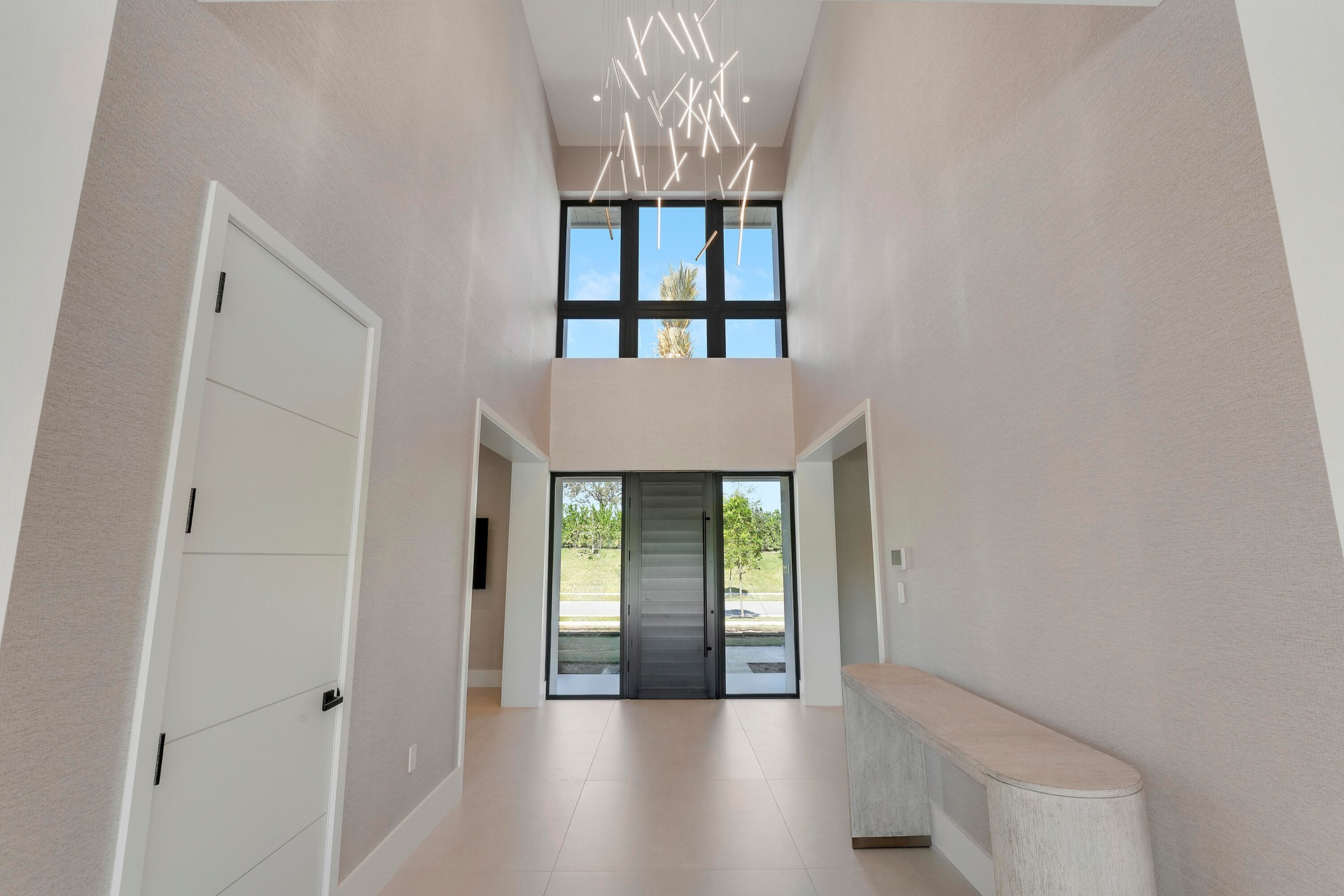 Farrell Estates at Palm Beach Polo presents an exclusive enclave of 27 bespoke residences. Lot 9 is a dramatic modern lakefront estate ideally located just 3 miles from the Winter Equestrian Festival and under 12 miles to Palm Beach International Airport. Spanning 7,492 SF, the home showcases soaring light-filled interiors, expansive porcelain floors, and walls of glass framing tranquil water views. The chef's kitchen and great room flow seamlessly to over 900 SF of covered outdoor living designed for sunset entertaining. The main level offers a private junior suite with sitting area plus a versatile flex space ideal for a gym or office. Upstairs, five ensuite bedrooms accompany a luxurious primary retreat with office or dressing room. Double laundry rooms on both levels provide exceptional functionality. A rare opportunity for modern lakefront living within Palm Beach Polo.