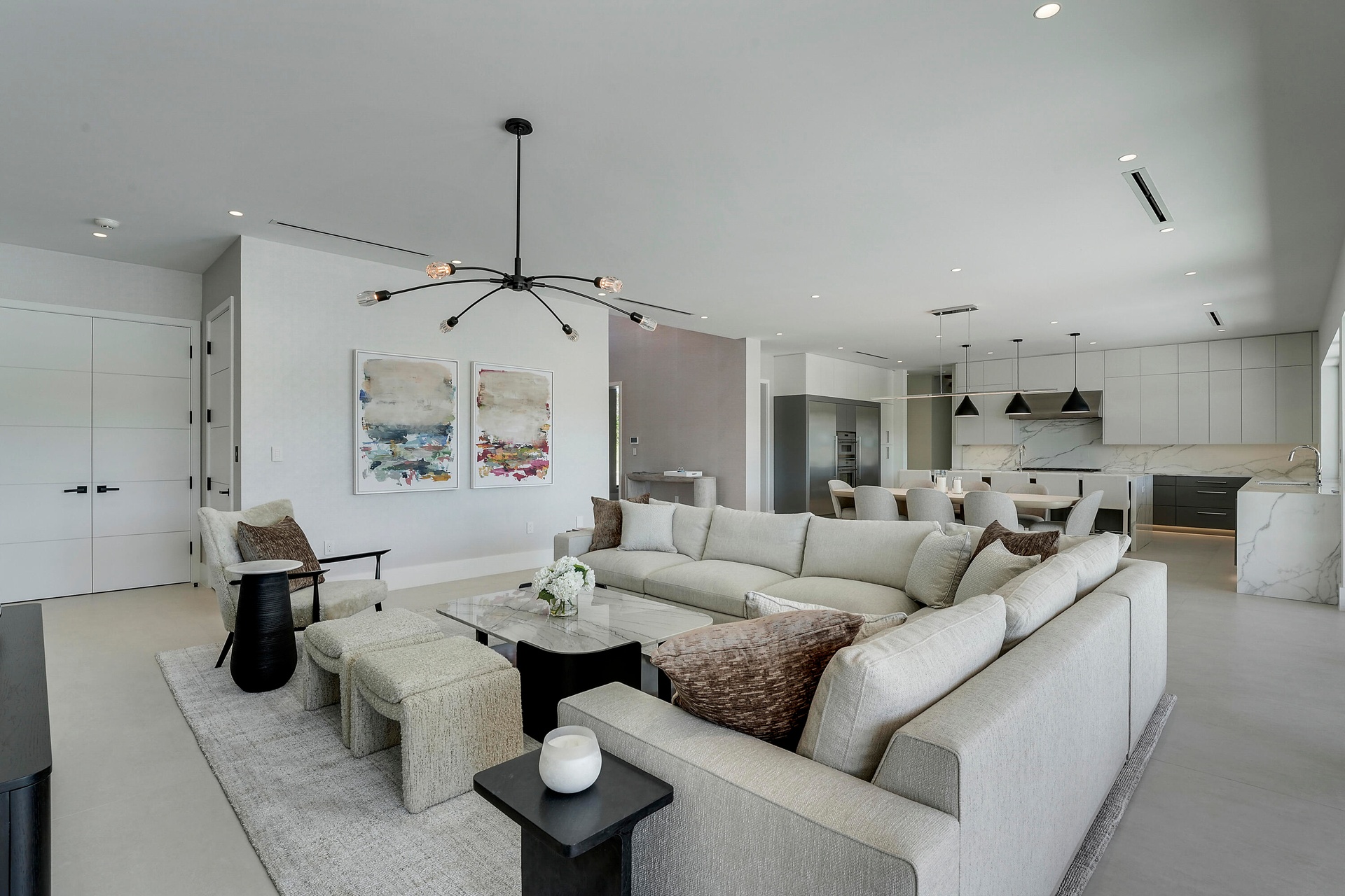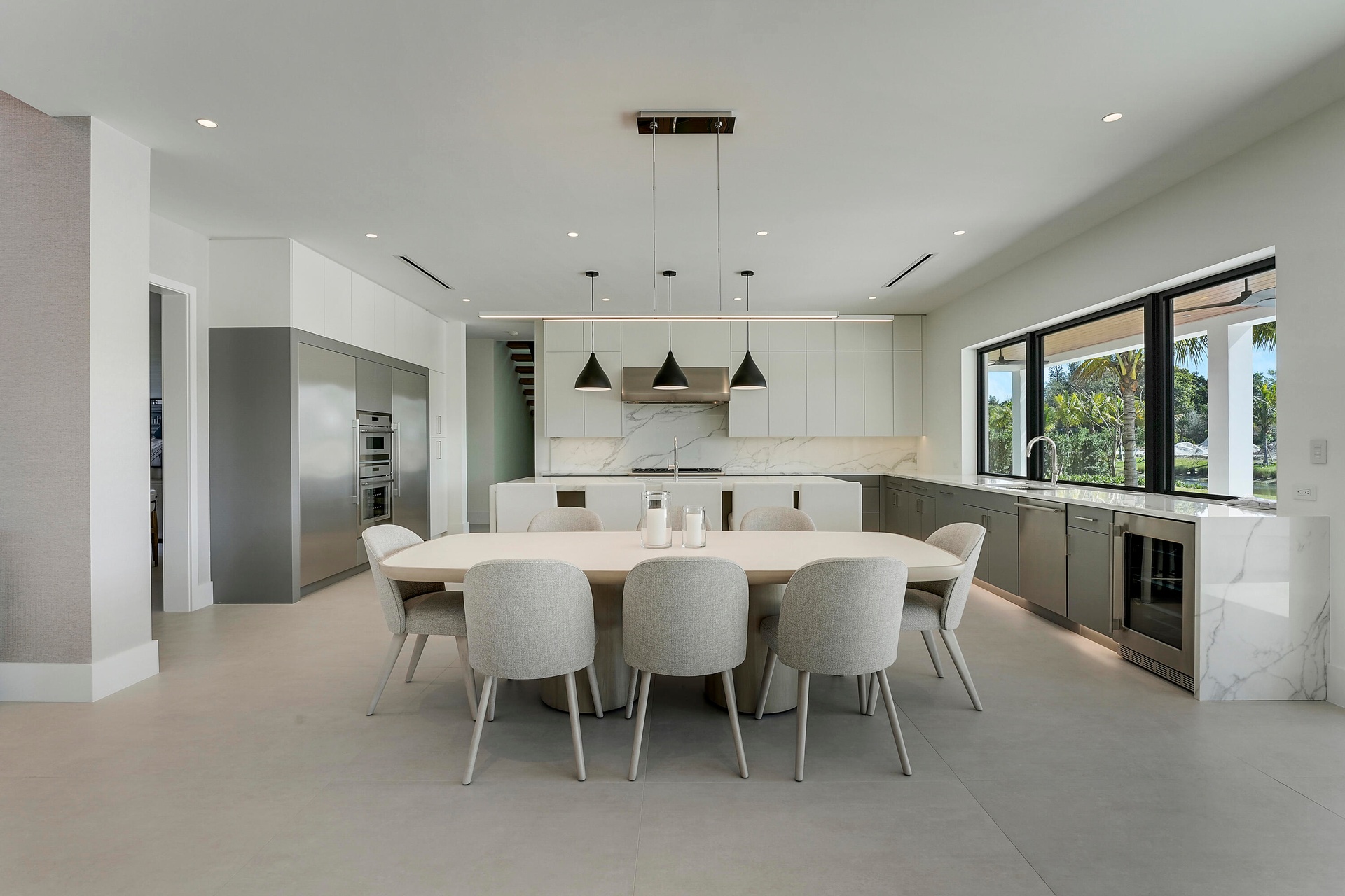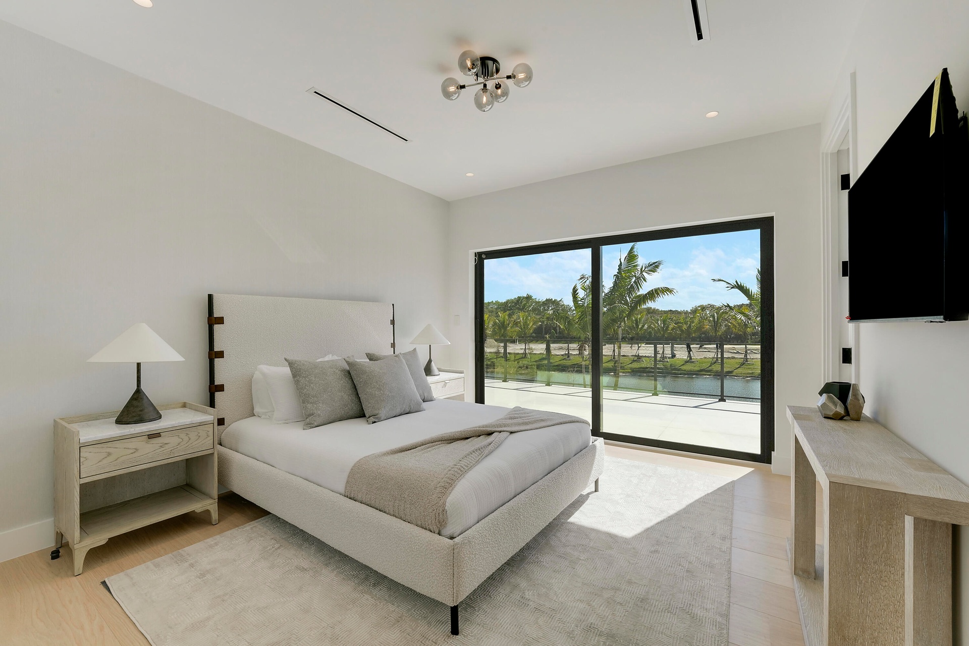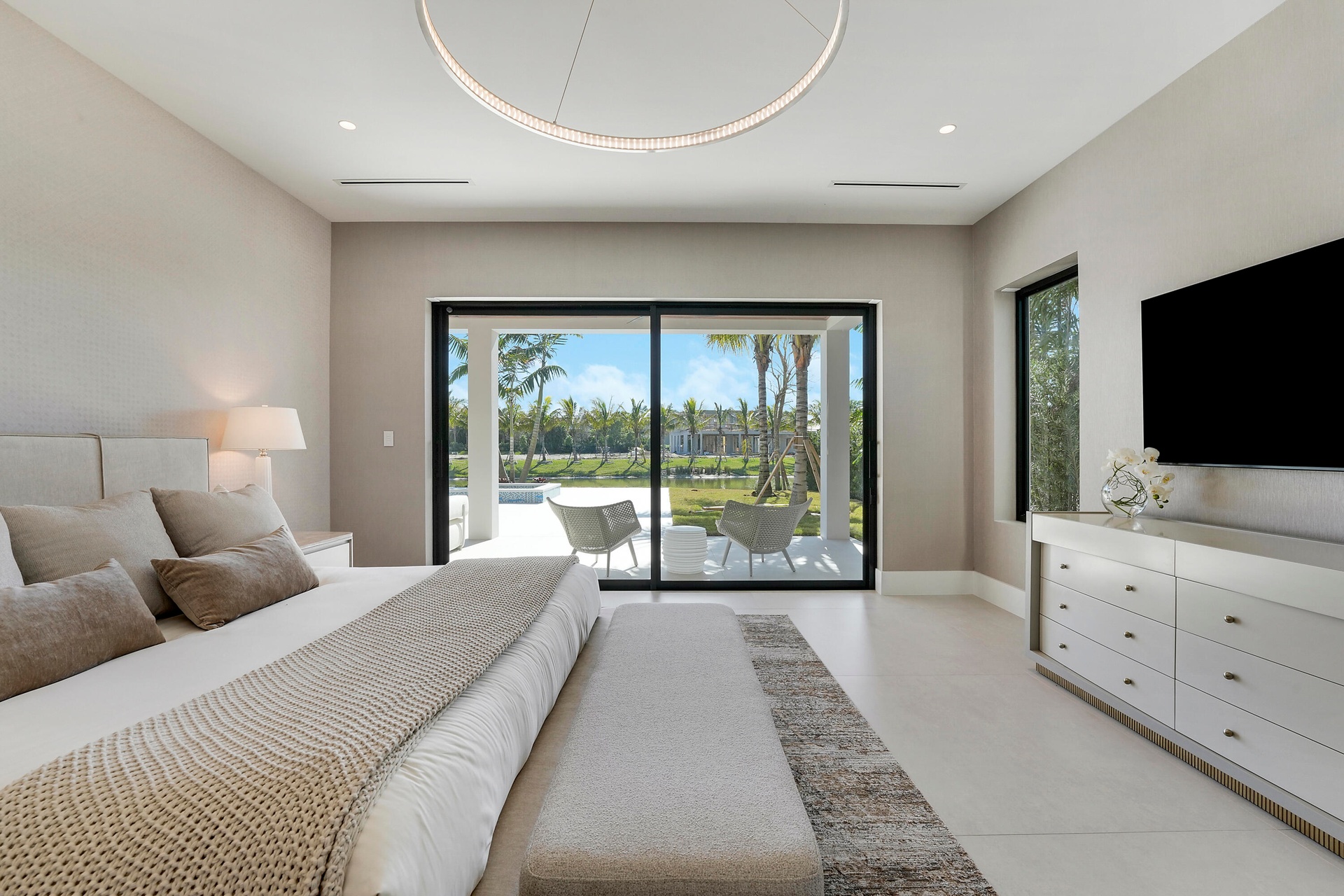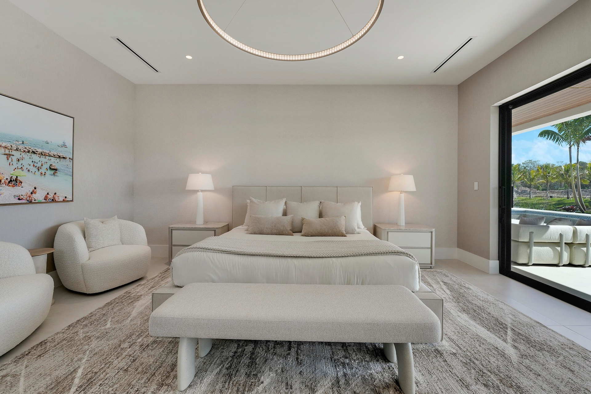 Farrell Estates at Palm Beach Polo presents an exclusive enclave of 27 bespoke residences. Lot 9 is a dramatic modern lakefront estate ideally located just 3 miles from the Winter Equestrian Festival and under 12 miles to Palm Beach International Airport. Spanning 7,492 SF, the home showcases soaring light-filled interiors, expansive porcelain floors, and walls of glass framing tranquil water views. The chef's kitchen and great room flow seamlessly to over 900 SF of covered outdoor living designed for sunset entertaining. The main level offers a private junior suite with sitting area plus a versatile flex space ideal for a gym or office. Upstairs, five ensuite bedrooms accompany a luxurious primary retreat with office or dressing room. Double laundry rooms on both levels provide exceptional functionality. A rare opportunity for modern lakefront living within Palm Beach Polo.