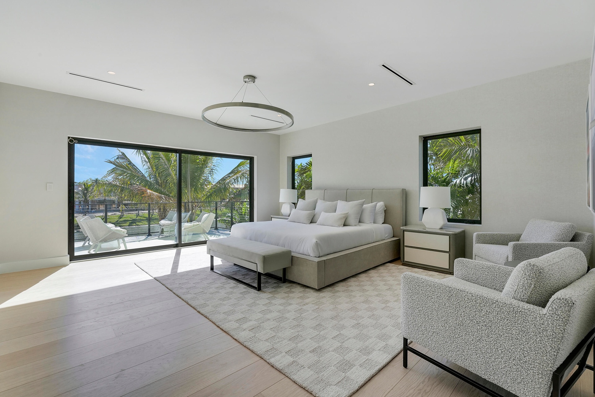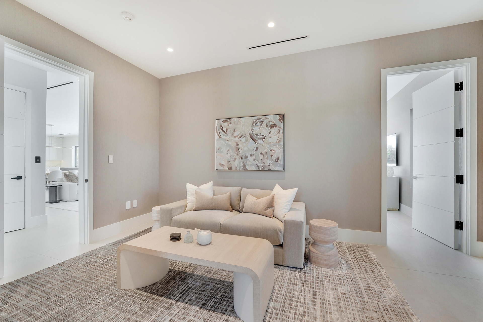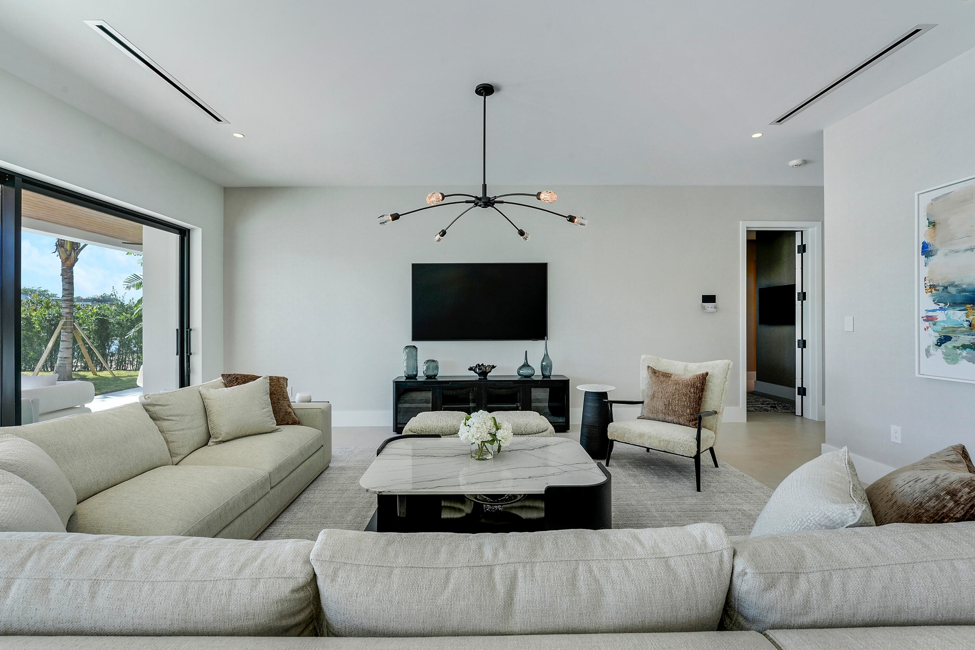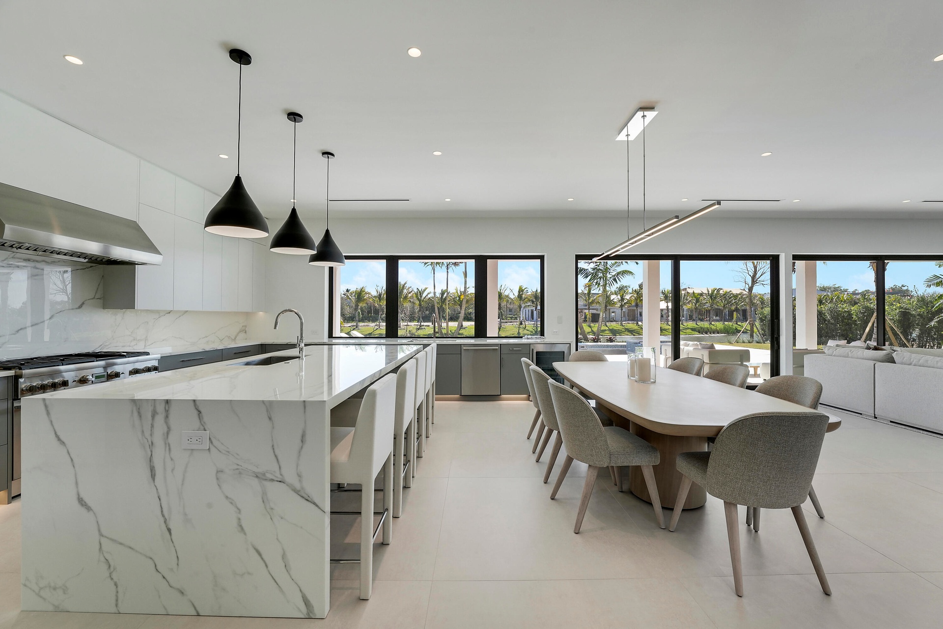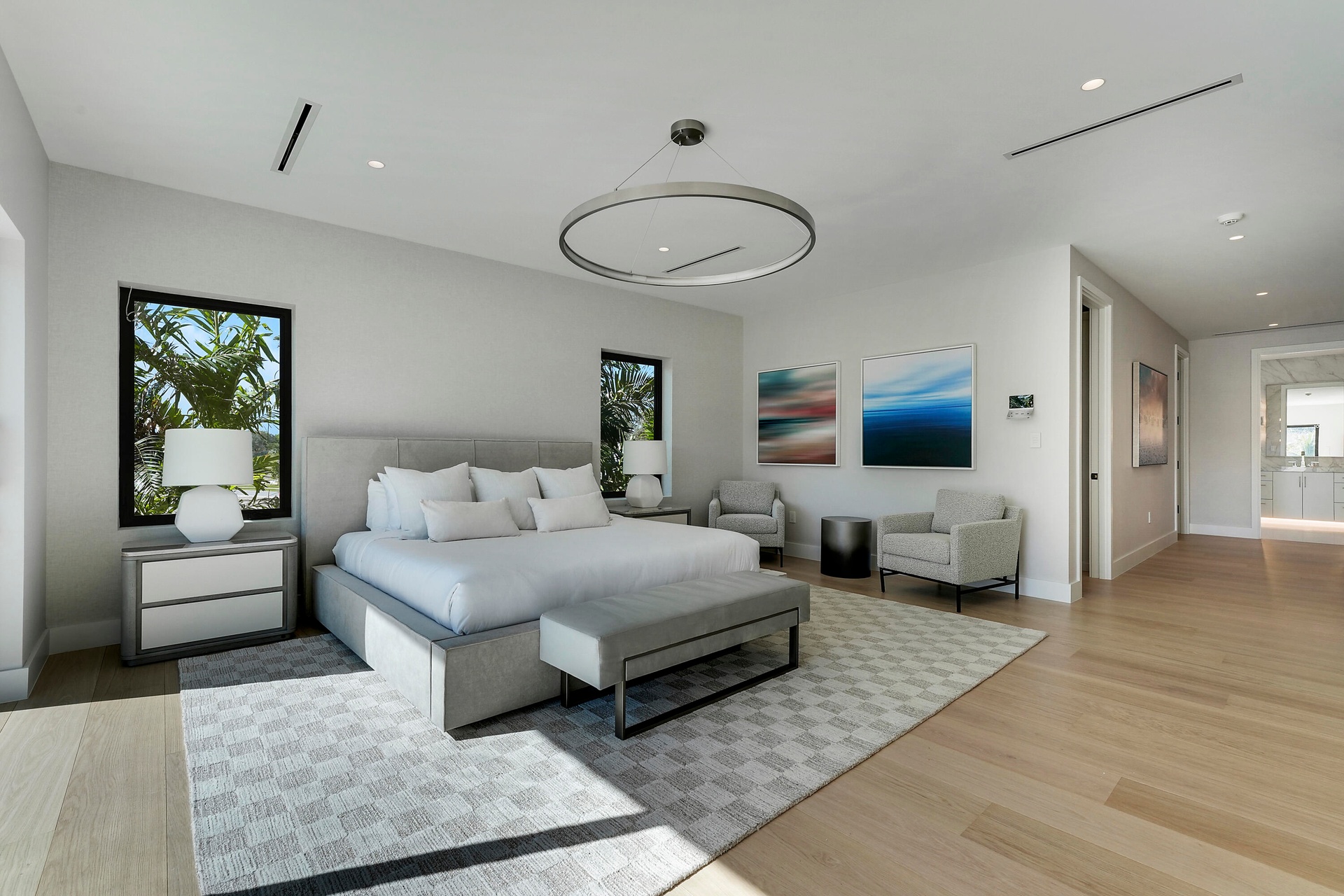 Farrell Estates at Palm Beach Polo presents an exclusive enclave of 27 bespoke residences. Lot 9 is a dramatic modern lakefront estate ideally located just 3 miles from the Winter Equestrian Festival and under 12 miles to Palm Beach International Airport. Spanning 7,492 SF, the home showcases soaring light-filled interiors, expansive porcelain floors, and walls of glass framing tranquil water views. The chef's kitchen and great room flow seamlessly to over 900 SF of covered outdoor living designed for sunset entertaining. The main level offers a private junior suite with sitting area plus a versatile flex space ideal for a gym or office. Upstairs, five ensuite bedrooms accompany a luxurious primary retreat with office or dressing room. Double laundry rooms on both levels provide exceptional functionality. A rare opportunity for modern lakefront living within Palm Beach Polo.